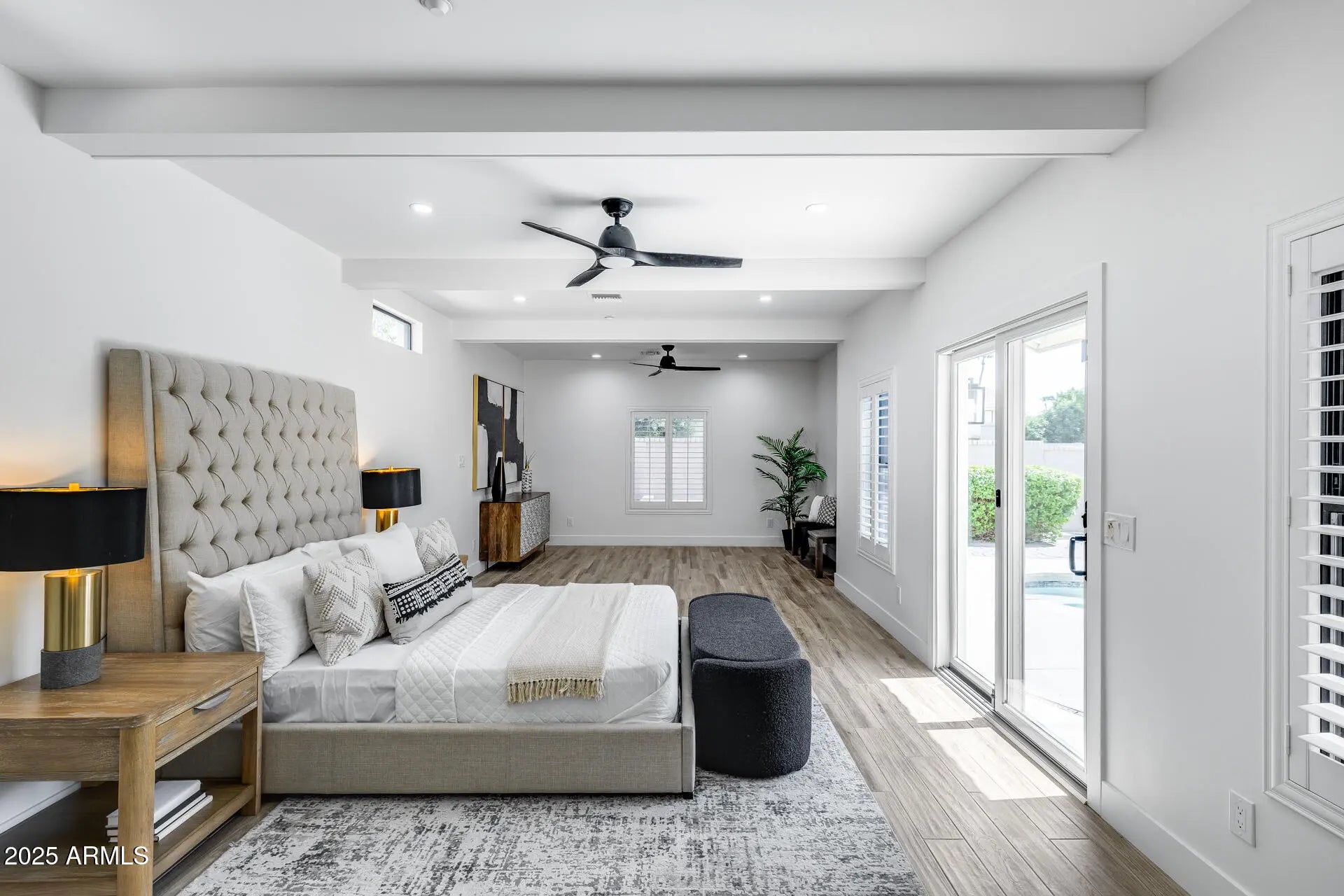 Luxury Living! This beautifully renovated 4-bed home blends style & functionality in Scottsdale's McCormick Ranch! The kitchen boasts white quartz countertops & backsplash, SS appliances & dark cabinetry, all set on premium porcelain tile throughout. A newly added primary suite is expansive & has backyard access, walk-in closet with built-ins & ensuite with double vanity, soaking tub & floor-to-ceiling tiled walls & shower. A second bedroom offers its own ensuite, plus other bedrooms & bathrooms have been freshly updated. Vaulted ceilings & abundant natural light create a bright, airy feel & a large sliding door opens to the backyard pool & patio. With walking & biking paths, playgrounds, tennis courts & golf—everything you need to enjoy the Arizona lifestyle in one home & community!