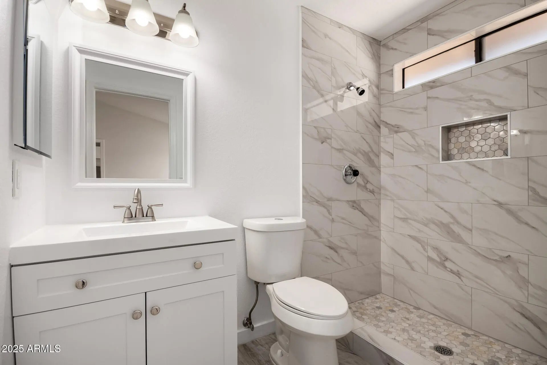 Enjoy easy living in this newly renovated 3-bedroom residence in Peoria! Once inside, you will be welcomed by the perfectly flowing open floor plan, featuring wood-look tile flooring, vaulted ceilings, fresh paint throughout, and a cozy fireplace. Upgraded kitchen boasts track lighting, glossy stainless steel appliances, white cabinets, and sleek quartz counters. Bright main bedroom includes a private bathroom with a floor-to-ceiling tiled shower and a walk-in closet. You will also find sliding door closets in the secondary bedrooms. Spacious backyard promises year-round entertainment, complete with a covered patio, storage shed, and a swimming pool. Excellent location, Mins away from Westgate, Stadiums , restaurants, parks, and shopping centers. What are you waiting for?