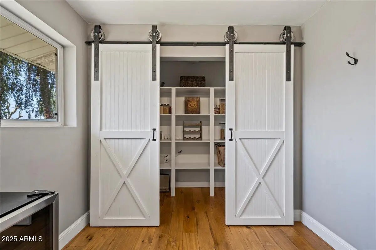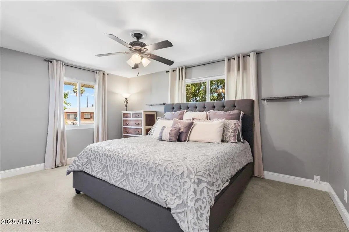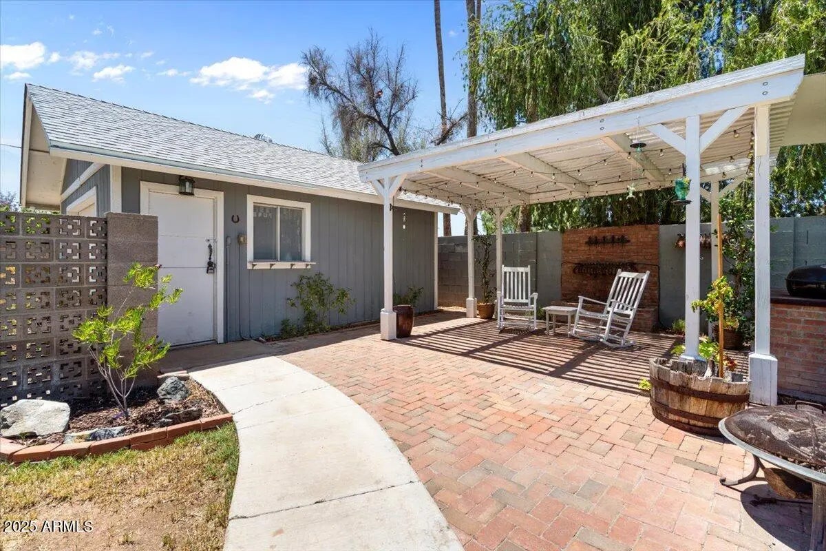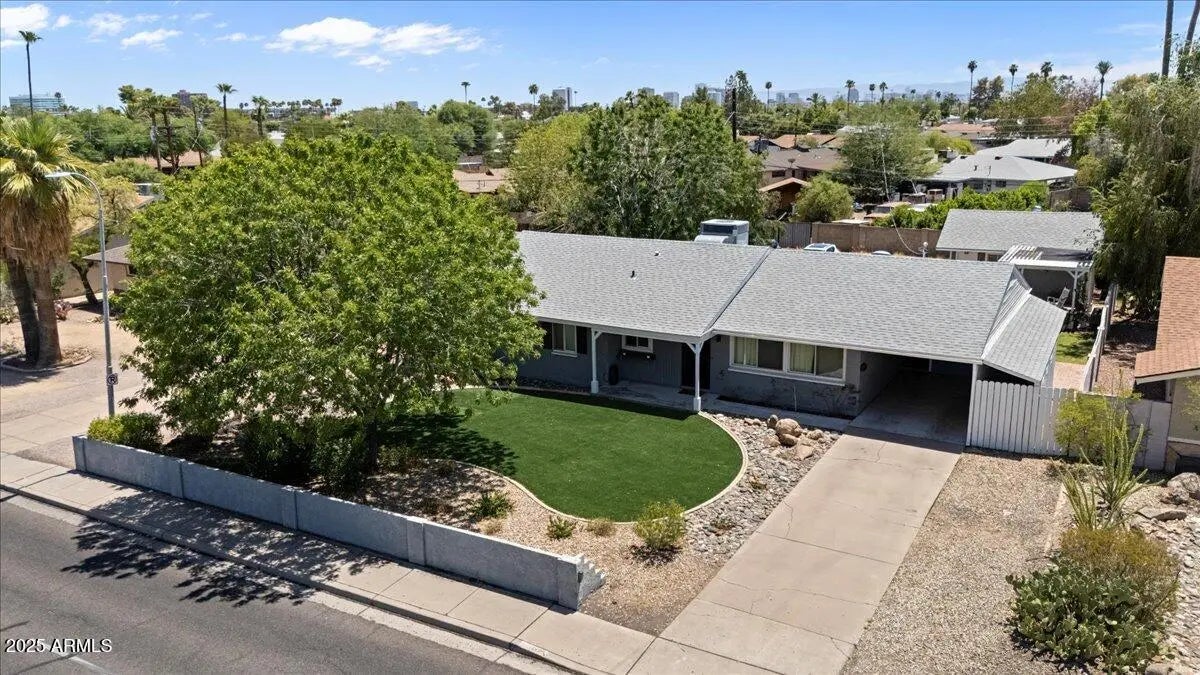 This 3 bedroom 2 bath home does not disappoint! Spacious living areas and updated kitchen with stainless steel appliances and large pantry featuring barn doors. The 3 bedrooms have great storage and the primary bathroom has also been updated with a large tile shower. Out back there is a lanai looking out to the grass yard which is perfect for entertaining! In the back you will also find a patio with pergola and BBQ just off the detached garage! The garage has parking as well as an area for a work bench. The property also has additional parking in the back. Not only is this a cute home the roof was replaced 2023, electrical panel replaced 2018, triple pane windows, R49 insulation added 2023 and so much more! A great Central Phoenix opportunity!