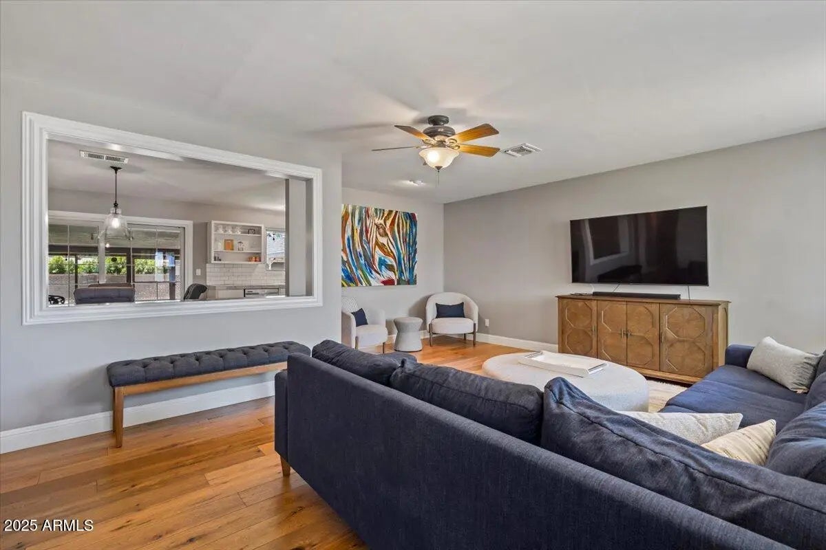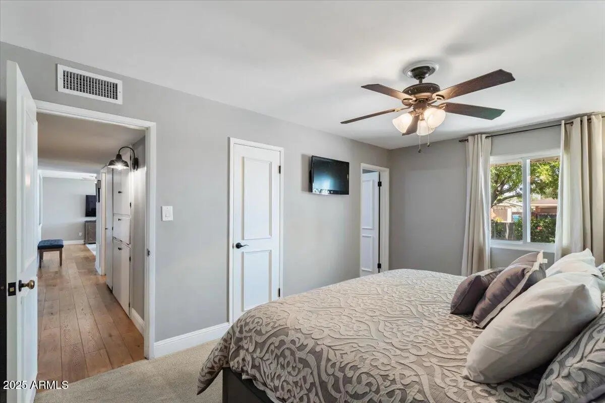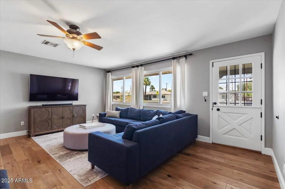 This 3 bedroom 2 bath home does not disappoint! Spacious living areas and updated kitchen with stainless steel appliances and large pantry featuring barn doors. The 3 bedrooms have great storage and the primary bathroom has also been updated with a large tile shower. Out back there is a lanai looking out to the grass yard which is perfect for entertaining! In the back you will also find a patio with pergola and BBQ just off the detached garage! The garage has parking as well as an area for a work bench. The property also has additional parking in the back. Not only is this a cute home the roof was replaced 2023, electrical panel replaced 2018, triple pane windows, R49 insulation added 2023 and so much more! A great Central Phoenix opportunity!