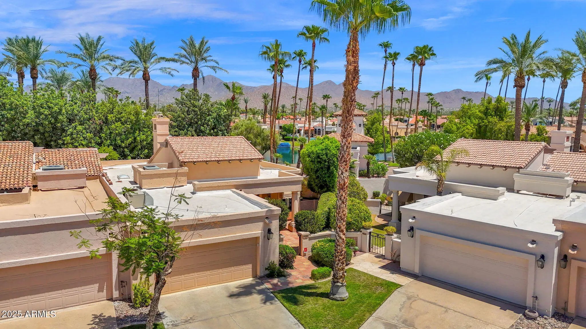 Welcome to Las Brisas, the prestigious, guard-gated lake community in Scottsdale Ranch. This welcoming, spacious single-level townhome blends classic architecture with contemporary features, situated in a quiet interior cul-de-sac. Gated Saltillo tile courtyard entrance & custom iron front door invite you into the expansive, sunlit great room with dramatic high ceilings, stone fireplace and custom built-in cabinetry. The adjacent dining space with mirrored wall is currently used as an office, demonstrating this floor plan's flexibility. The charming kitchen with sunny garden window opens to the patio that embraces the entire house, with multiple sliding doors to celebrate indoor-outdoor living. Mountain views & lush mature landscaping make the low-maintenance outdoor space truly tranquil. The primary suite with its elegant bath & sizable walk-in closet is a relaxing owners' retreat. The generous guest bedroom and full hall bath round out this popular floor plan. Large laundry room with utility sink and air-conditioned 2-car garage both offer abundant storage. Meticulously maintained, this turn key home also features a whole house water filtration system and sophisticated security system. Las Brisas is set on lagoons and Lake Serena frontage, creating an enchanting setting. Scottsdale Ranch amenities for residents are unmatched, with three refreshing pool areas and two tennis courts, all secure with 24-hour guard-gated access. Minutes from the freeways, Scottsdale's best shopping, dining, parks, and endless biking/walking paths, this home truly offers the perfect blend of convenience and luxury. Welcome Home!