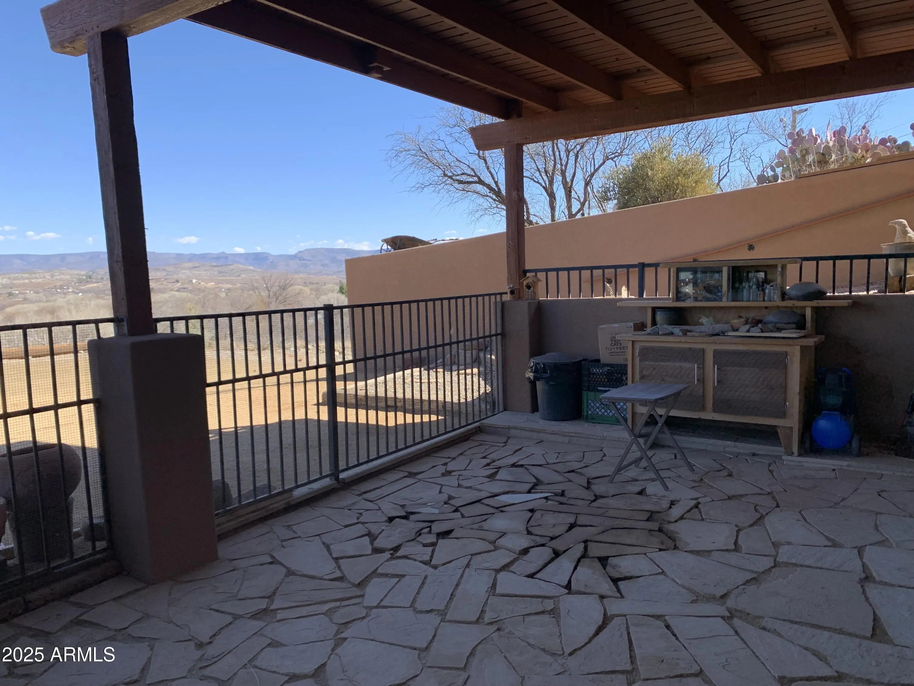 Perched atop a picturesque hill, this 2.66-acre property offers breathtaking views of the Verde River Greenbelt AND direct access to the Prescott National Forest. Designed to embrace the beauty of its surroundings, the home features an expansive deck-perfect for enjoying the serene landscape. The main level boasts two bedrooms and one bathroom, while the lower level presents a versatile space that can serve as an in-law suite, a spacious game room, or a private retreat with its own entrance. Additionally, an office or home gym provides flexibility for work or leisure. Beyond the main residence is a detached studio, ideal for creative pursuits. At the base of the property, there is ample space for gardening, livestock horses, RV Parking, or the addition of a large garage or workshop.