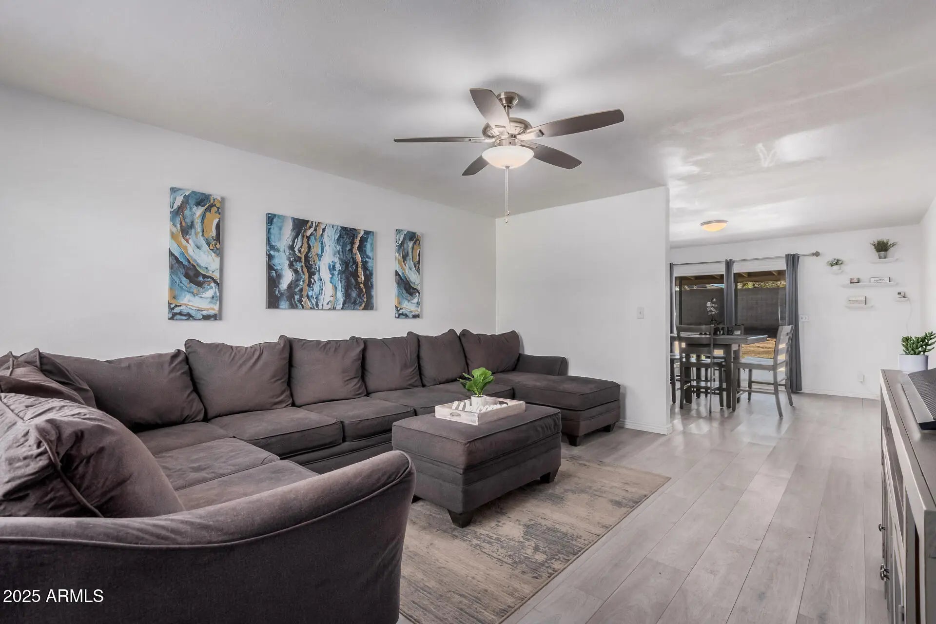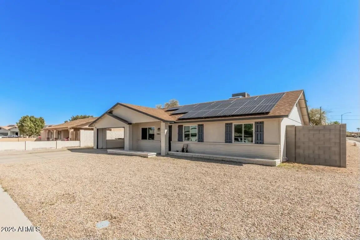 Welcome to this move-in ready gem located in a quiet cul-de-sac on an oversized corner lot. This charming single-level home features 3 spacious bedrooms, 2 modern bathrooms, and a low-maintenance yard with a convenient two-car carport. Inside, you'll find an immaculate interior with wood-look tile flooring throughout the main living areas. A formal living room welcomes you in, while the open-concept family and dining areas are filled with natural light perfect for both relaxing and entertaining. The upgraded kitchen is a chef's dream, boasting newer stainless steel appliances, quartz countertops, and a stylish breakfast bar. The generous primary suite offers a walk-in closet and private en-suite bath. Thoughtful updates throughout the home include new windows, blinds, light fixtures, AC unit, electrical panel, water softener, and reverse osmosis system providing modern comfort and peace of mind. Step outside to a full-length covered patio that's ideal for outdoor gatherings, with plenty of space to design your dream backyard. Don't miss this incredible opportunity to own a beautifully updated home in a prime Peoria location.