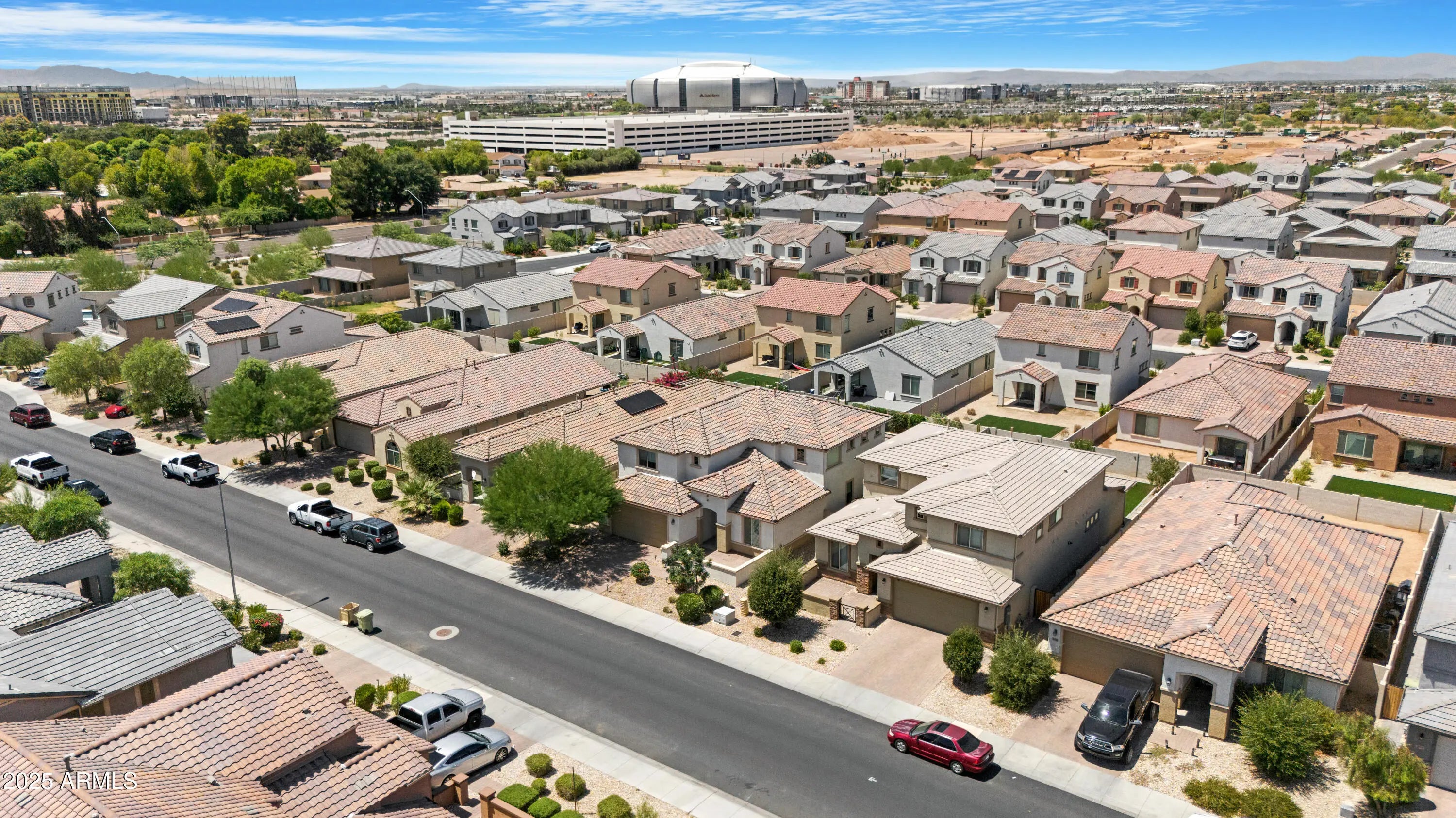 Motivated Seller! Move-in-ready 4-bedroom + den, 2.5-bath home featuring a gourmet kitchen with quartz countertops, stainless steel appliances, gas cooktop, and a large island—perfect for entertaining. The downstairs primary suite offers dual sinks, an oversized shower, and a custom walk-in closet. Upstairs includes a loft and spacious bedrooms. Enjoy a beautifully landscaped backyard with a covered patio. Prime location just minutes from Westgate, State Farm Stadium, shopping, dining, and freeways!