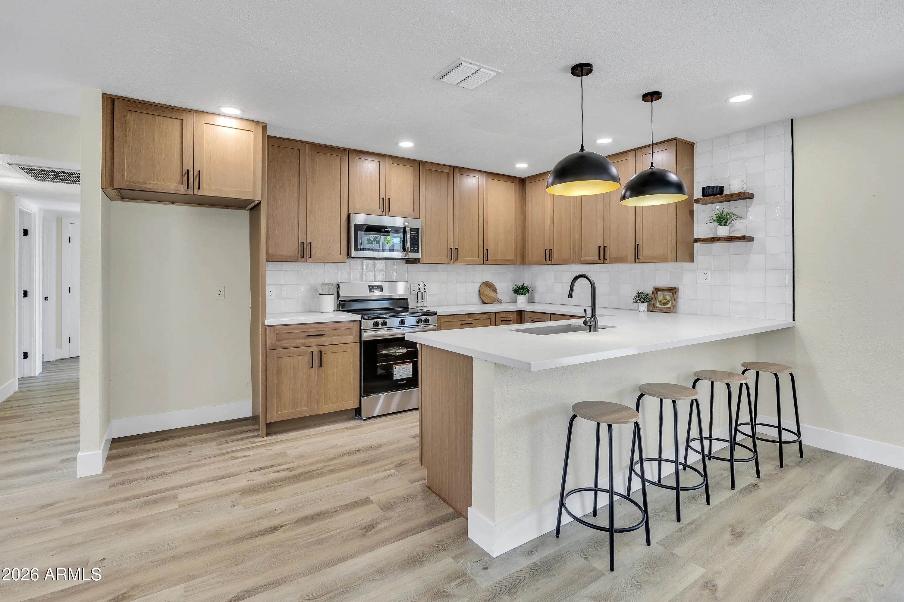 Welcome to RADCLIFFE, a thoughtfully renovated 3 bed 2 bath Brick Charmer located in the heart of Tempe, where lifestyle meets luxury! Step inside to your new home to discover a no expenses spared fully renovated interior with a NEW white oak kitchen cabinets, luxury flooring, quartz countertops, high-end appliances, tiled showers, dual pane windows, and much more! This charmer offers an expansive open floor plan, complemented by a stunning kitchen creating an inviting atmosphere for the entire family to enjoy. Outside, your private oasis awaits with an over sized lot, sparkling pool, covered patio and artificial turf; creating the perfect place to entertain! Outstanding Knoell built home, in a fantastic location coupled with a stunning turnkey remodel, what more can you ask for!