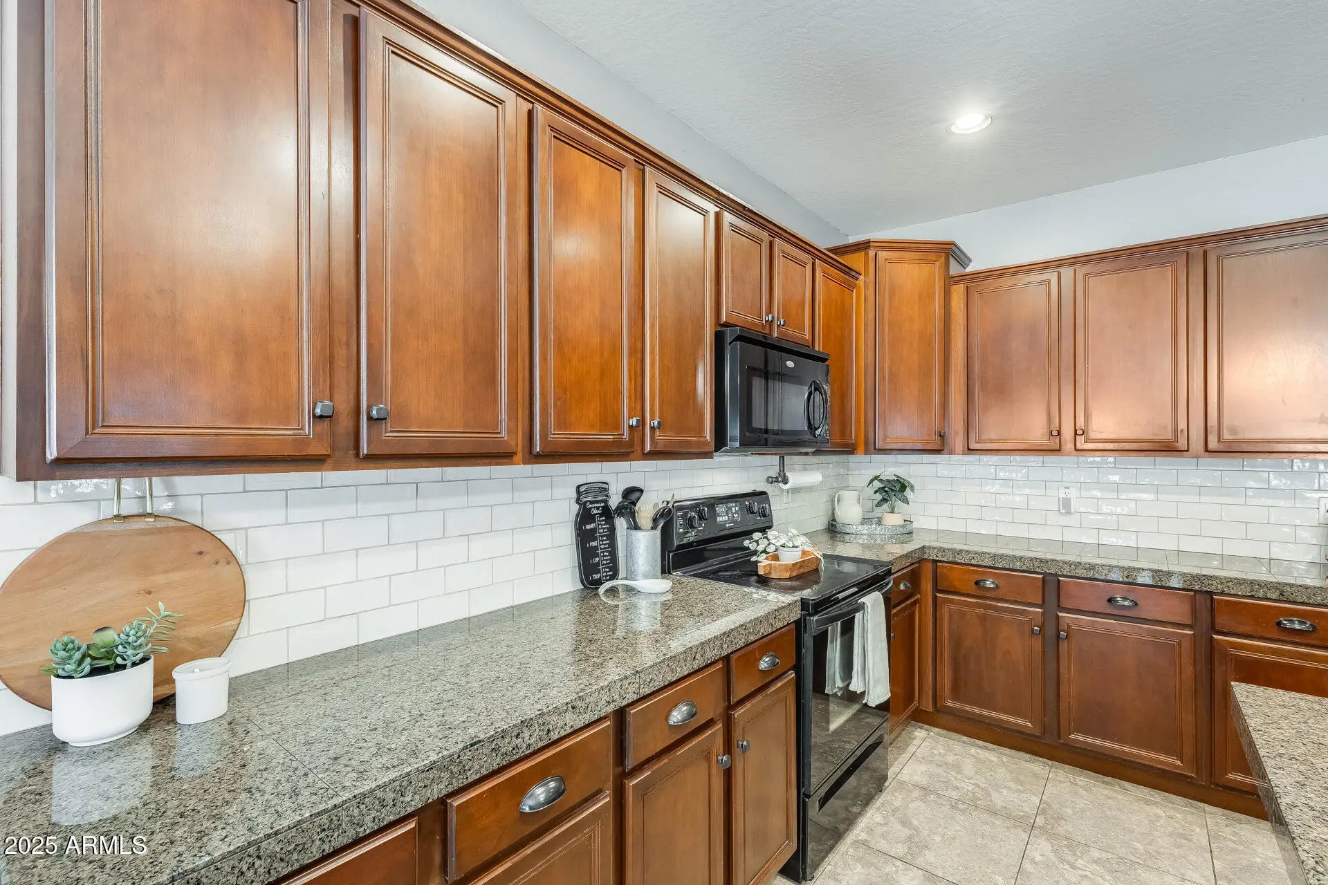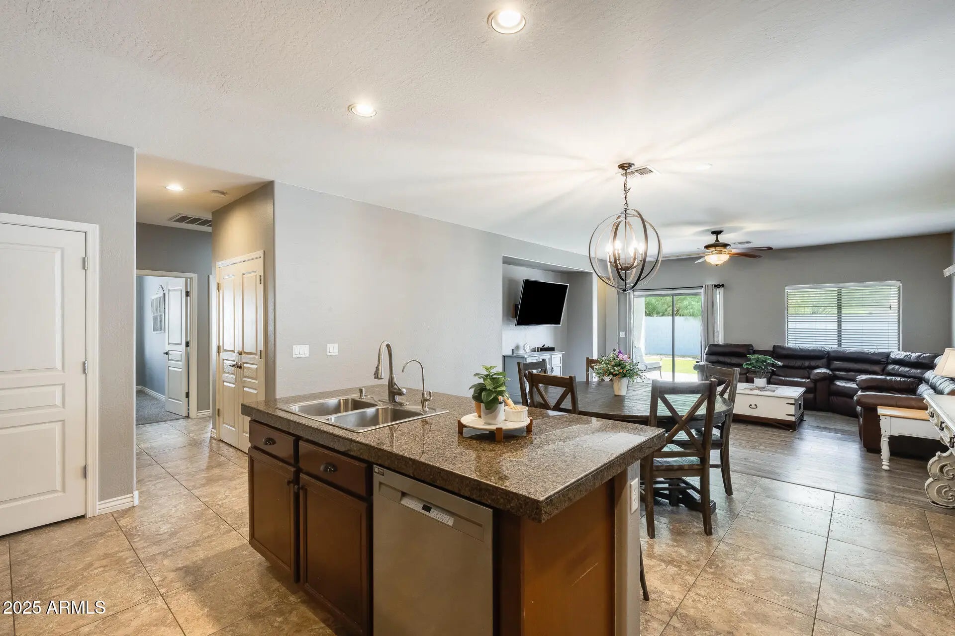 Tucked away on a quiet cul-de-sac lot, this 3-bed, 2-bath home offers 1,876 sqft of spacious living, including a den and family room—perfect for work, play, or relaxation. The upgraded kitchen features rich cherry cabinets, granite countertops, and a center island, ideal for cooking and entertaining. Travertine flooring adds a touch of elegance throughout, while the generous primary suite includes a walk-in closet and a full bath with double sinks. Step outside to a covered patio and enjoy a low-maintenance gravel yard—easy living with room to enjoy the outdoors!