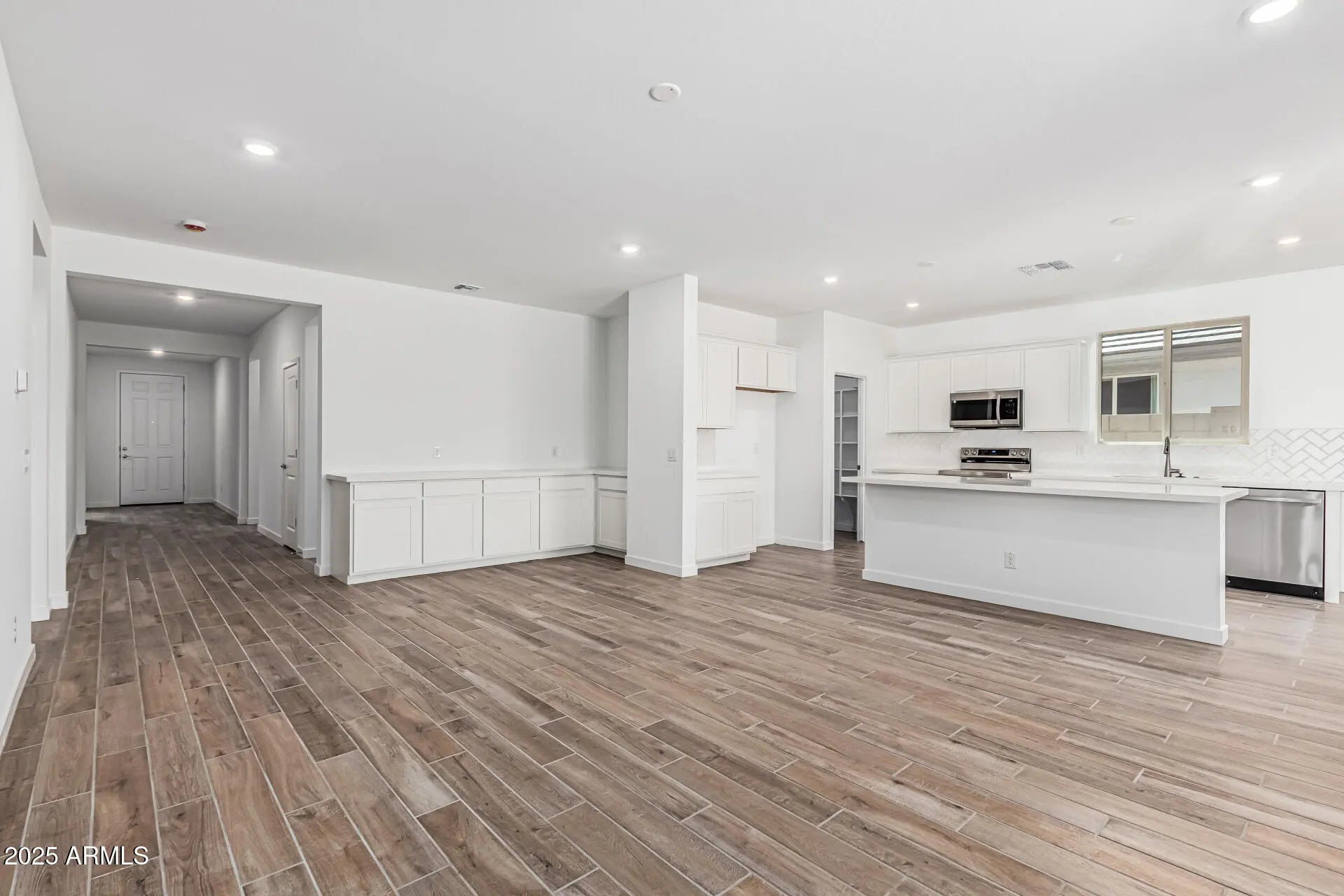 New construction home! This spacious layout features 3 Bedrooms and 2 Bathrooms and a Study providing abundant room for all your needs. The 2-car garage is equipped with an 8ft door for added convenience. Inside, enjoy an open floor plan designed for modern living. The kitchen is a true highlight, boasting a beautiful quartz island, and a walk-in pantry. Light smoke plank tile flooring flows throughout the home, with soft carpets only in the bedrooms. The Primary Bedroom has a tub and walk-in shower. Located in North Copper Canyon, this home offers access to exceptional community amenities, including a gated pool, covered playground, pickleball court, and more. Welcome Home!!