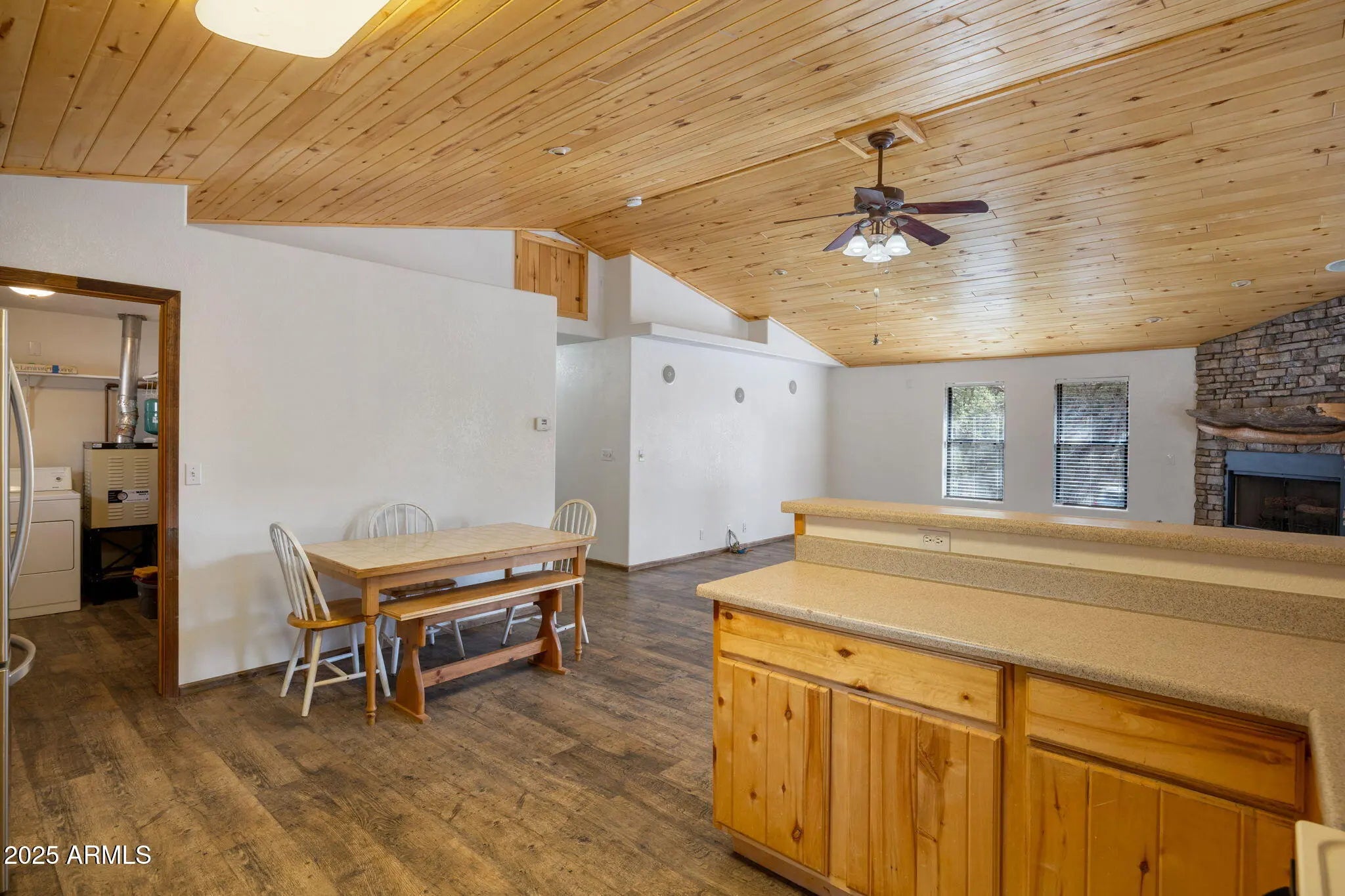 Escape the heat at this charming Mountain Retreat, nestled among tall pines! This 2-bedroom, 2-bathroom home is situated on a peaceful .18 acre lot with a beautifully treed yard. Cozy up by the wood-burning fireplace in the living area, making winter nights truly special. Located just off a paved street, this home offers privacy and convenience, with a partially fenced yard perfect for pets or outdoor activities. With no HOA and a short distance from a paved road, this centrally located gem is near local services. Don't wait this property won't last long!