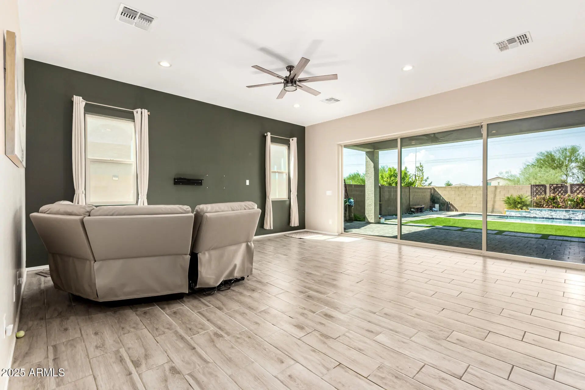 Welcome to this 2,827 sq ft residence, offering the perfect blend of comfort, style, and functionality. This spacious home features 4 bedrooms and 3.5 bathrooms, including a private mother-in-law suite and a Jack-and-Jill bathroom, 10-foot ceiling, contemporary finiishs, two large multi-slide doors connect the indoor and outdoor living spaces, it includes upgraded features throughout. The backyard is a true retreat, showcasing a sparkling pool, pavered patio, and low-maintenance artificial grass perfect for entertaining or relaxing in style.