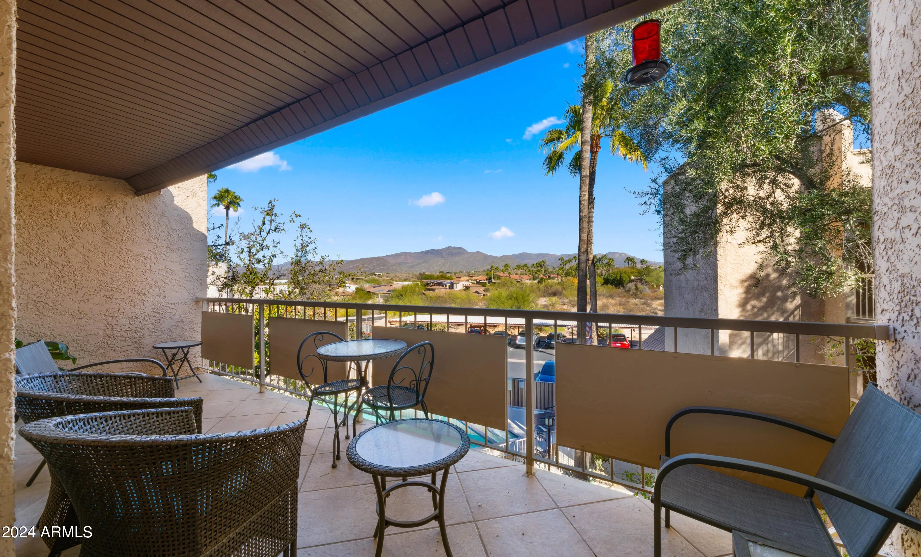 BEST DEAL IN CAREFREE!!! Sunny top floor 2 bed, 2 bath condo with epic views of the Continental Mountains! This recently remodeled unit features tiled floors throughout the entire condo, kitchen with granite counters and stainless steel appliances and washer & dryer. Enjoy your sunrise and sunsets from your terrace. Located across from Carefree Center with all your shopping, restaurants and neighborhood amenities. This HOA features a beautiful community pool, hot tub, ELEVATOR and 2 deeded parking spots. Monthly HOA Fee includes exterior maintenance, roof repair, blanket insurance, pest control, garbage pickup, water, heating & cooling. No dogs allowed but cats okay. 6 month minimum for rentals. Come see why Carefree is a lifestyle!