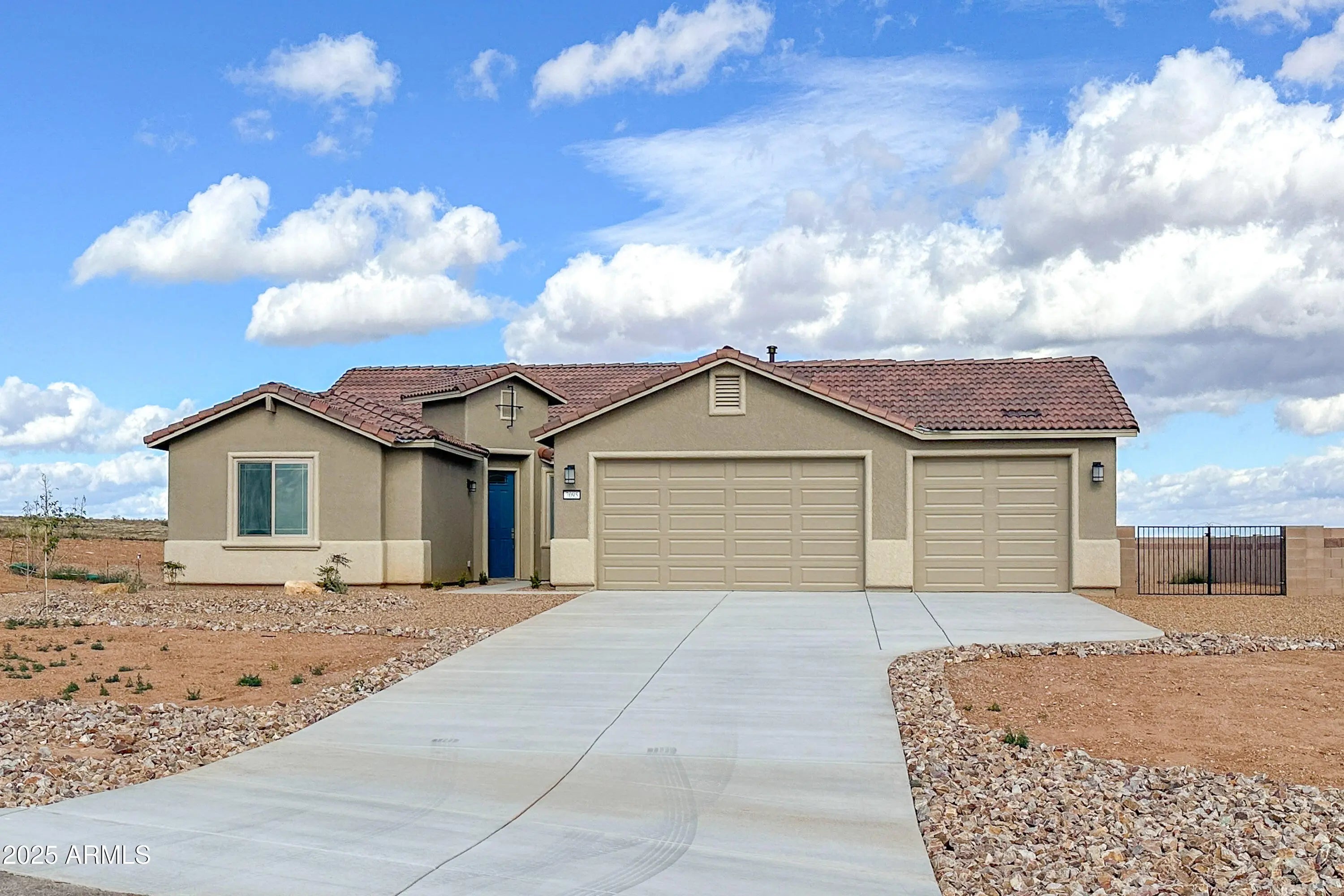 New Construction Home in King's Ranch! This stunning 4-bed, 2-bath home offers 2,116 sq. ft. of modern living on a 2.48 acre lot. The 3-car garage provides ample storage, while inside, you'll find 6x24 wood look tile floors, two-tone cabinets, light quartz countertops, subway style backsplash and stainless steel appliances. The primary suite features a bay window with valley views, a custom walk-in shower with niche, and a spacious walk-in closet. Front landscaping with irrigation timer, block rear yard enclosure and 10' gate for easy access also adding to the curb appeal. Energy Saving Environments for Living Certified, this home offers comfort, efficiency, and peace of mind with all the new construction warranties.