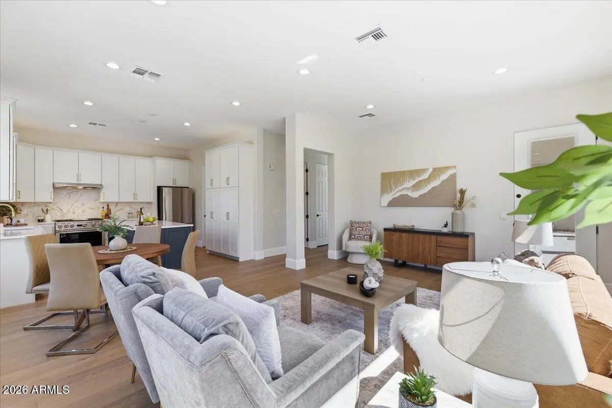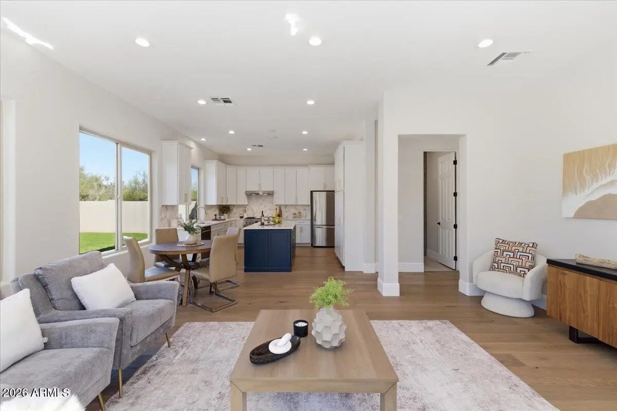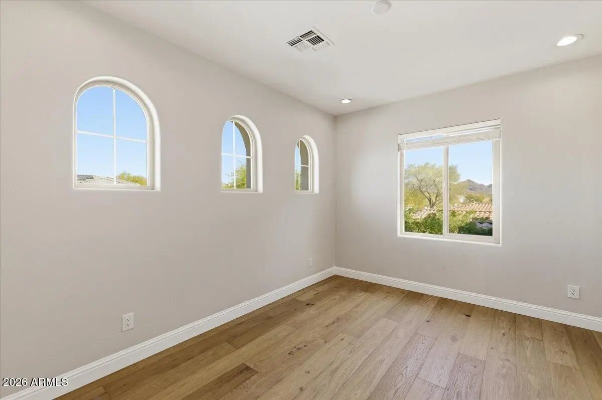 Welcome to Sonoran Hills in North Scottsdale! Nestled in one of the area's most desirable neighborhoods, this beautifully updated residence offers 5 bedrooms and 3.5 baths on a generous, private lot at the end of a quiet cul-de-sac, backing to serene NAOS land for exceptional privacy. Step inside to a bright, inviting interior with a spacious layout designed for both everyday living and effortless entertaining. The main level features a private en suite bedroom—ideal for guests or multigenerational living—along with a warm family room opening to the stunning new kitchen. An abundance of storage defines the kitchen, highlighted by 48''-tall upper Thomasville cabinetry and a dramatic 80'' wall of floor-to-ceiling cabinets. Bright white Forte quartz countertops bring warmth through... subtle gray and gold veining inspired by classic Carrara marble, offering a timeless and versatile design with natural movement and character. Dramatic lighting makes a statement with the Arhaus Lily Brass 19-light chandelier, while 7.5" European oak plank flooring from the Reward Island Collection in the Trinidad species adds rich texture and warmth throughout. Monogram appliances elevate both performance and style, featuring solid brass burners crafted from 100% brass to maximize natural thermal properties. Over time, a natural patina develops, enhancing durability even at the highest temperatures. Built-in WiFi monitoring and remote control via the SmartHQ" app allow for effortless cooking, including remote preheating, timers, and Chef Connect functionality. Outdoors, enjoy a resort-style backyard with new grass turf, a built-in BBQ, a sparkling pool, and an expansive patio perfect for entertaining under the Arizona sky. Additional highlights include a 3-car garage, RV gate, and fresh interior and exterior paint. The annual HVAC service program just been paid for and transferred to the new owner. Conveniently located near Sprouts, Safeway, and Fry's, with numerous nearby restaurants and popular breakfast spots, daily errands and dining are effortless. A nearby hospital provides peace of mind, while the Scottsdale Pickleball Park and a new dog park under construction enhance the area's active outdoor lifestyle. Every offer has the power to win, but only if you submit it first. Make yours today before yesterday's buyers turn into today's contract.