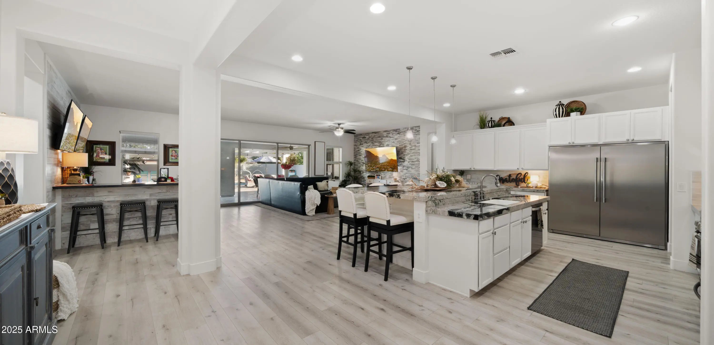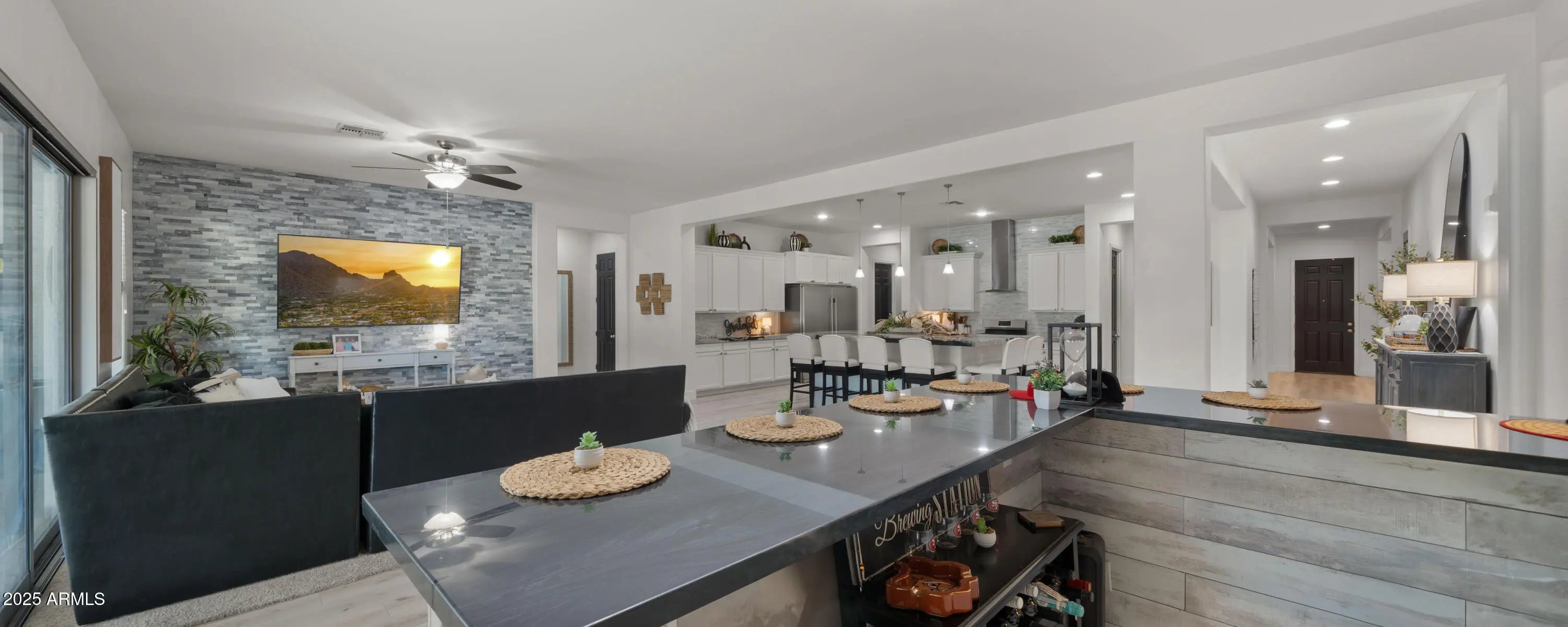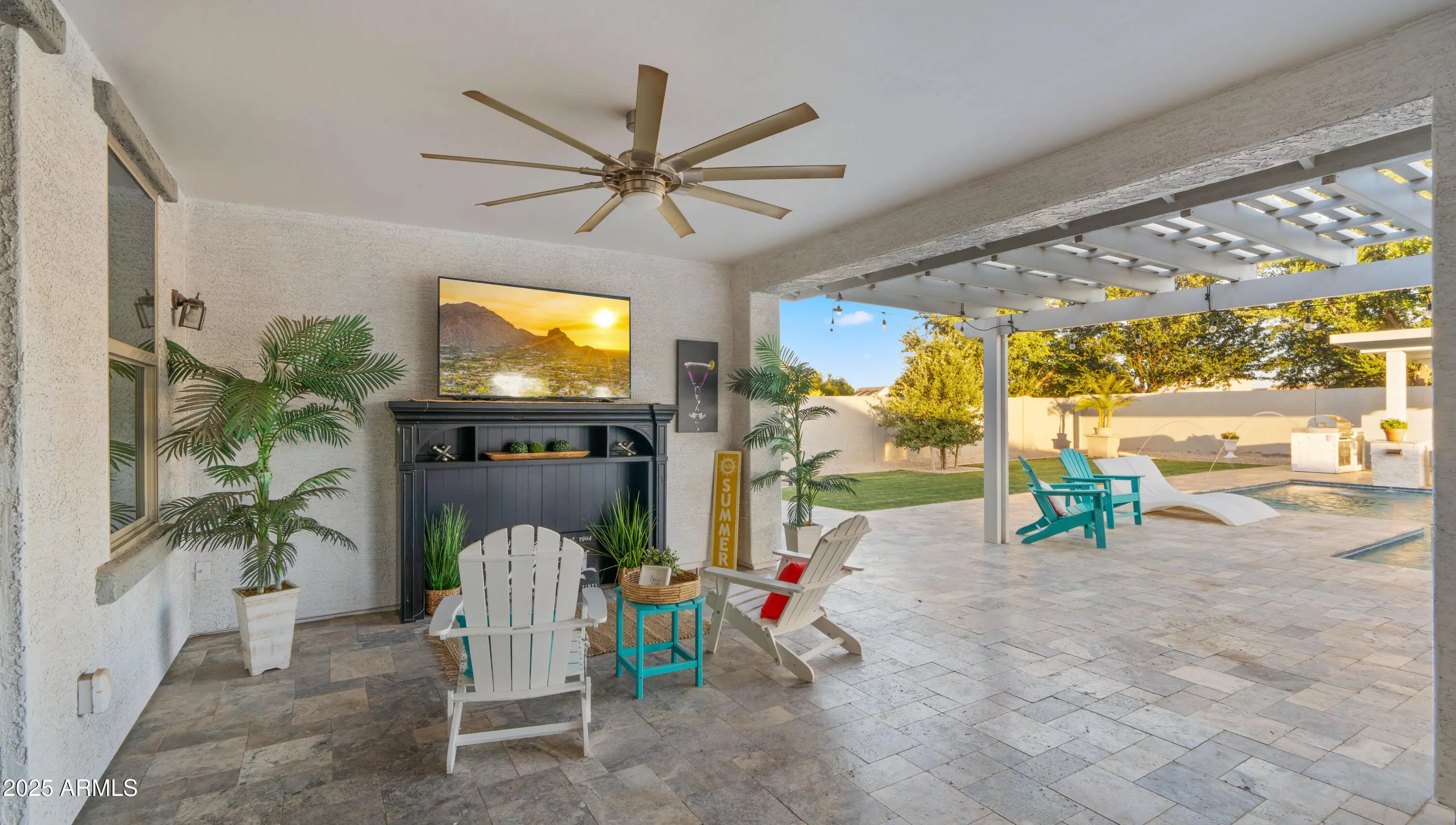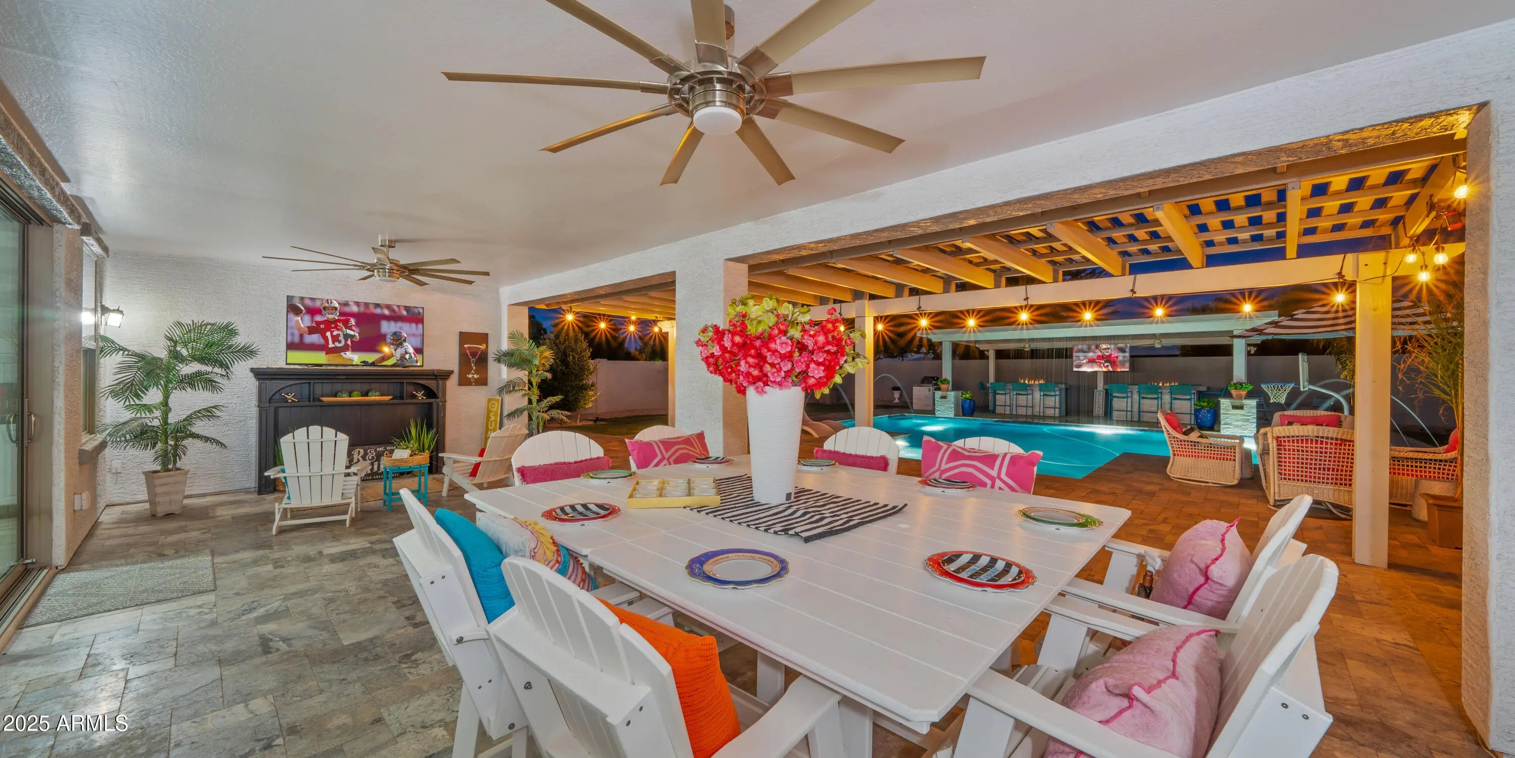 It's HERE!!! Come home to your very own luxury estate in the highly sought after community of Hastings Farm, walking distance to thousands of sf of new retail, restaurants and entertainment! Available fully furnished, this single-level residence offers 3,626 sq ft of thoughtfully designed, open-concept interior living on a spacious 14,352 sq ft lot. Step outside to your brand new $300,000 backyard escape with a stunning new resort-style pool, multiple water features, an enormous poolside outdoor living room with BBQ, TV, and 2 enormous fire tables. An oversized covered patio space with dining, multiple TVs and extended roofline reaching the sparkling blue pool waters. This backyard belongs on the cover of a luxury magazine! Inside, you'll find a bright, modern layout featuring newly installed, modern flooring, granite countertops, a chef's kitchen with oversized island, walk-in pantry, built-in sports bar, and premium stainless-steel appliances perfect for hosting or enjoying everyday comforts. With 4 large bedrooms + a versatile flex room, 3 full bathrooms, and a 3-car garage, this home has room to live, work, and entertain in style. Tucked away in a quiet cul-de-sac with breathtaking mountain views, a fully fenced yard, and just minutes from top-rated schools, brand-new shopping, dining, and entertainment. Offered fully furnished, this turn-key home blends high-end finishes, recent interior and exterior upgrades, and unbeatable value. All that's missing is YOU!