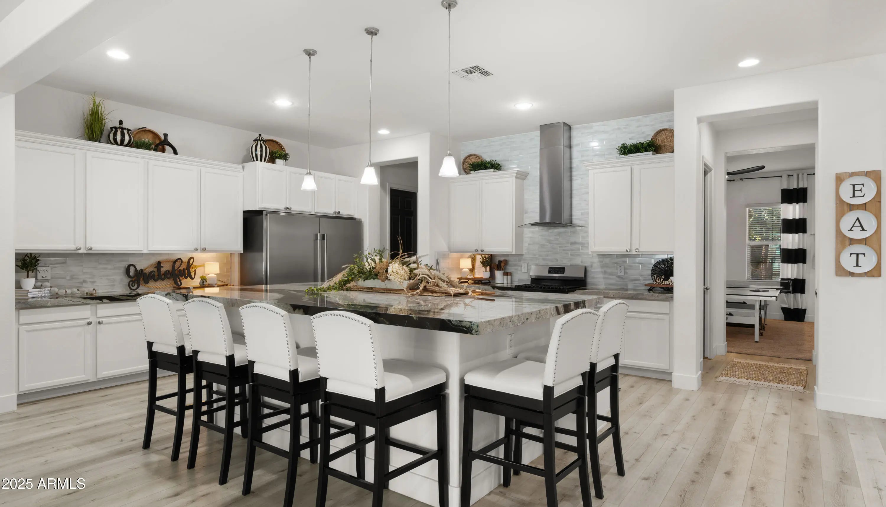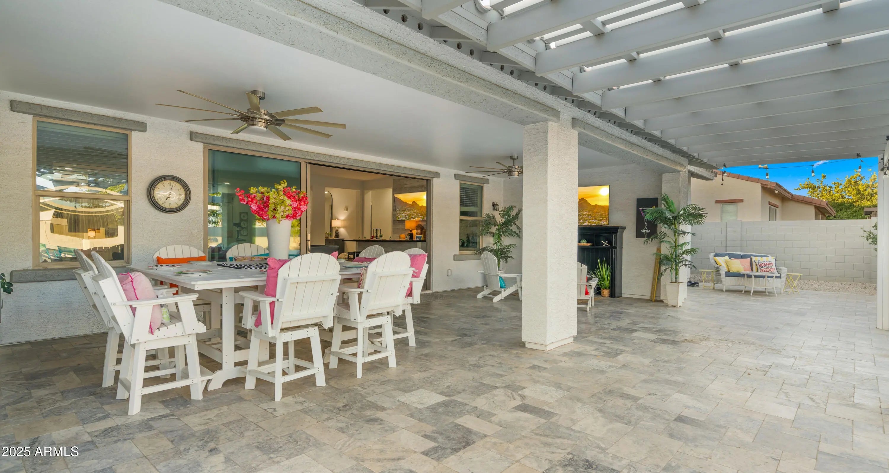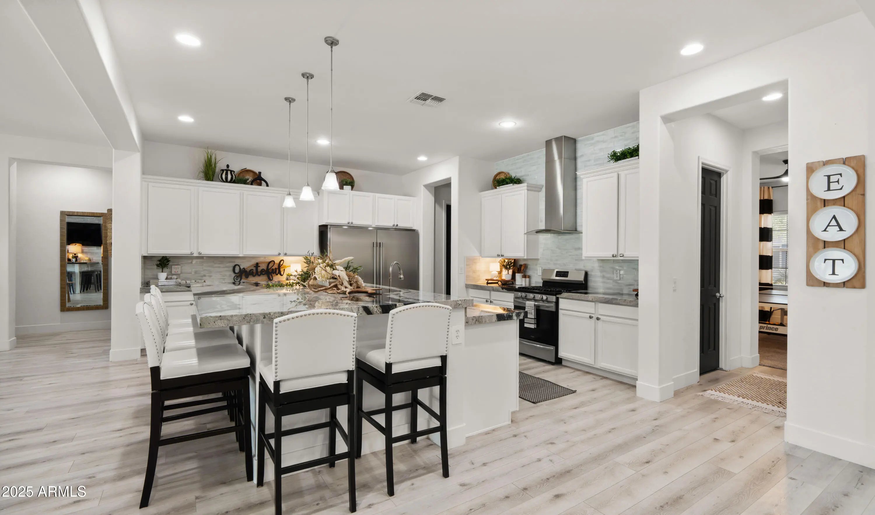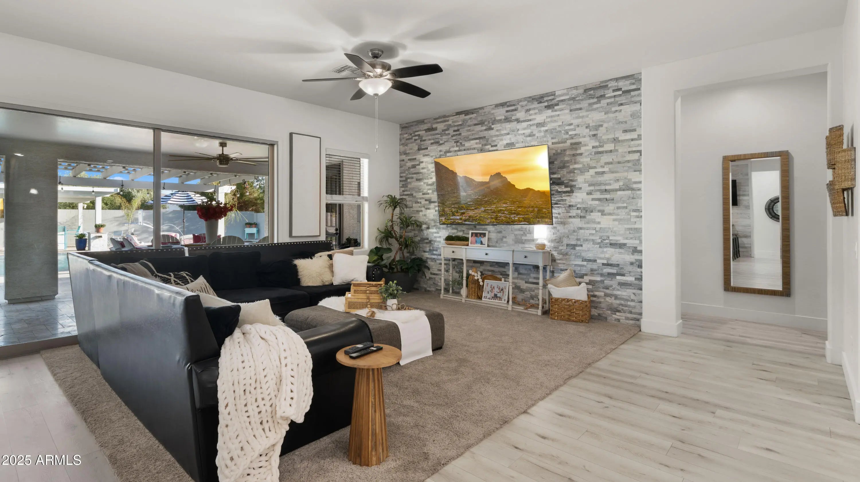 It's HERE!!! Come home to your very own luxury estate in the highly sought after community of Hastings Farm, walking distance to thousands of sf of new retail, restaurants and entertainment! Available fully furnished, this single-level residence offers 3,626 sq ft of thoughtfully designed, open-concept interior living on a spacious 14,352 sq ft lot. Step outside to your brand new $300,000 backyard escape with a stunning new resort-style pool, multiple water features, an enormous poolside outdoor living room with BBQ, TV, and 2 enormous fire tables. An oversized covered patio space with dining, multiple TVs and extended roofline reaching the sparkling blue pool waters. This backyard belongs on the cover of a luxury magazine! Inside, you'll find a bright, modern layout featuring newly installed, modern flooring, granite countertops, a chef's kitchen with oversized island, walk-in pantry, built-in sports bar, and premium stainless-steel appliances perfect for hosting or enjoying everyday comforts. With 4 large bedrooms + a versatile flex room, 3 full bathrooms, and a 3-car garage, this home has room to live, work, and entertain in style. Tucked away in a quiet cul-de-sac with breathtaking mountain views, a fully fenced yard, and just minutes from top-rated schools, brand-new shopping, dining, and entertainment. Offered fully furnished, this turn-key home blends high-end finishes, recent interior and exterior upgrades, and unbeatable value. All that's missing is YOU!