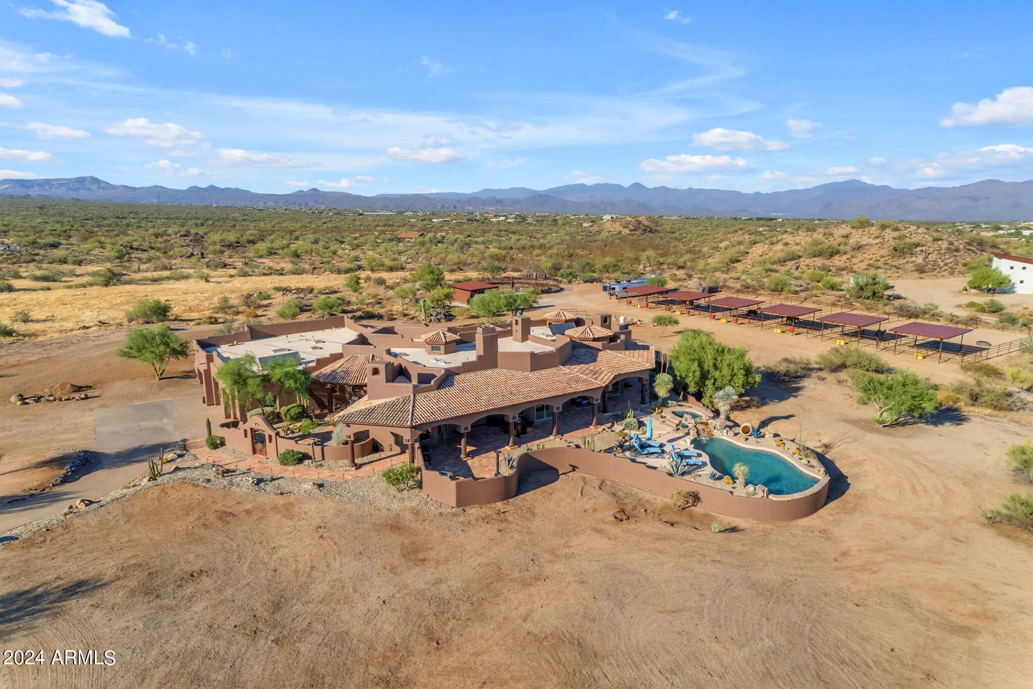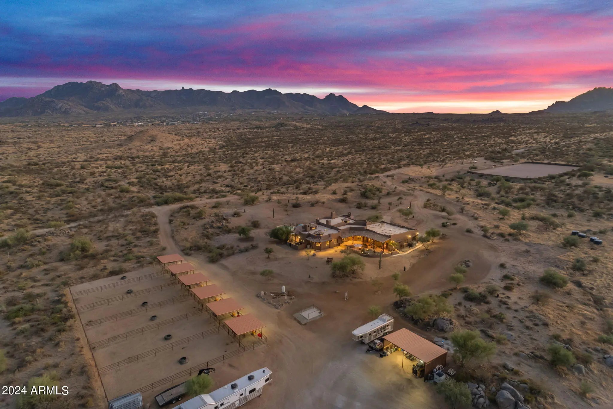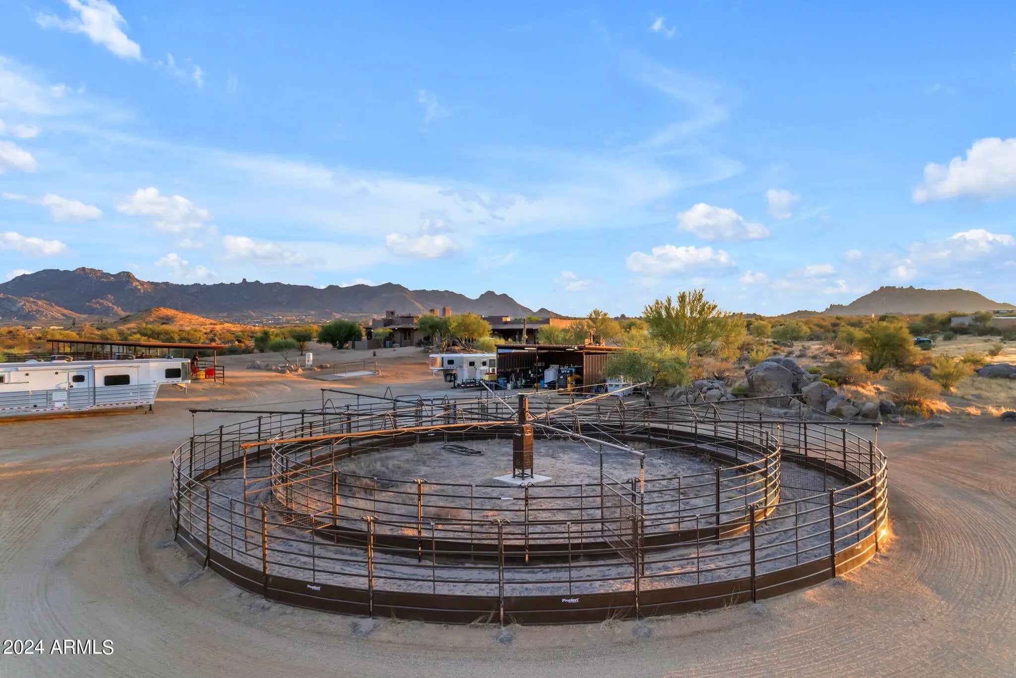 LUXURY PROPERTY AUCTION: Opens April 16th and closes April 18th, 1 PM local time. 4% Early Bid Credit Deadline: April 15th. Privacy, scale, views, and location--this is Scottsdale desert living at its finest. Take advantage of the rare opportunity to own one of the last large parcels in the City of Scottsdale--just over 18 pristine acres directly bordering the McDowell Mountain Preserve. Set at the end of a paved cul-de-sac, this exceptional property delivers unmatched privacy, serenity, and truly breathtaking desert views in every direction. The land itself is a showpiece, adorned with the dramatic granite boulder formations that define the McDowell Mountain region and the Sonoran Desert's iconic landscape. Outdoor enthusiasts will appreciate immediate access to miles of non-motorized trails for hiking, biking, and horseback riding - right from your doorstep. At the center of the property sits a thoughtfully designed 4,700 sq ft custom home that blends seamlessly with its natural surroundings. Recently updated with a new roof, the residence features expansive windows and doors in nearly every room, framing sweeping 360° views of Four Peaks, Granite Mountain, the McDowell Mountains, and the surrounding desert. The primary suite offers its own fireplace and private exit to the pool and spa, perfectly positioned to capture views of Tom's Thumb. A guest suite and attached casita open to the north patio with stunning Granite Mountain vistas. The spacious great room, chef's kitchen, and custom wet bar create an ideal setting for entertaining or quiet desert evenings by the fire. The large attached casita is fully equipped with private access--perfect for extended family or guests seeking both connection and privacy. Equestrian amenities are equally impressive. The property features a 12-stall mare motel with 60' runs, lighting, and automatic waterers, situated beside an 8-horse Priefert walker. The expansive 150' x 300' arena offers new footing and ample trailer parking for riding, roping, or hosting friends. A brand-new high-producing well adds significant value and reliability. Surrounded by prestigious luxury homes and ranch estates, this peaceful desert retreat is just minutes from world-class golf at Troon North, Desert Mountain, and Estancia, as well as Scottsdale's renowned dining, shopping, and cultural attractions.