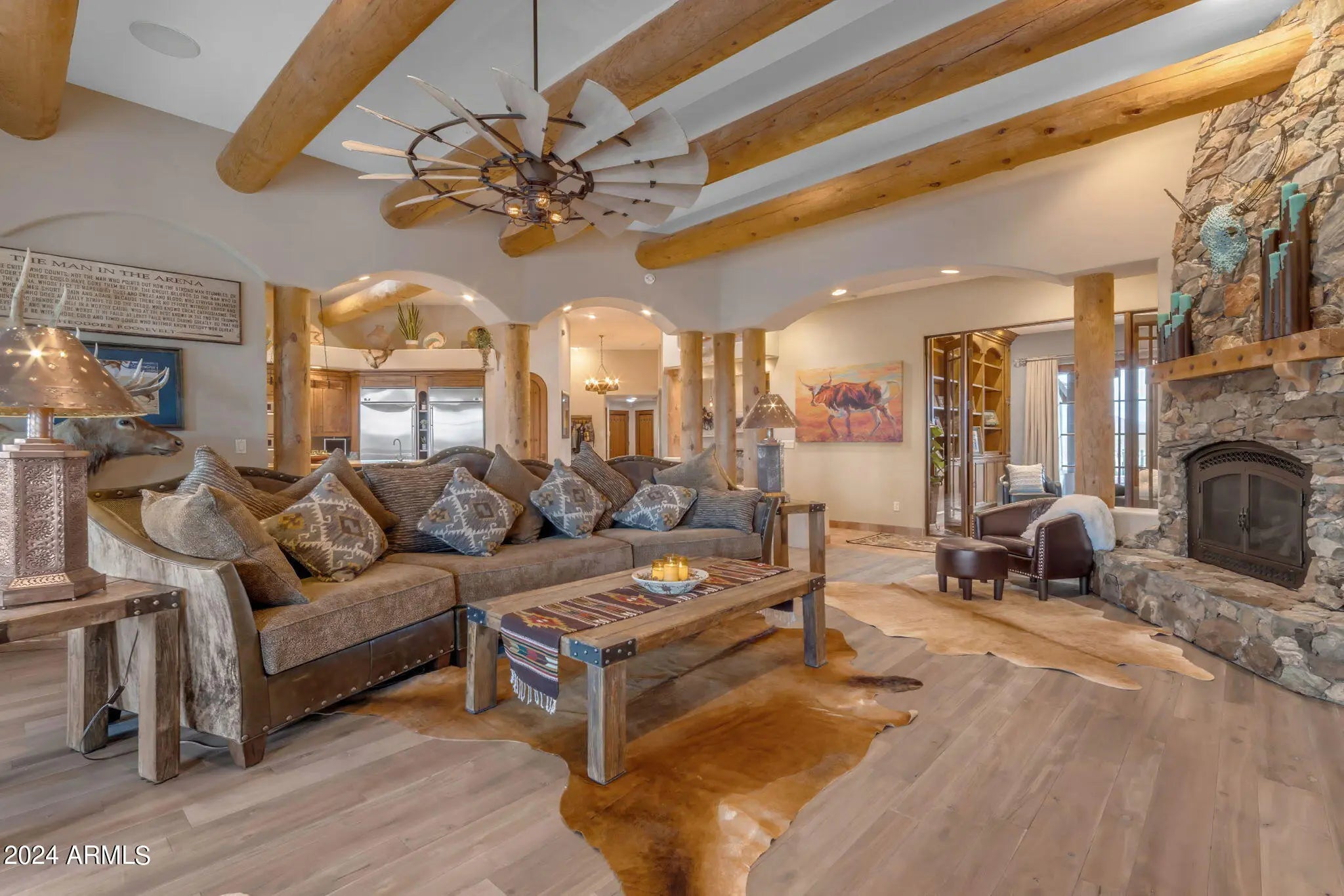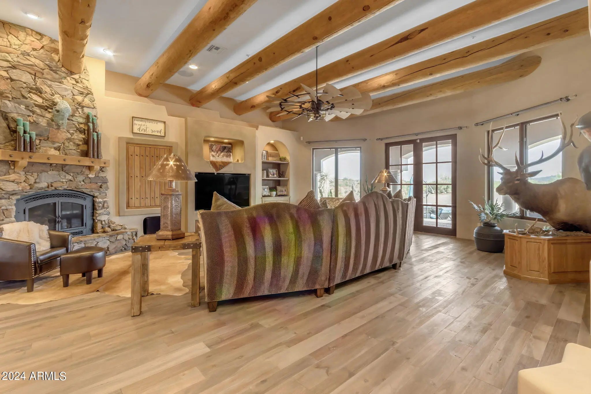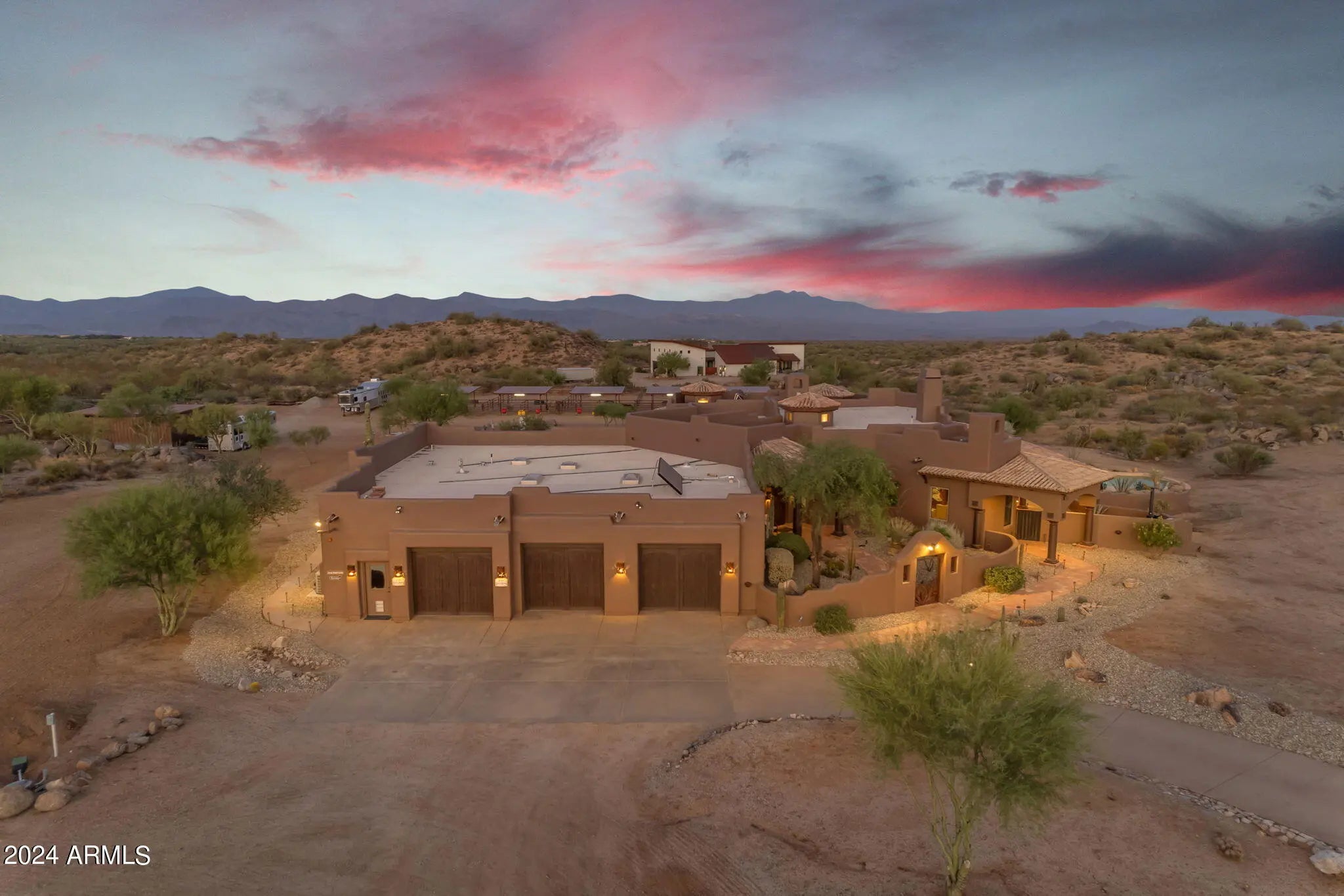 LUXURY PROPERTY AUCTION: Opens April 16th and closes April 18th, 1 PM local time. 4% Early Bid Credit Deadline: April 15th. Privacy, scale, views, and location--this is Scottsdale desert living at its finest. Take advantage of the rare opportunity to own one of the last large parcels in the City of Scottsdale--just over 18 pristine acres directly bordering the McDowell Mountain Preserve. Set at the end of a paved cul-de-sac, this exceptional property delivers unmatched privacy, serenity, and truly breathtaking desert views in every direction. The land itself is a showpiece, adorned with the dramatic granite boulder formations that define the McDowell Mountain region and the Sonoran Desert's iconic landscape. Outdoor enthusiasts will appreciate immediate access to miles of non-motorized trails for hiking, biking, and horseback riding - right from your doorstep. At the center of the property sits a thoughtfully designed 4,700 sq ft custom home that blends seamlessly with its natural surroundings. Recently updated with a new roof, the residence features expansive windows and doors in nearly every room, framing sweeping 360° views of Four Peaks, Granite Mountain, the McDowell Mountains, and the surrounding desert. The primary suite offers its own fireplace and private exit to the pool and spa, perfectly positioned to capture views of Tom's Thumb. A guest suite and attached casita open to the north patio with stunning Granite Mountain vistas. The spacious great room, chef's kitchen, and custom wet bar create an ideal setting for entertaining or quiet desert evenings by the fire. The large attached casita is fully equipped with private access--perfect for extended family or guests seeking both connection and privacy. Equestrian amenities are equally impressive. The property features a 12-stall mare motel with 60' runs, lighting, and automatic waterers, situated beside an 8-horse Priefert walker. The expansive 150' x 300' arena offers new footing and ample trailer parking for riding, roping, or hosting friends. A brand-new high-producing well adds significant value and reliability. Surrounded by prestigious luxury homes and ranch estates, this peaceful desert retreat is just minutes from world-class golf at Troon North, Desert Mountain, and Estancia, as well as Scottsdale's renowned dining, shopping, and cultural attractions.