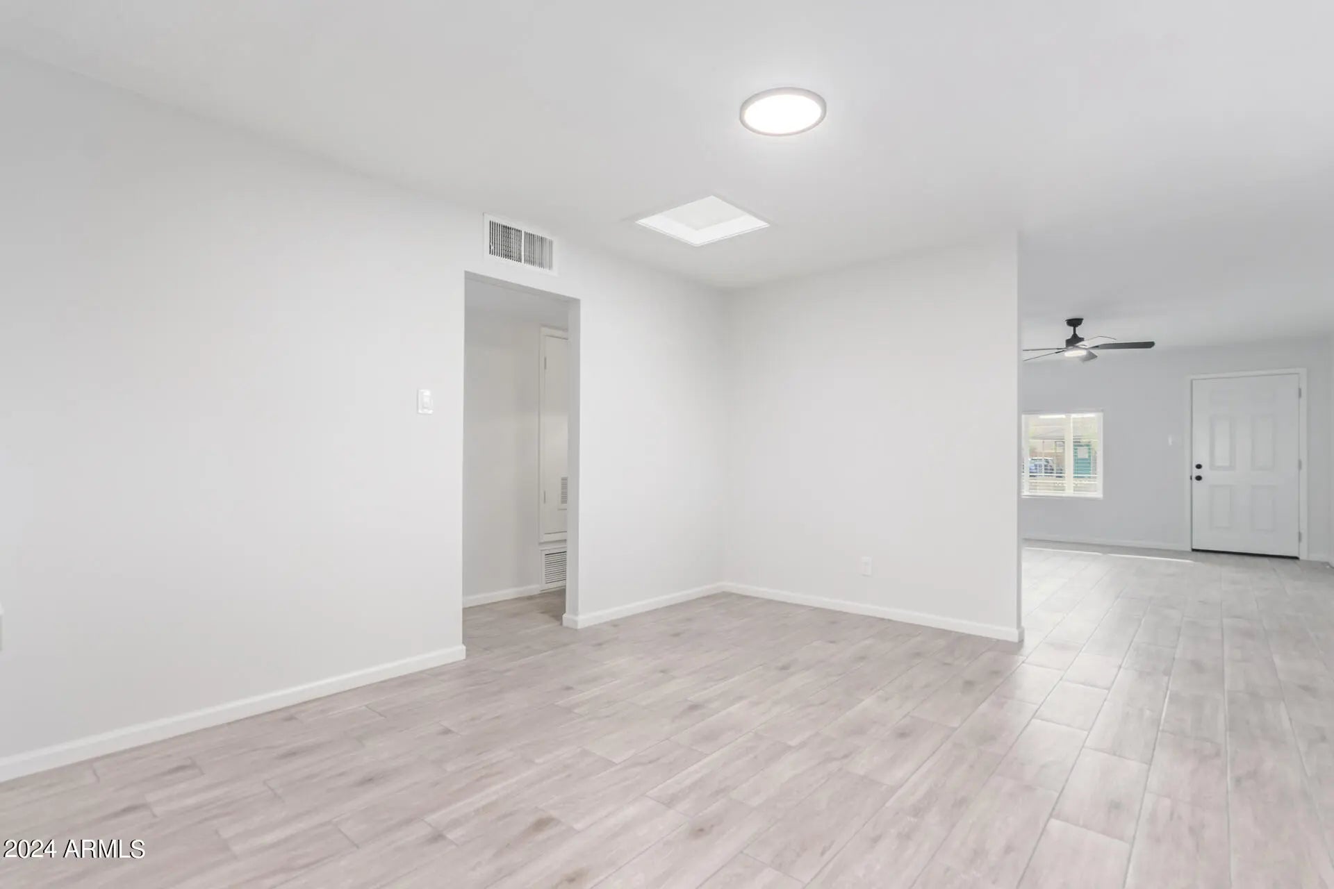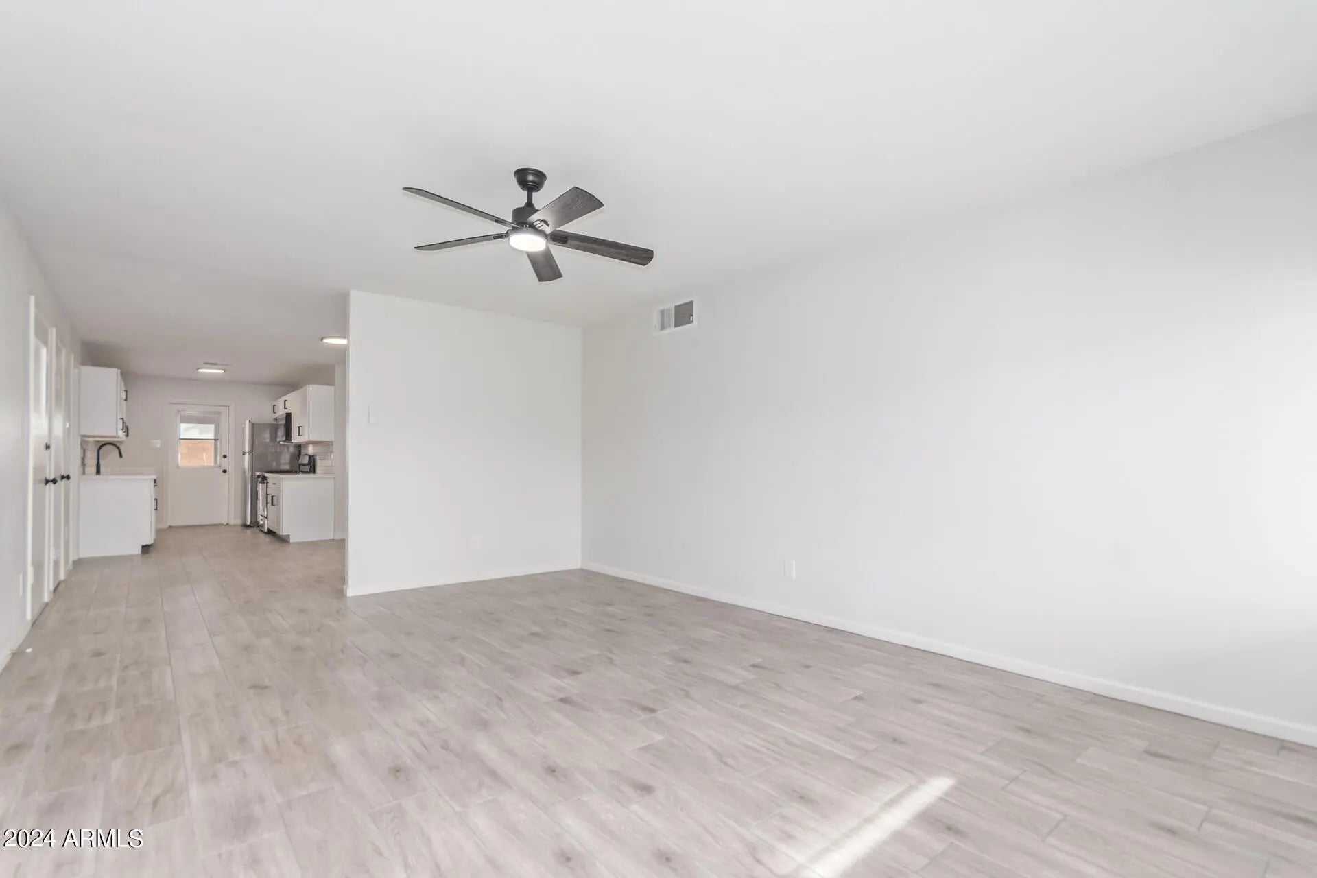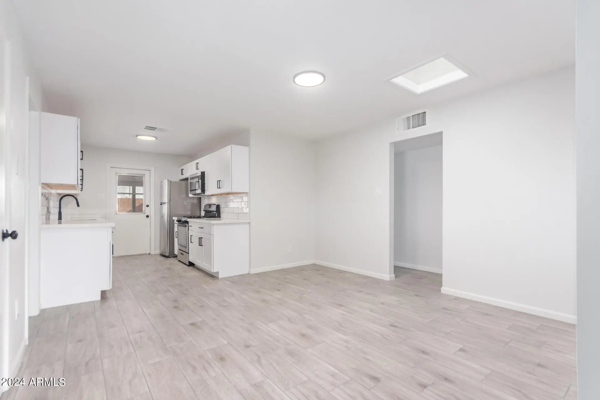 The search is finally over! This move-in-ready residence is the one! It displays a large front yard, a cozy front porch, and a carport space with an extended driveway. Be welcomed by the inviting living room featuring fresh paint and high ceilings accentuated with sleek wood-plank tile throughout. The spotless eat-in kitchen boasts sparkling SS appliances, gleaming granite counters, a subway tile backsplash, ample white cabinetry, and a skylight. With 4 bedrooms and 1.5 bathrooms, this property offers privacy and comfort. Retreat to the generous backyard, providing a covered patio, a separate workshop area, and enough room to fit a pool. Minutes away from restaurants, shopping spots, schools, and more. Hurry! Create new memories in this immaculate abode!