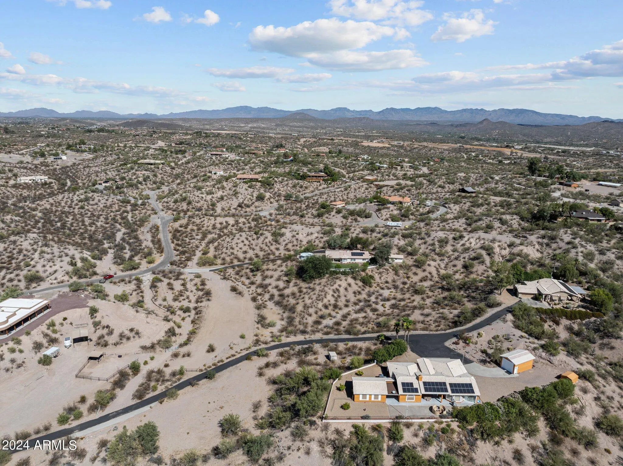 Own this beautiful , charming home in the heart of Wickenburg. NEW STUCCO/PAINT. OWNED SOLAR! No HOA. 3.7 Acres of HORSE PROPERTY. Main home + a guest house. Ranch style, open floor plan, 3 bedroom, 2 full bath & 1/2 bath w/Arizona room. Relax by the fireplace in the living room w/ large picture windows to take in the AMAZING VIEWS and gorgeous sunsets. Exit to the back patio to enjoy the firepit & covered patio. Completely fenced in for your pets & kids.. 2 car attached garage & separate RV garage. Attached by a breezway is a sweet, one bedroom casita for your family & friends. Solar system owned, not leased. Room for your horse set up below the house. Paved road. Easy access to Hwy 60 & Hwy 93. Don't miss out on this great buy. Home is in immaculate shape and move in read