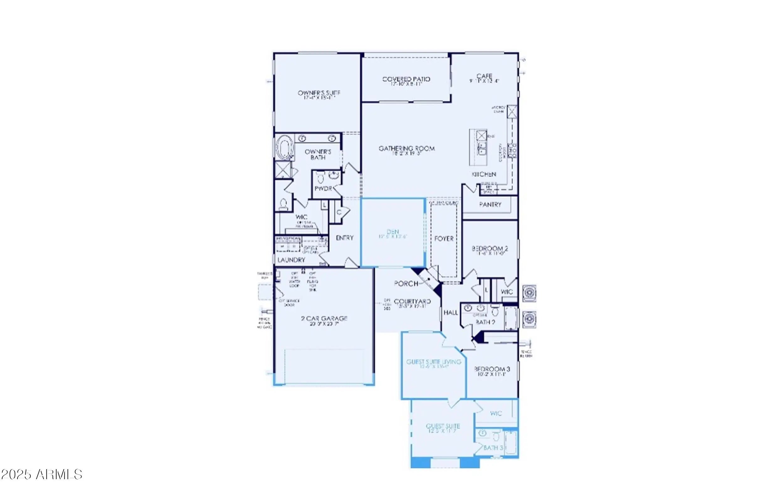 Up to 3% of base price or total purchase price, whichever is less, is available through preferred lender plus additional 3% of base price or total purchase price, whichever is less, is available to be used toward closing costs, pre-paids, rate buy downs, &/or price adjustments. The Ravenna is a true showpiece. Spanning 2,569 sq. ft., this elegant home features 3 bedrooms, 2.5 baths, a den, and the coveted AllGen Suite complete with its own living room, private bath, and walk-in closet. Thoughtful details include a 2' garage extension, 2-car garage, and a charming interior courtyard—perfect for indoor-outdoor living.