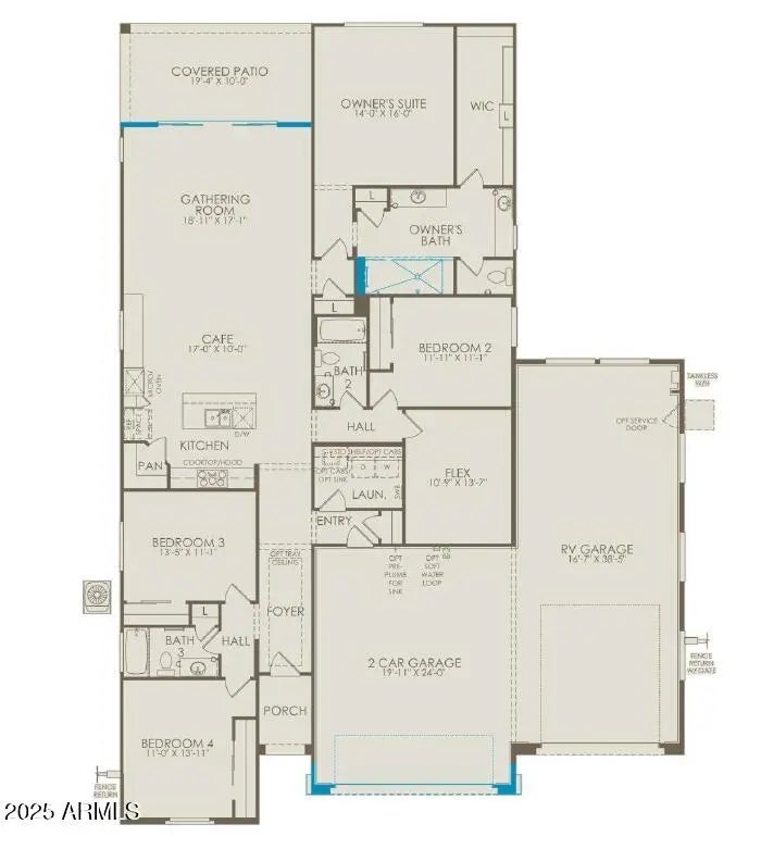 Up to 3% of base price or total purchase price, whichever is less, is available through preferred lender to be used toward closing costs, pre-paids, rate buy downs, &/or price adjustments. Avelino II - Sophisticated Living Awaits. This stunning home offers 4 spacious bedrooms, a versatile flex room, 3 baths, an extended 2-car garage, and a full-size RV garage. Designed for elegance and ease, it features soaring 10' ceilings, 8' interior doors, and a no-step walk-in shower in the owner's suite. The chef-inspired kitchen showcases built-in stainless steel gas appliances and sleek quartz countertops. Every detail reflects upscale comfort and thoughtful design—perfect for refined desert living.