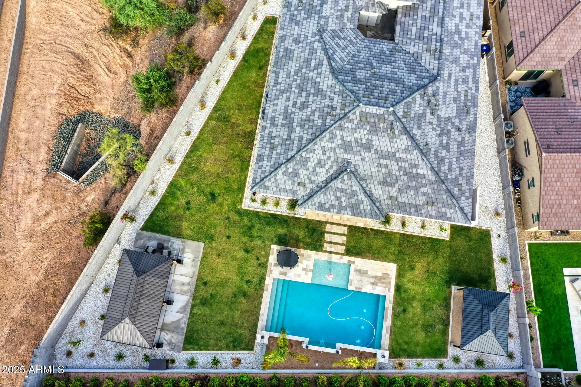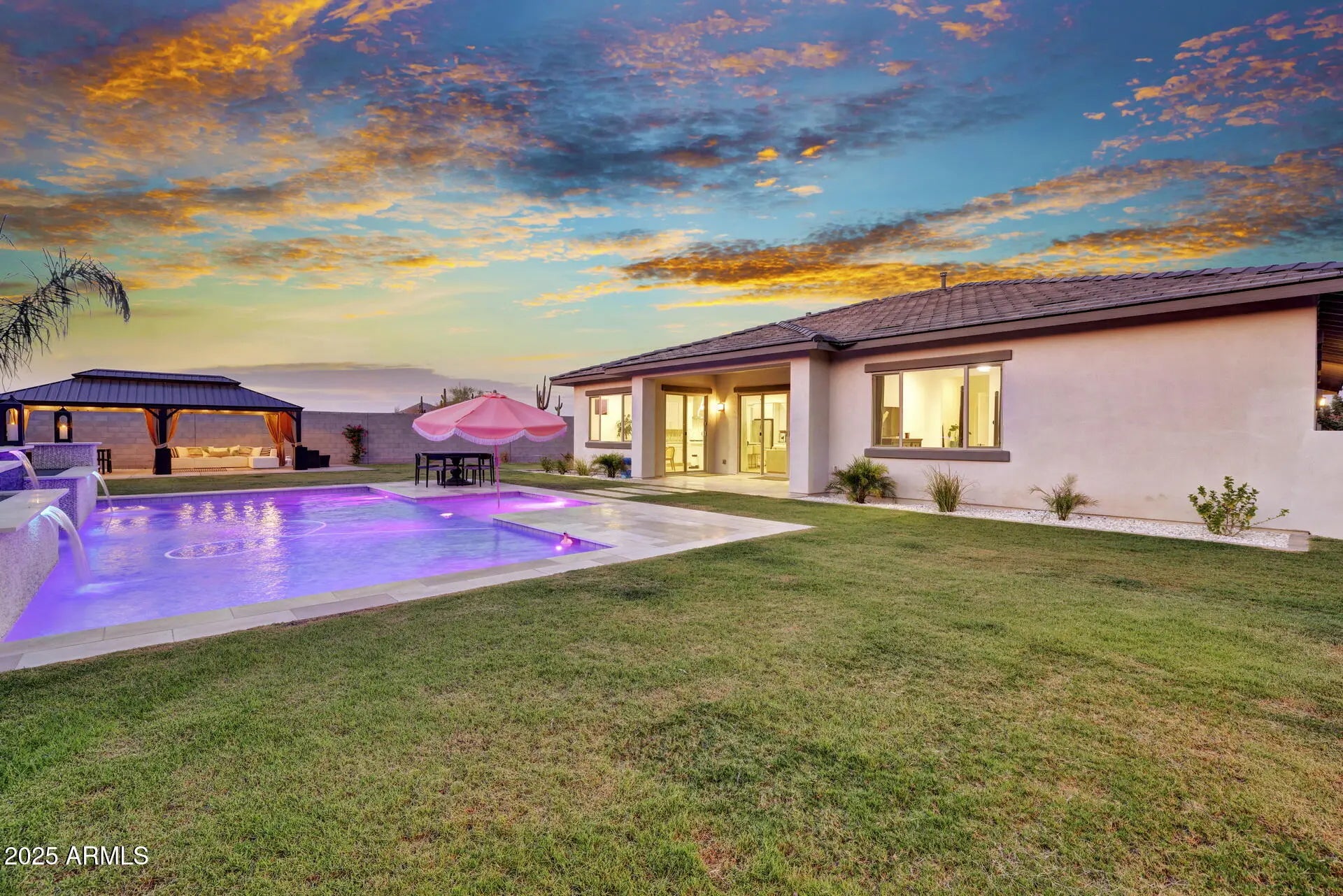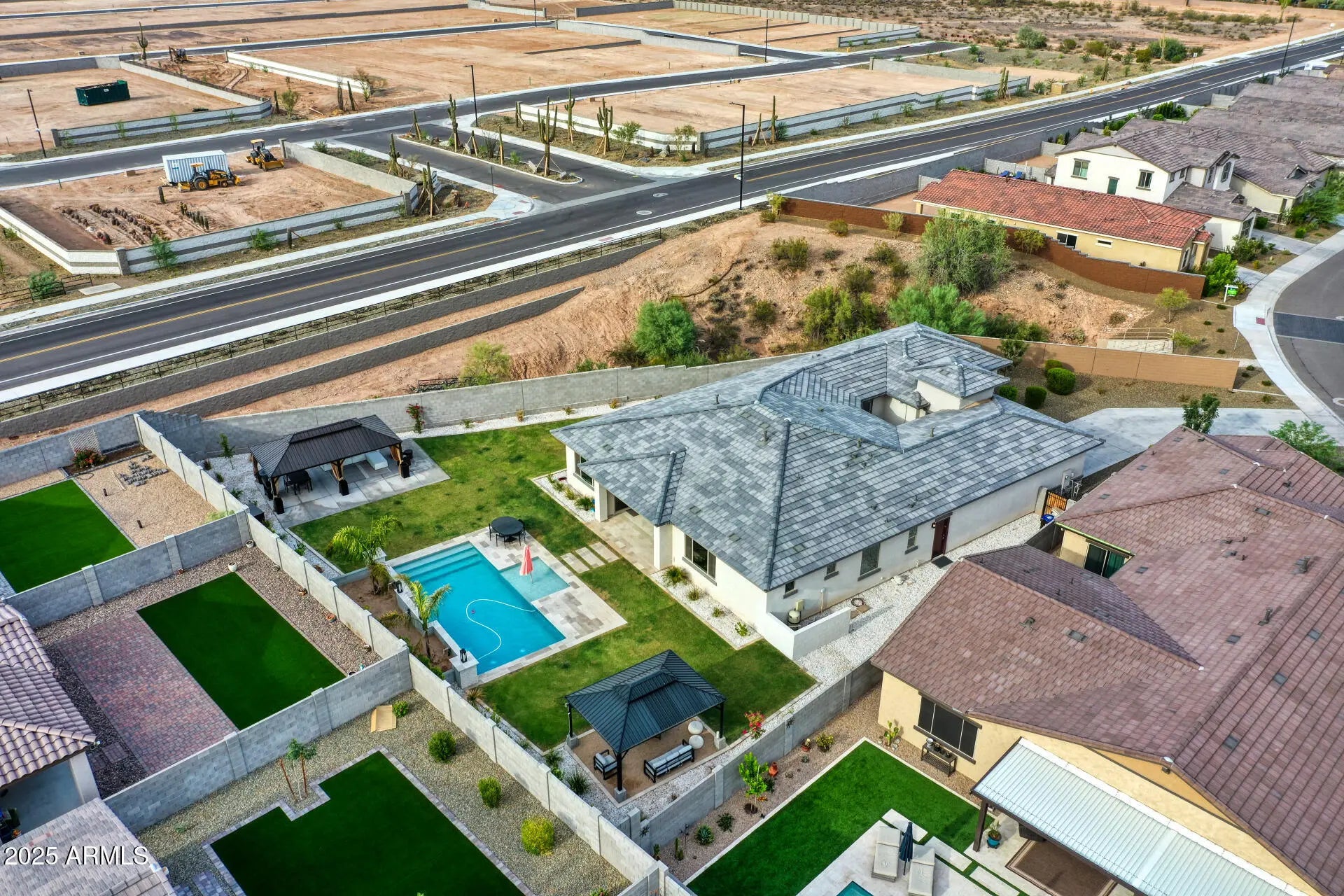 Stop the tape! You'll want to lock this house away. Don't just stand there operate on writing an offer as soon as possible. You do not want to miss out on this opportunity to own one of the prized jewels in the most desirable neighborhood in the north west valley, known as Sereno. Perfectly positioned to make life a breeze, you're just moments from the Loop 303 and all the glorious delights Peoria has to offer. You've got the four bedrooms you need, a spacious living room, a den, and an open floor plan with luxury finishes — just the way you like it. And yes, that FOUR-car garage is real. The massive driveway? Big enough to land a Boeing. How could you miss it? Out back, your friends will be drooling with envy over the brand-new designer pool loaded with all the sweet features. And the side yard? It's not just big it has two pergolas with power. When was the last time you saw that? This home has been incredibly well cared for and meticulously updated. You'll feel it the second you walk in. Clean, gorgeous tile flooring. Sleek, modern kitchen cabinetry. Abundant storage. Classic design that's timeless. Want full smart-home control from the palm of your hand or with a quick "Hey Alexa"? You've got it. This house is so smart, it could probably do your taxes. Admit it this is the home with all the bells and whistles you've been waiting for. This is your moment. If you had one shot, one opportunity to grab the house you've always wanted... would you capture it, or just let it slip?