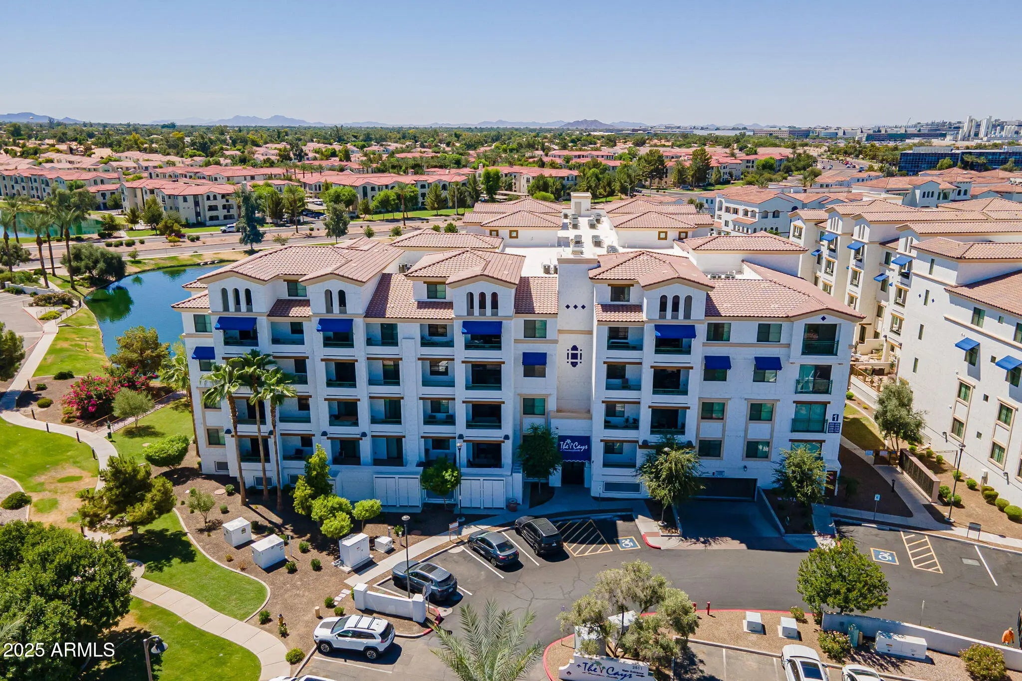 **Seller is offering $5,000 in concessions which can be used for prepaid HOA fees, interest rate buy down, closing costs, etc.!** Experience the best of luxury living at The Cays in Downtown Ocotillo! Built in 2021, this stylish condo combines modern design with resort-style amenities for the ultimate lifestyle. This unit offers an open floor plan featuring a spacious primary suite, 1.5 bathrooms, and a versatile flex space, perfect for a home office. Enjoy your private balcony with lake and fountain views! Premium parking spot with additional storage in secured underground garage plus conveniently located near the building elevator for quick access. Enjoy unmatched community amenities including a resort-style pool, outdoor gas BBQs, yoga room, state-of-the-art fitness center private steam rooms, and a clubhouse with pool tables, full kitchen + more! Nearby you'll also find upscale dining options, a cozy coffee shop and more - everything you need is right outside your door. Minutes from 101 & 202 freeways for quick access to the rest of the Valley! Luxury, location and lifestyle all in one place.