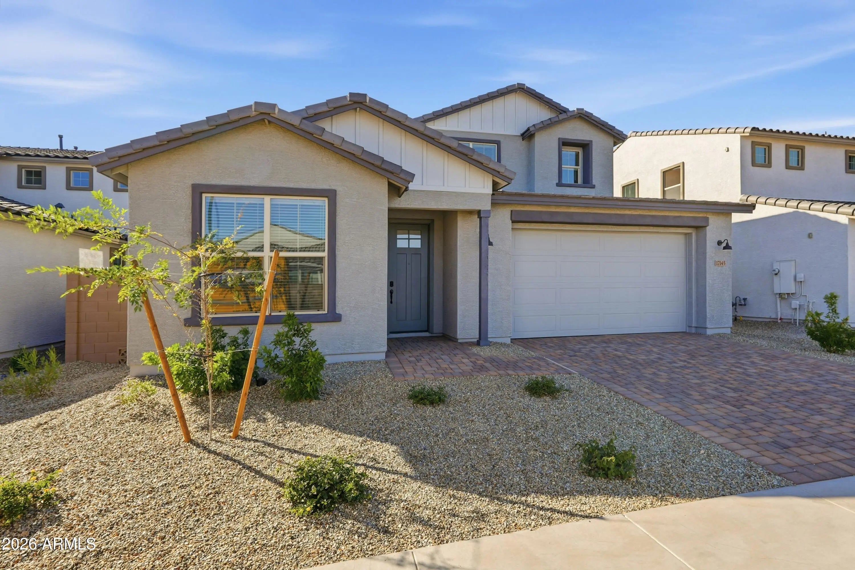 What's Special: Oversized Lot | Backs to Open Space | Loft. New Construction - Ready Now! Built by America's Most Trusted Homebuilder. Welcome to the Victory at 17145 W Sweet Iron Pass in Artisan at Asante Encore Collection! Step through the inviting porch into a foyer that leads to a flex room, powder room, and laundry room. The open-concept design features a great room flowing into a gourmet kitchen with upgraded cabinets, a large center island, a casual dining area, and a covered outdoor living space. On the main level, the primary suite offers a spa-like bathroom and spacious walk-in closet. Upstairs, discover three additional bedrooms, one with a private ensuite, along with another full bathroom, two tech areas, and a loft. MLS#6904974 Artisan at Asante boasts a luxurious resort-style pool, a well-equipped recreation center, outdoor seating, pickleball courts, a basketball court, and scenic walking paths, making this an exciting and adventurous community! Additional Highlights Include: Gourmet kitchen, multi-slider door at great room, and upgraded cabinets and flooring.
