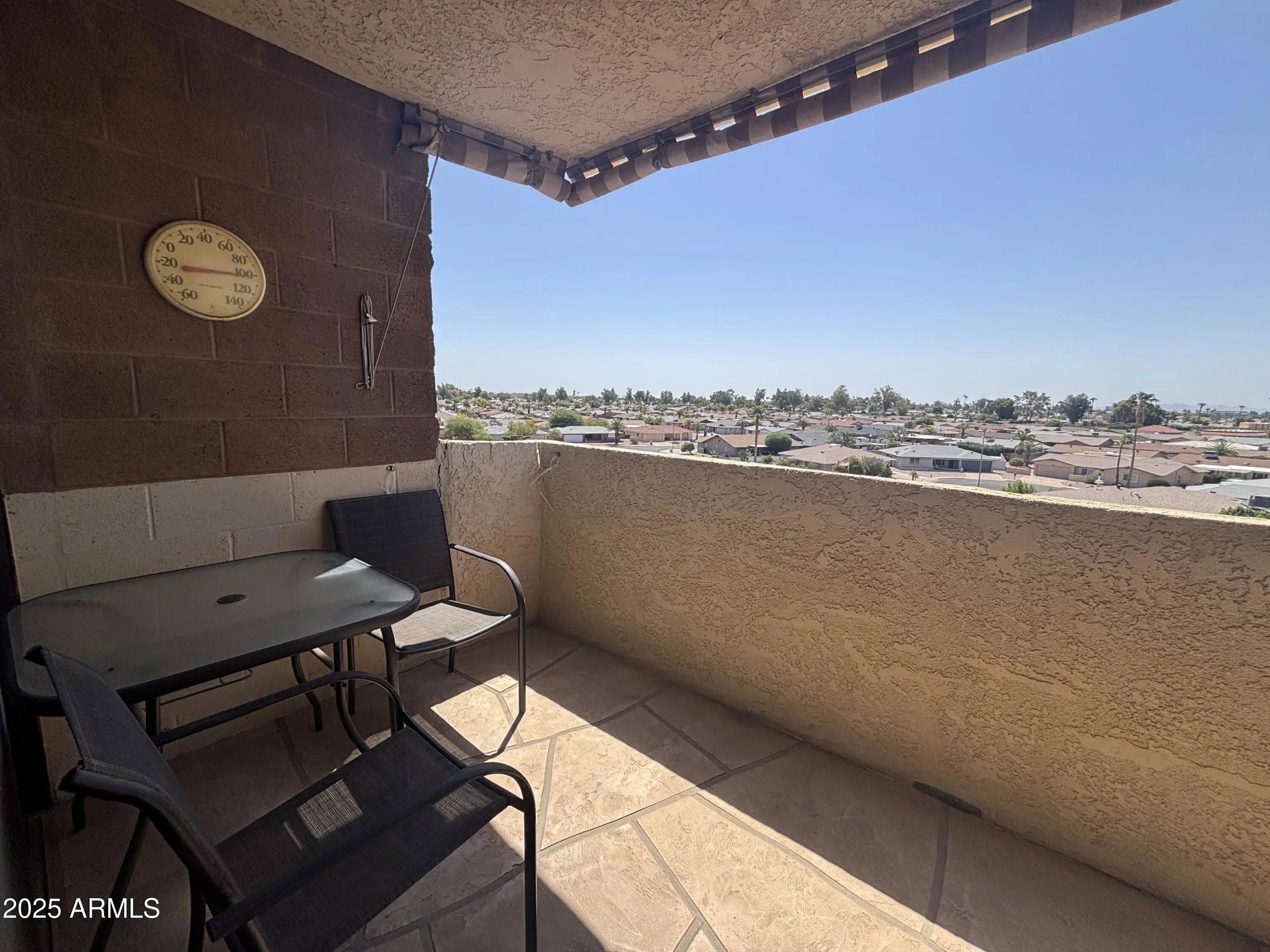 Beautiful two bedroom, two bathroom END UNIT on TOP FLOOR condo with amazing 180-degree views of mountains. New HVAC in July 2025. Large walk in closet and private bath in primary bedroom. Private stucco balcony with sun shade. Secure building with gated assigned underground parking. Two storage closets, one on floor near unit and one in parking garage. HOA provides water, sewer, trash, pest control, common area maintenance, roof maintenance/repair and blanket insurance. Sunland Towers and Sunland Village are a 55 Plus Community. Buyer pays one time $1925 Common Property Maintenance Fee. NO PETS allowed in Towers.