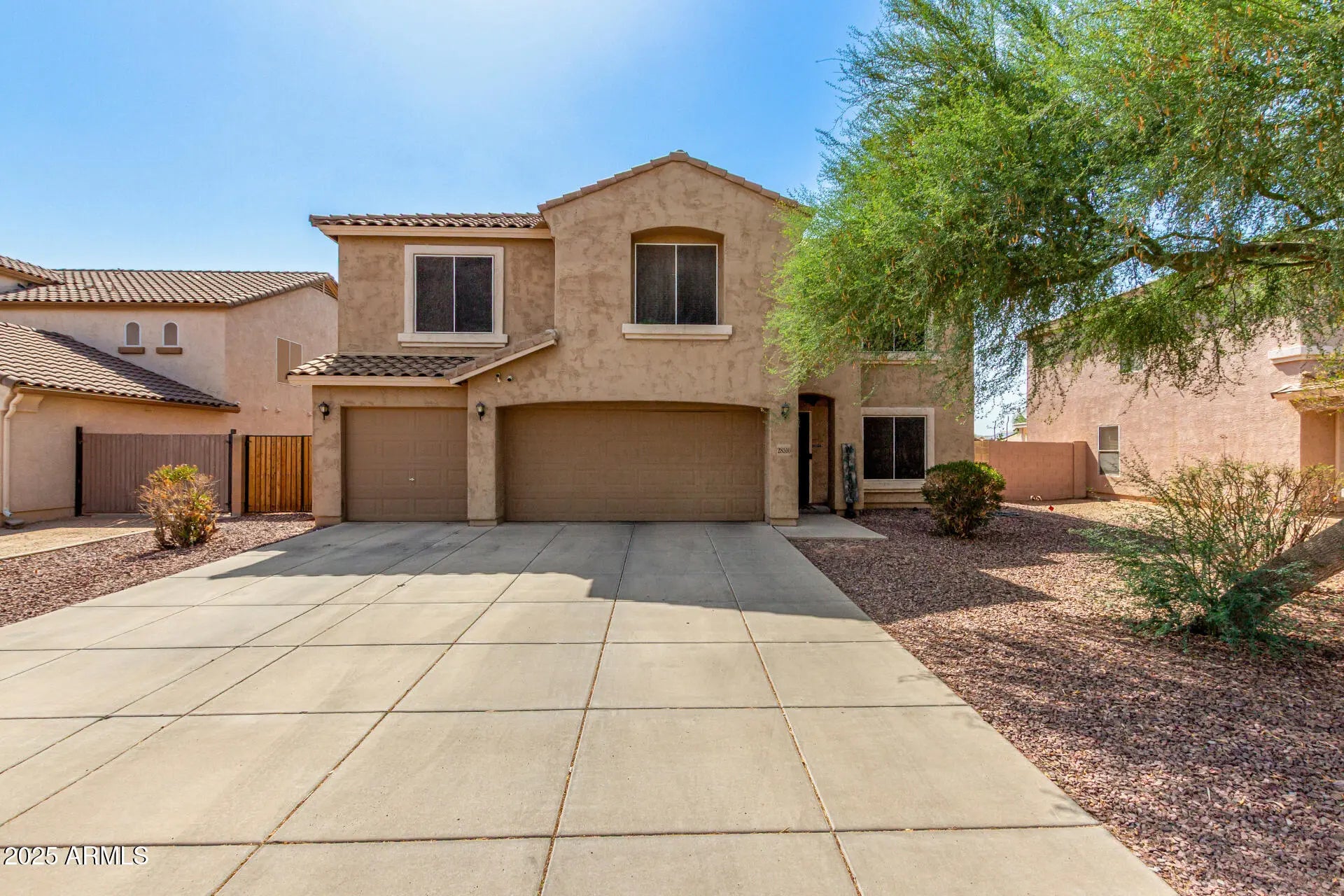 Welcome to this remarkable, spacious two-story home in Copper Basin! Offering 5 beds, 2.5 baths, 3-car garage, RV gate, & a low-care landscape. The inviting interior features tons of natural light, neutral paint, and tile & wood-look floors t/out. Great floor plan with a combined living & dining room, as well as an open-concept family room. The impressive kitchen boasts SS appliances, granite counters, a walk-in pantry, ample white cabinets, recessed lighting, and a butcher block island w/breakfast bar. For added functionality, this gem includes a versatile den downstairs and a cozy loft upstairs. The oversized main bedroom has an ensuite with dual sinks & a carpeted walk-in closet. Check out the large backyard with an extended covered patio, artificial turf, & garden beds! Make it yours!