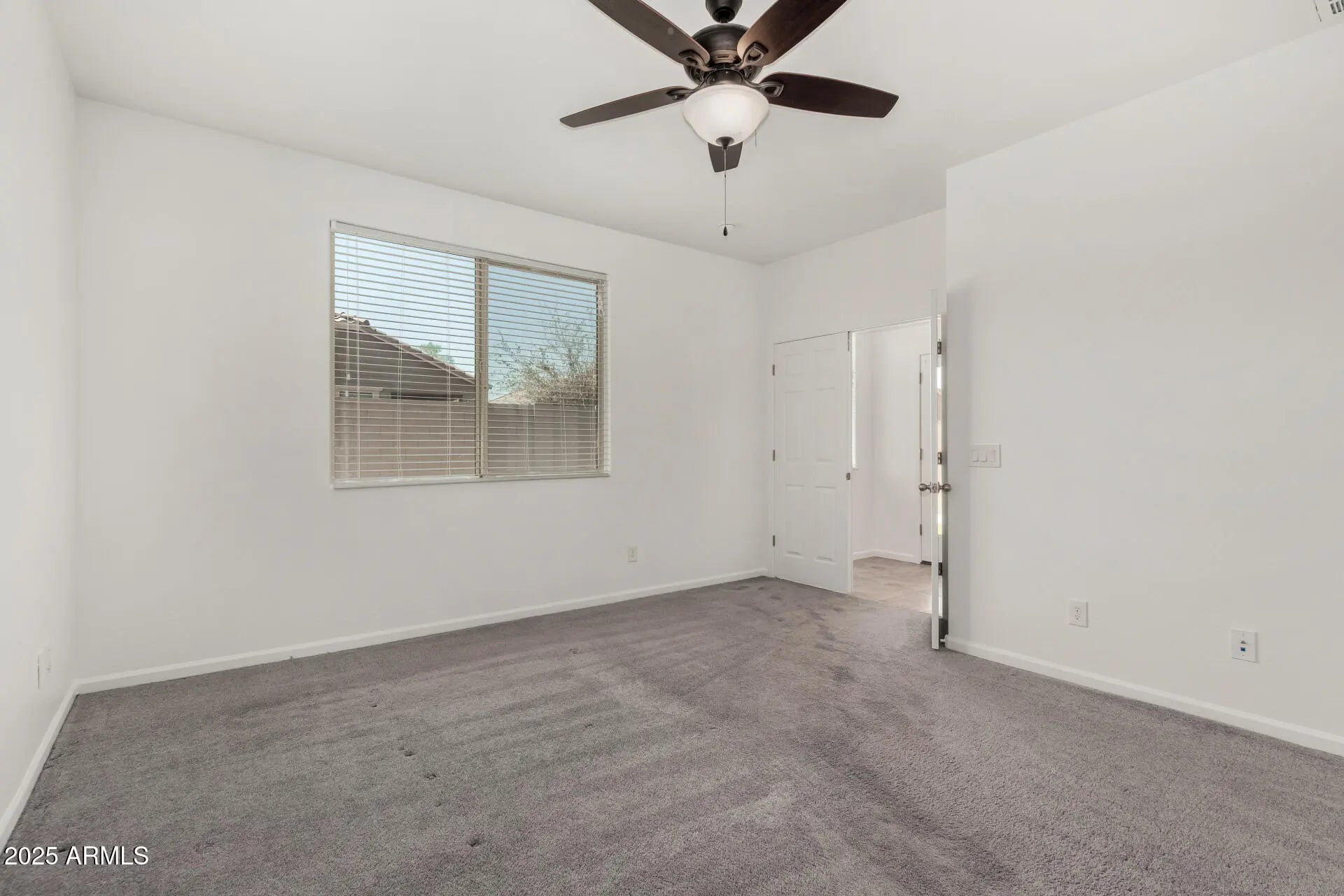 HUGE price Improvement!! Become the proud owner of this charming 4-bedroom home in The Parks! You're welcomed by a serene living room with high ceilings, recessed lighting, a soothing palette, blinds, and durable tile flooring for easy maintenance. The gourmet kitchen comes with granite counters, ample wood cabinetry, built-in appliances, a walk-in pantry, and a peninsula with a breakfast bar for quick meals. Double doors lead to the primary bedroom, complete with plush carpeting, an ensuite with double sinks, and a practical walk-in closet. Enchanting evenings await in the lovely backyard, which offers a covered patio, stylish pavers, and pristine artificial turf for year-round greenery. Don't miss out on this fantastic opportunity!