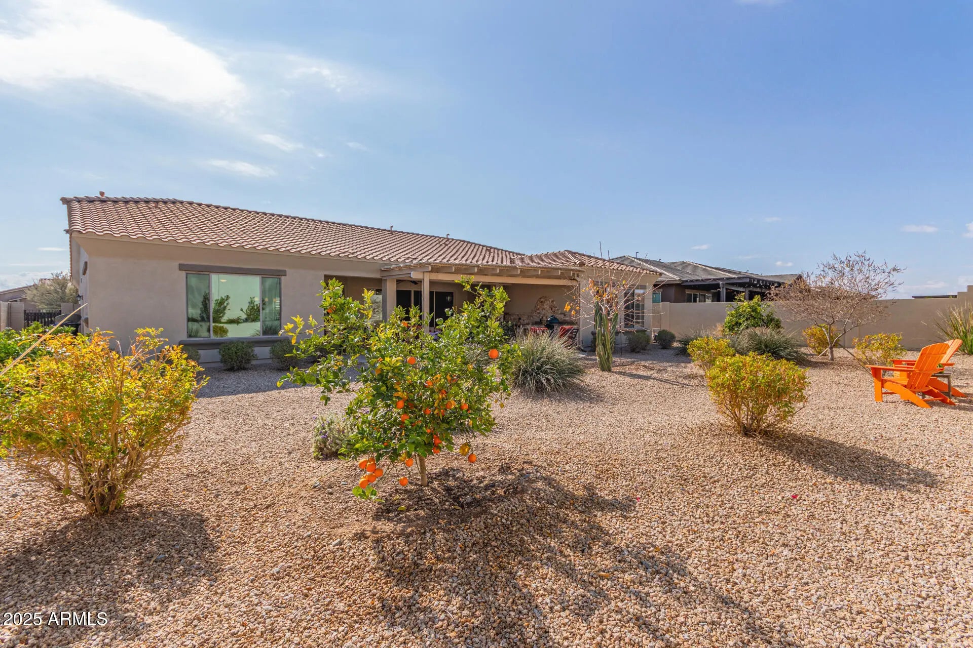 Designed for how life really happens, this fabulous David Weekley-built home invites sunset dinners & slow desert evenings! A 16' slider provides a seamless transition to a covered outdoor living room & kitchen w/extensive travertine decking flowing into a peaceful backyard retreat complete w/mature landscaping & fruit trees. Inside, thoughtful finishes elevate every room: premium wood flooring in the study/office, diagonal laid neutral tile in all main areas, brand new carpet in all bedrooms & plantation shutters thru-out. The chef-inspired kitchen features an expansive island, pendant lighting, granite counters, glass tile backsplash, GE Profile appliances, 5-burner gas cooktop & wall oven w/MWO above. It's where weeknights linger & weekends come together. At the day's end, retreat to the elegant owner's suite boasting a spa-style ensuite w/over-sized walk-in shower, luxurious soaker tub, separate vanities & large walk-in closet. The 3 secondary bedrooms are all spacious w/2 sharing a Jack 'n Jill bathroom & the 3rd served by the nearby hall bathroom + a walk-in closet. Be sure to check the documents tab for detailed info, floor plan & builder features. Highlights include: * Top of the line construction * New roof underlayment 2023 with transferable 10-year warranty * 10' executive ceilings & 8' tall doors throughout * Exterior & stucco wall repainted 2021 * Built-in timers for all front & garage lights * Outlet for EV charging - 240V * New gas hot water heater 2022 with 9-year warranty * Pergola shade with rolldown shade on east side * Outdoor kitchen with 3 burners, drawers, multi-level counter & Green Egg grill * Calming water fountain feature * Custom paint throughout * Pull down blackout shades behind plantation shutters in all bedrooms * Refrigerator, washer & dryer included * Some furniture & furnishings available via separate bill of sale. Estrella offers unbeatable value-for-money HOA amenities. Two residents' centers feature fully equipped fitness centers, a lap pool, fabulous splash waterpark, pools (one heated!) & basketball, volleyball, tennis & pickleball courts + boating, fishing, hiking trails, bike paths and more! You'll find restaurants in each: The Lakeside Grill at Starpointe & The Cantina at The Presidio. The Welcome Center at the Star Tower entrance to Estrella offers Café Bebida, a perfect meeting place for coffee & pastries or a delicious gelato! Estrella is home to one of the valley's top golf courses - a Jack Nicklaus designed, Troon managed course with discounted green fees offered to residents. Opposite Starpointe, you'll find Estrella's commercial center with services on offer to accommodate all wants and needs. You're not just buying a house - you're buying a lifestyle!