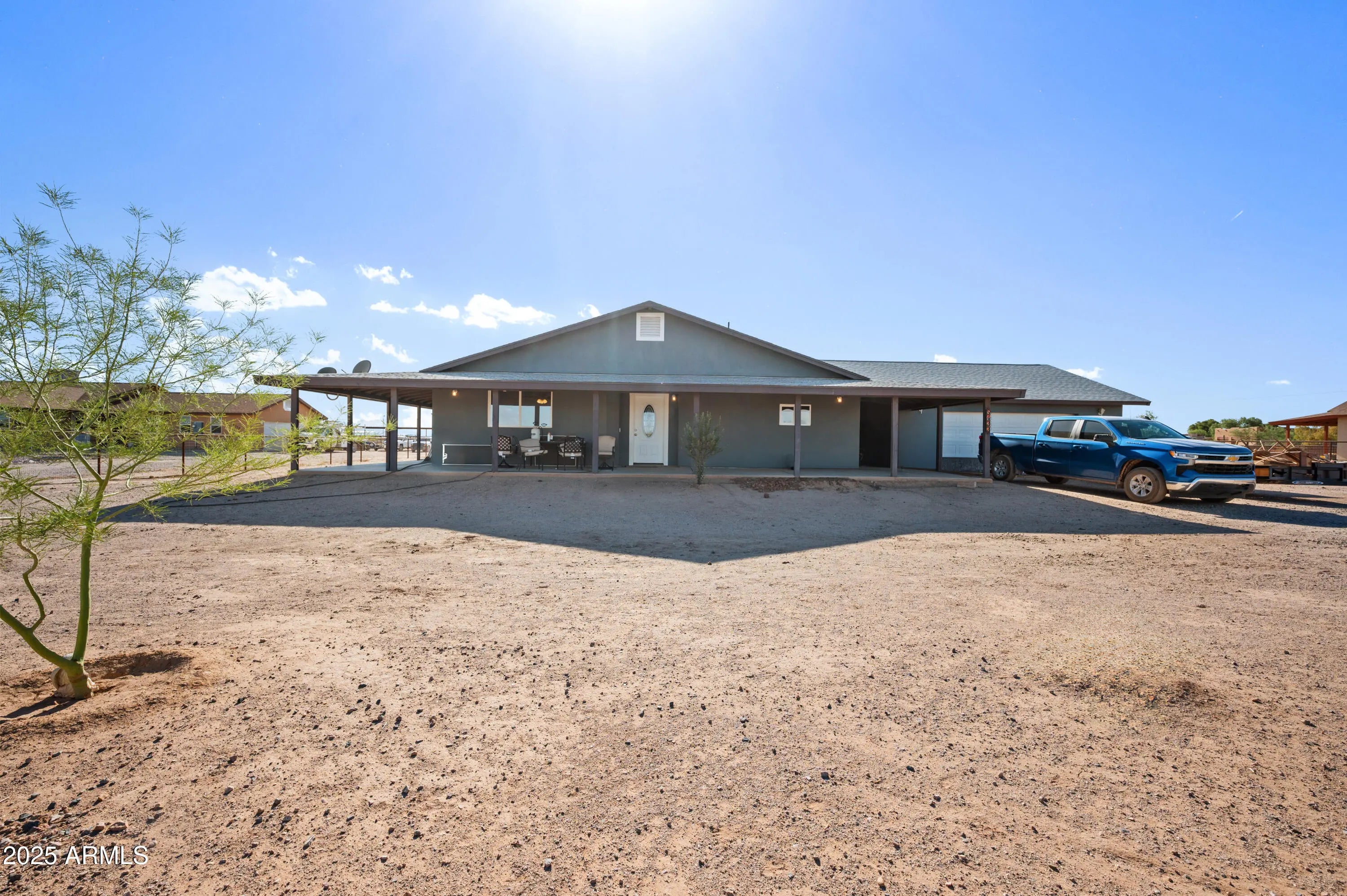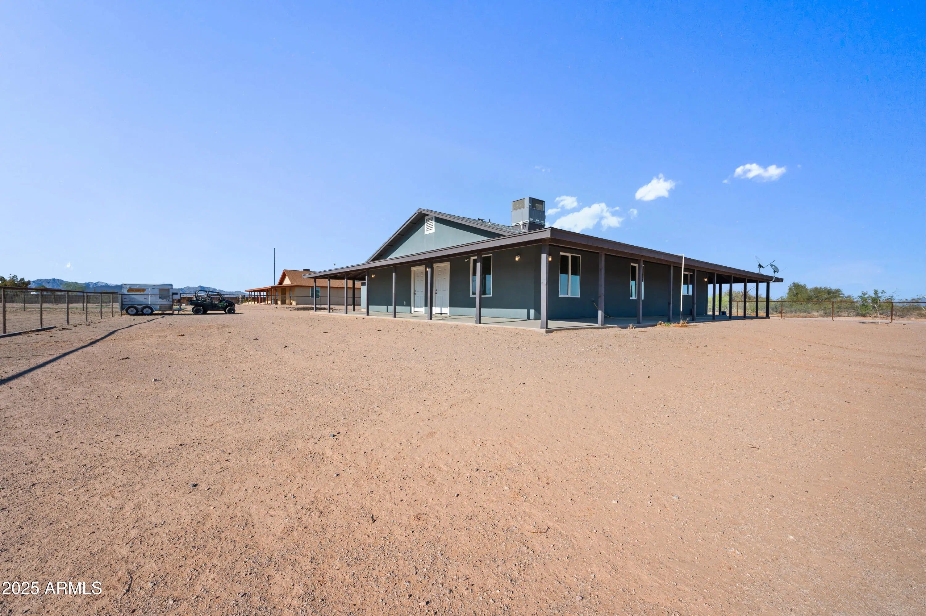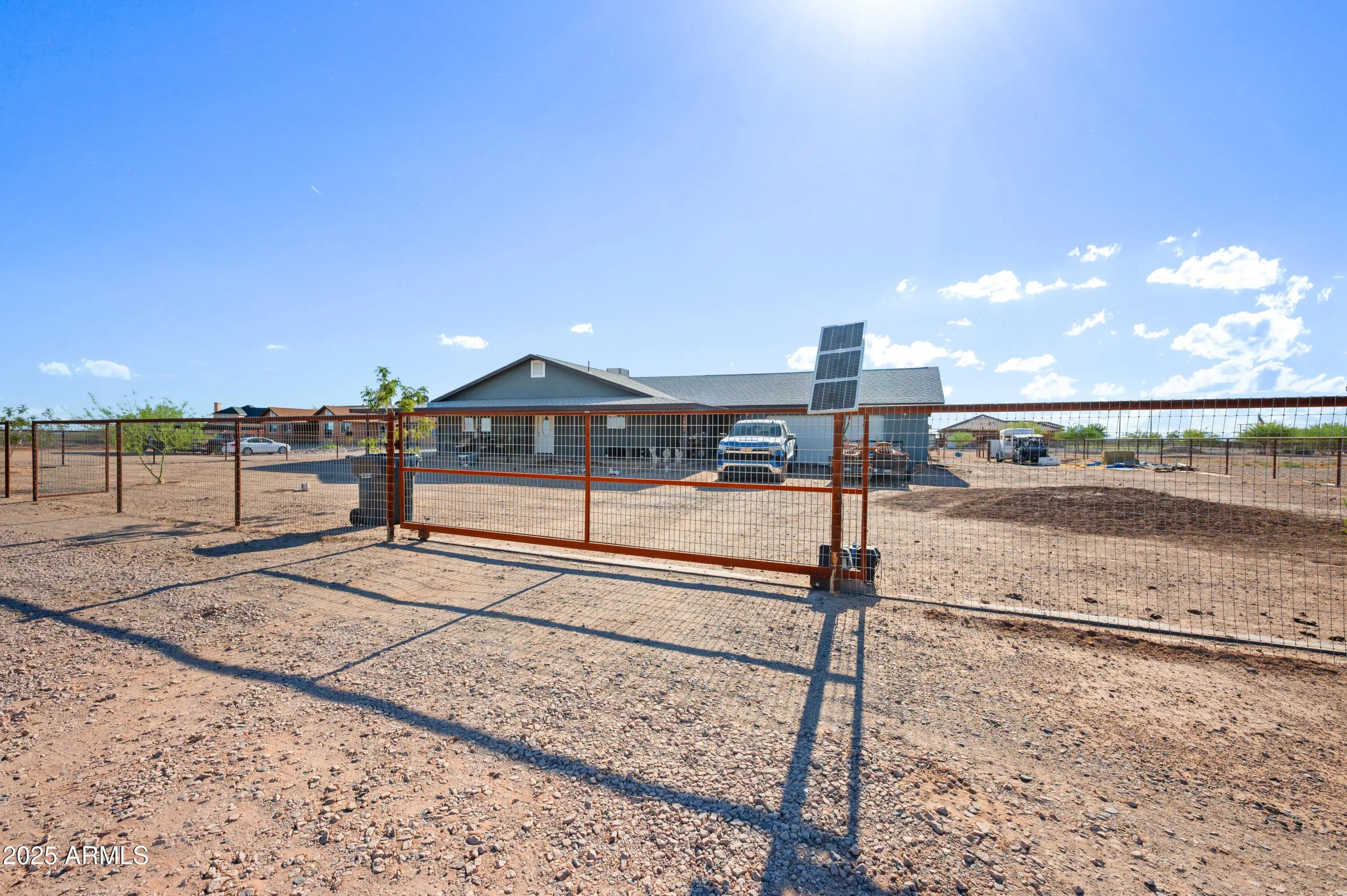 NEW BUILDS CANNOT COMPETE! Stunning 2022-built 2,000 sq ft home on 1 acre with no HOA! COMPLETELY enclosed with a no-climb fence and a private electric gate, offering both privacy and convenience. Inside, enjoy 3 generously sized bedrooms, 2 full baths, and a versatile flex room. The primary en-suite is truly a retreat. Featuring a generous walk-in closet, dual vanities, and a spacious bathroom, it offers both comfort and convenience with plenty of room to unwind.The kitchen features stainless steel appliances, modern finishes, and plenty of storage. Relax on the wrap-around porch or in the huge oversized 2-car garage. The property includes a designated horse corral with 2 custom shade structures, plus a built-in security system. Don't miss out, priced to sell!