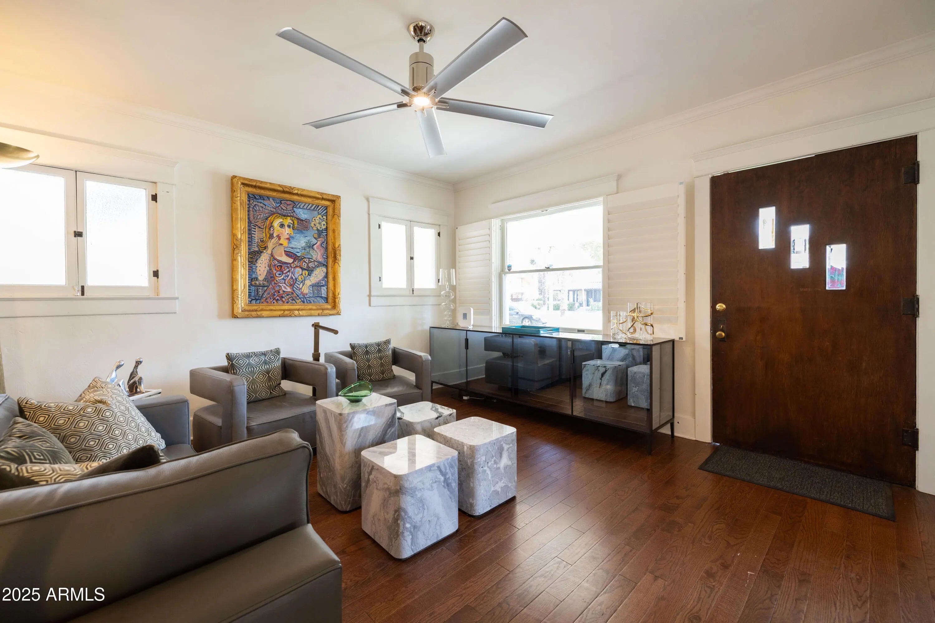 Welcome to ROOSEVELT Historic District! Rare chance to own a 100-year-old Craftsman on a coveted palm-lined street in the Roosevelt Historic District. Offering 1,921 sq. ft. of living space, this property includes a two-bedroom, two-bath main home, an ensuite guest casita with kitchenette, and a separate office/studio on a large 9,250 sq. ft. lot. Features include a pool, wraparound porch, gated driveway, original built-ins, updated lighting, renovated baths, new appliances, solar panels, and lush landscaping. Architectural plans for a 500 sq. ft. expansion are included, and they have been approved by the City of Phoenix and the Historic District! Enjoy walkable access to Roosevelt Row, Hance Park, dining, arts, and light rail, plus low historic taxes and a welcoming community.