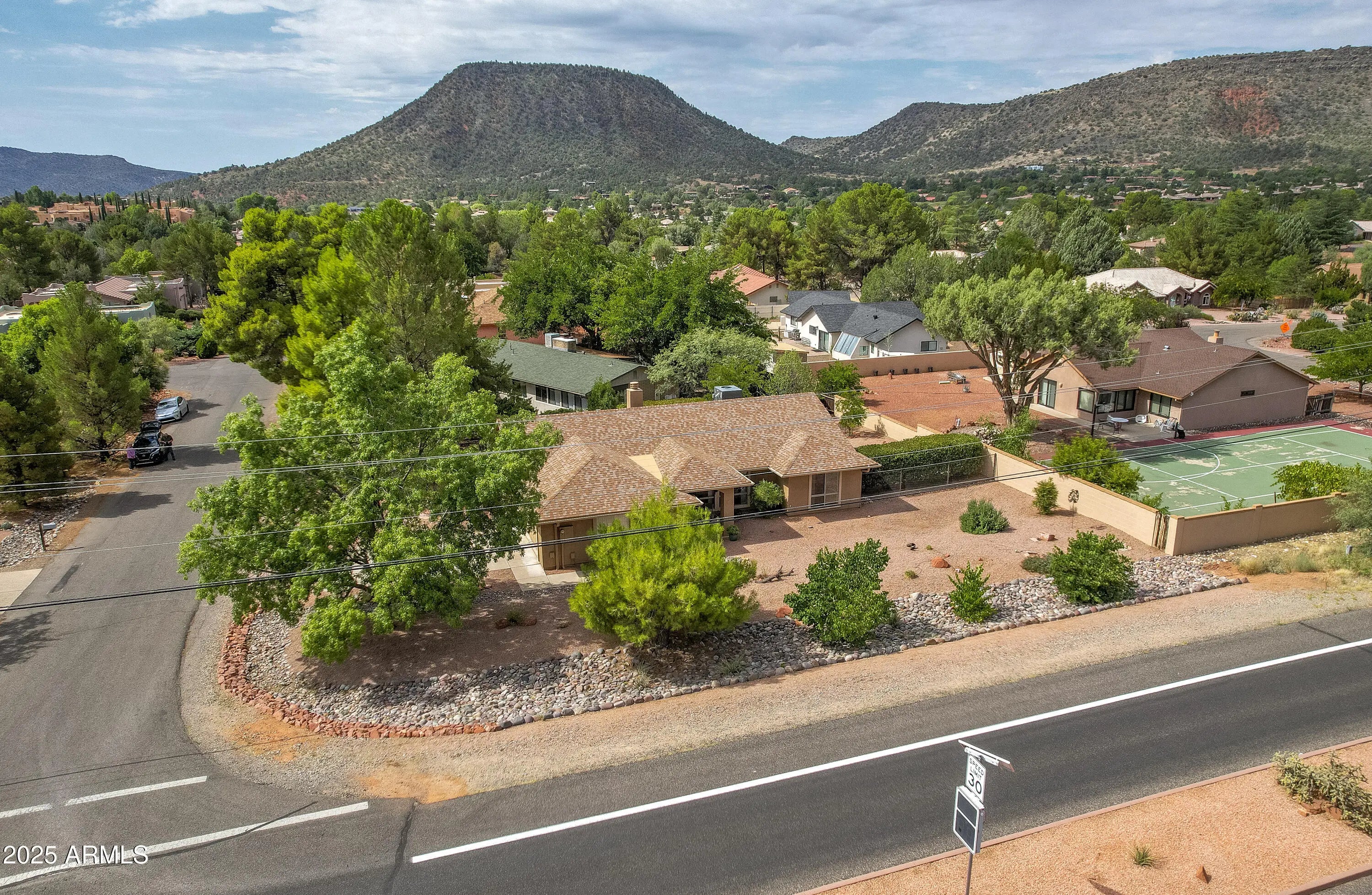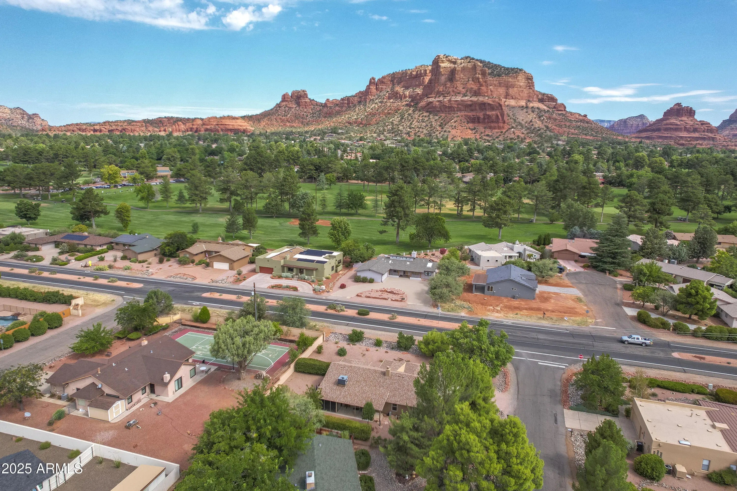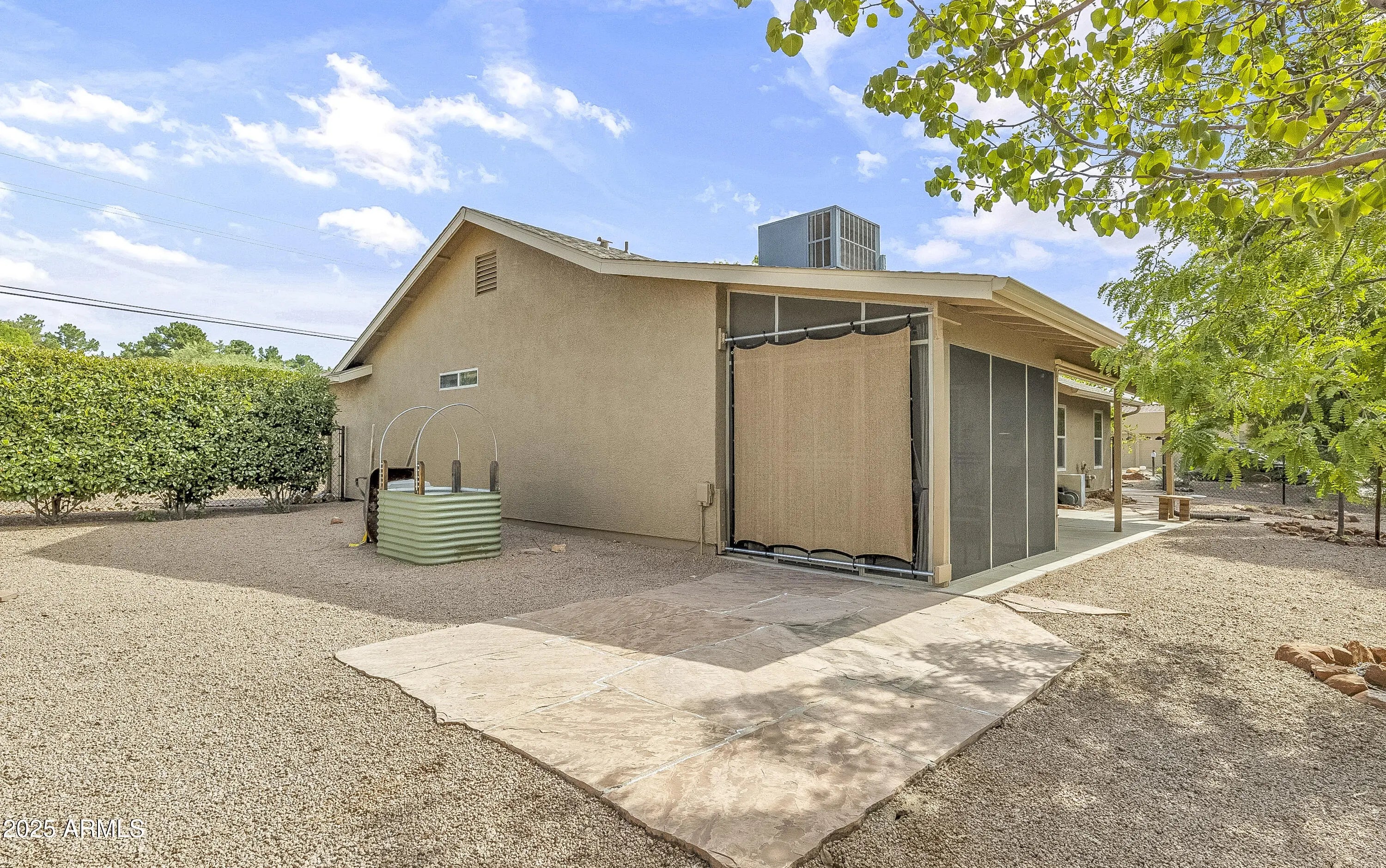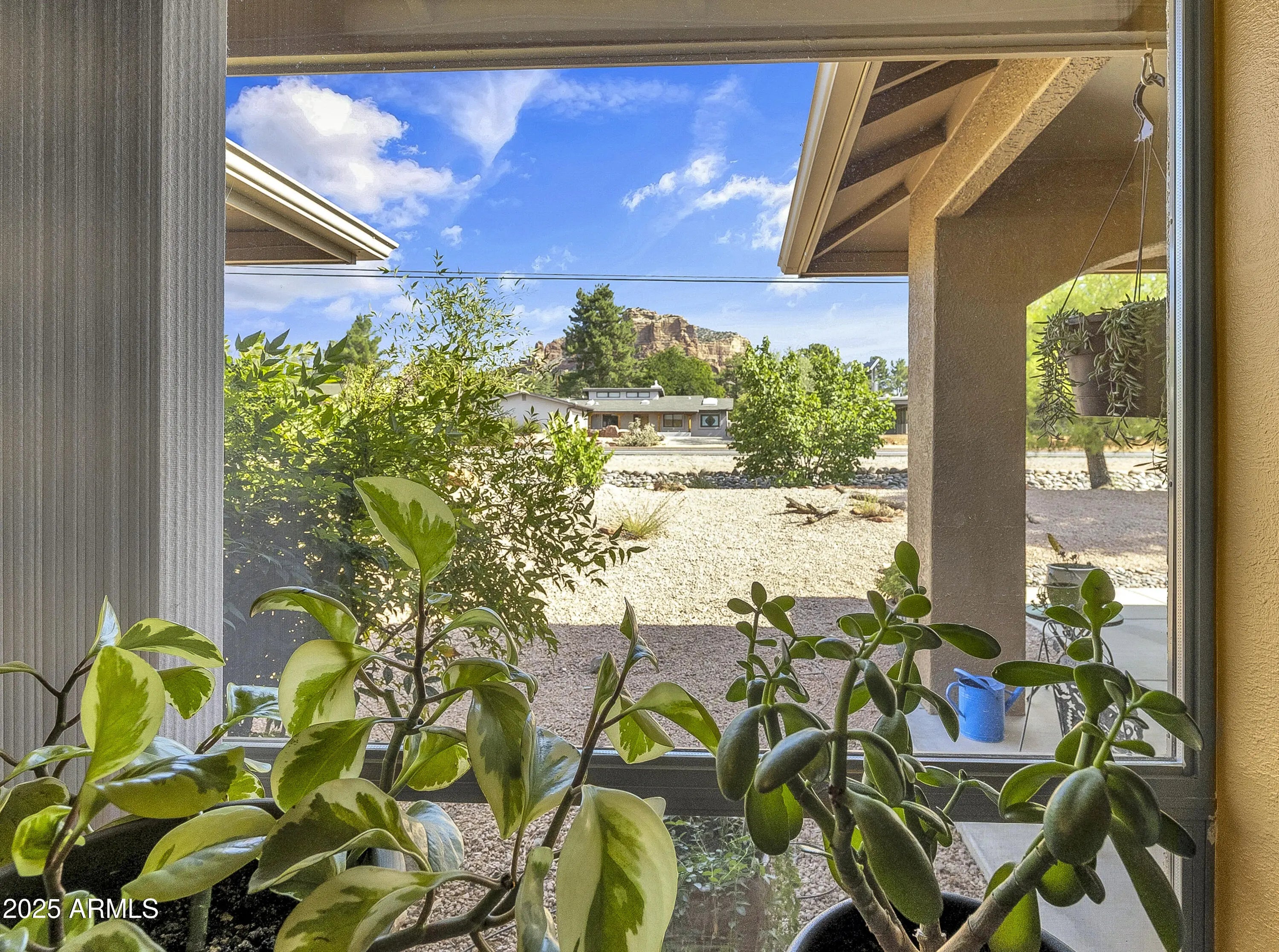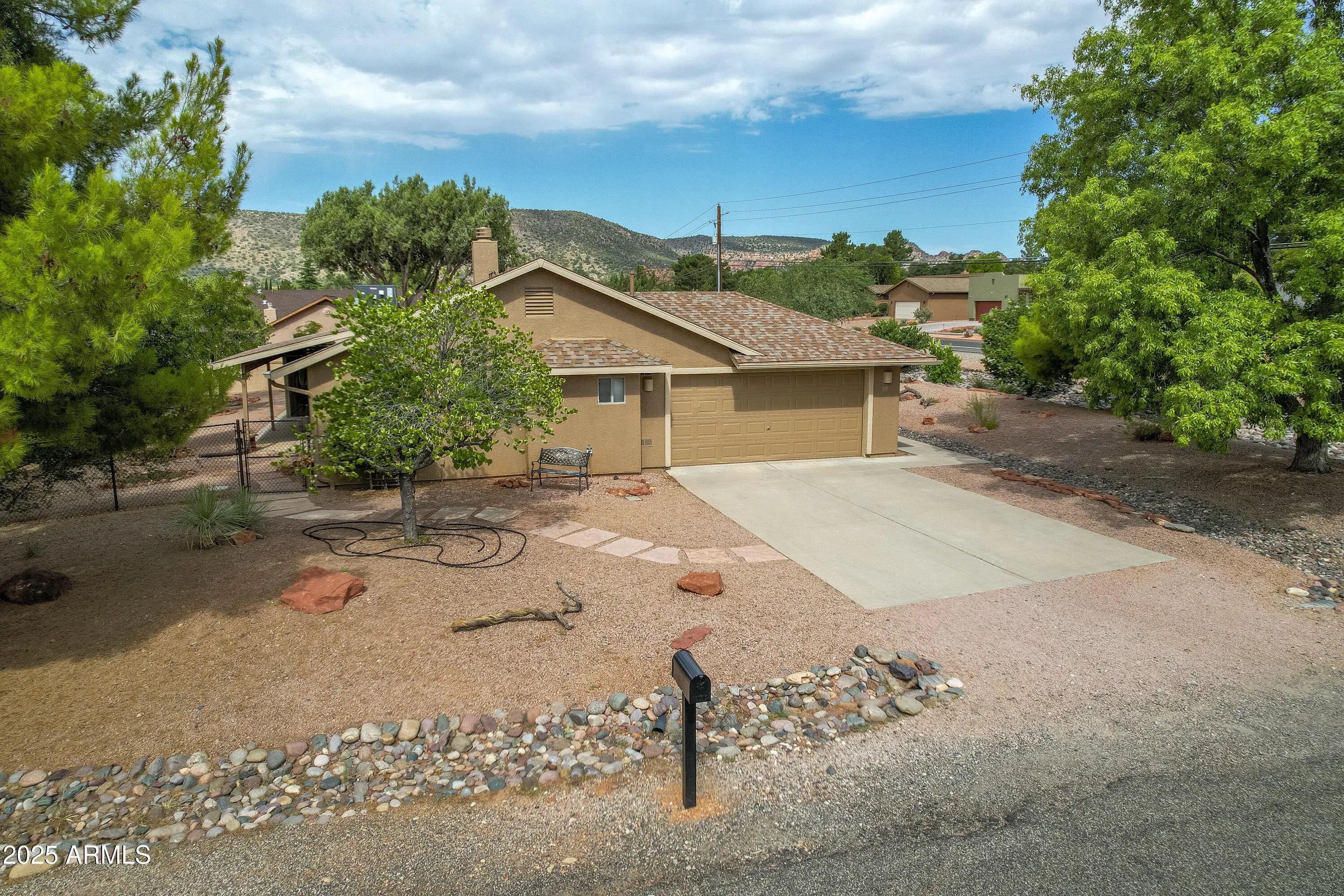 Located in the heart of Sedona's Village of Oak Creek, this charming single-level home offers stunning views of Castle Rock. Just a short 10 minute stroll to the post office and grocery store, convenience meets comfort in this well-maintained property. There are two golf courses in the neighborhood to choose from. Recent upgrades include a beautifully remodeled primary bathroom (2022), a new roof (2023), and a modern heating and electric cooling system (2022). The partially screened-in back porch is perfect for relaxing—and could easily be converted into a cozy ''Catio.'' Additional improvements include a freshly painted exterior, a new grinder pump for the sewer system (2025), and updated irrigation solenoid valves. This home is move-in ready and full of thoughtful touches throughout.