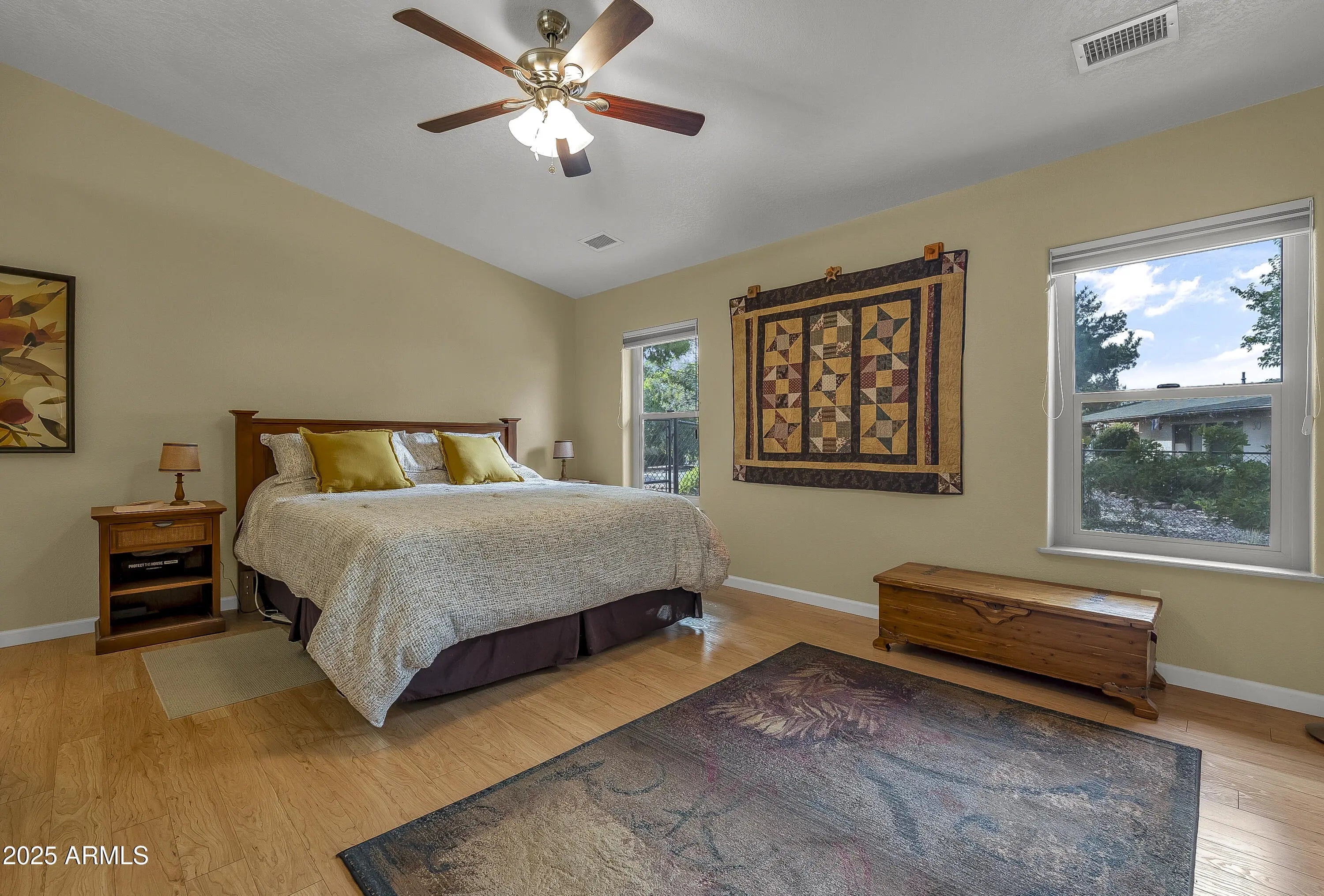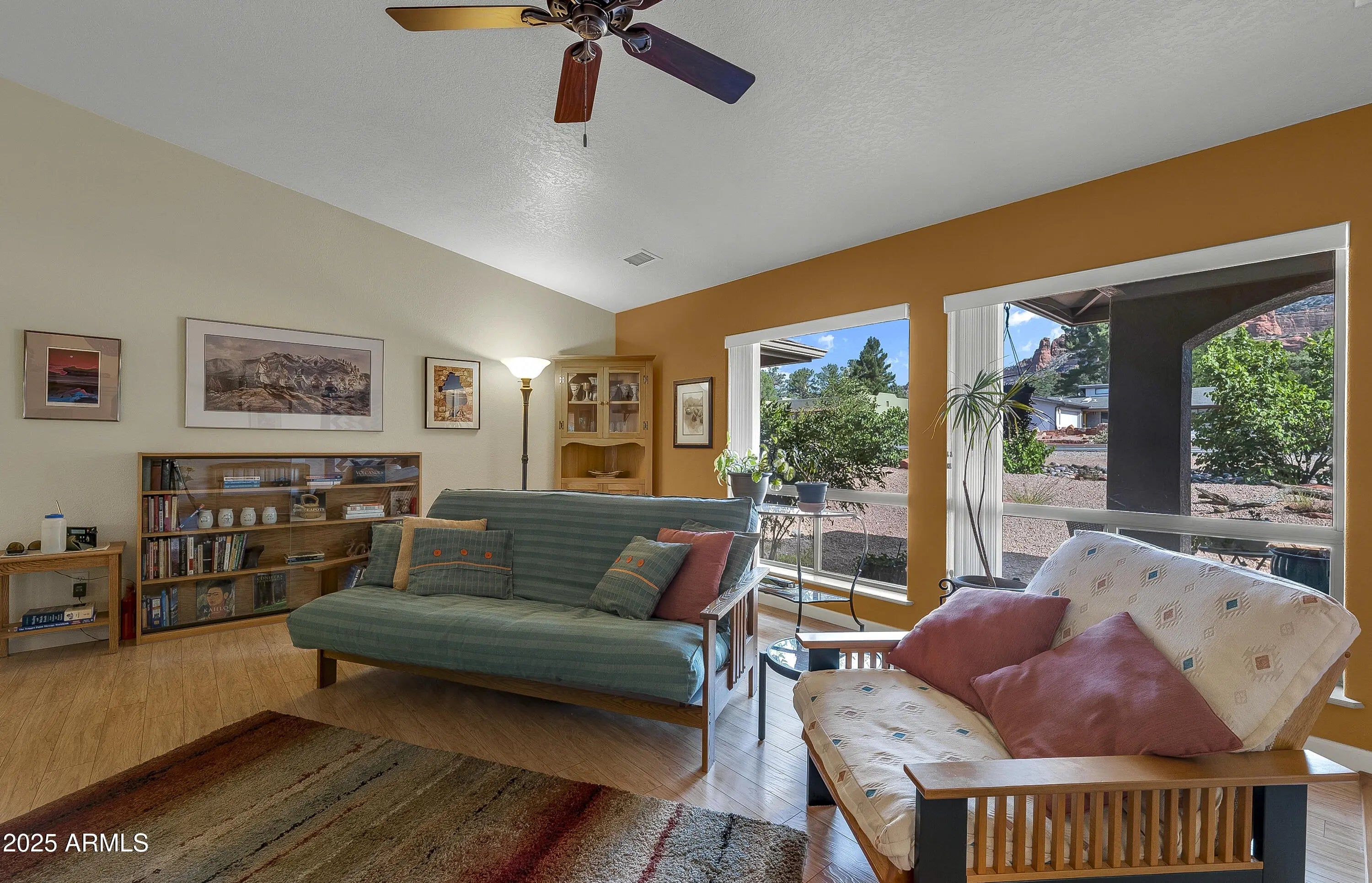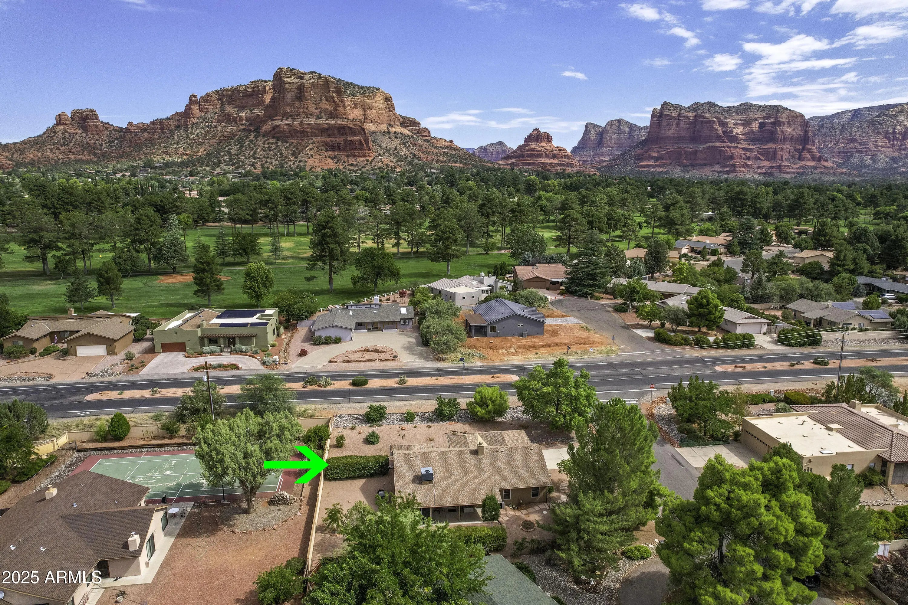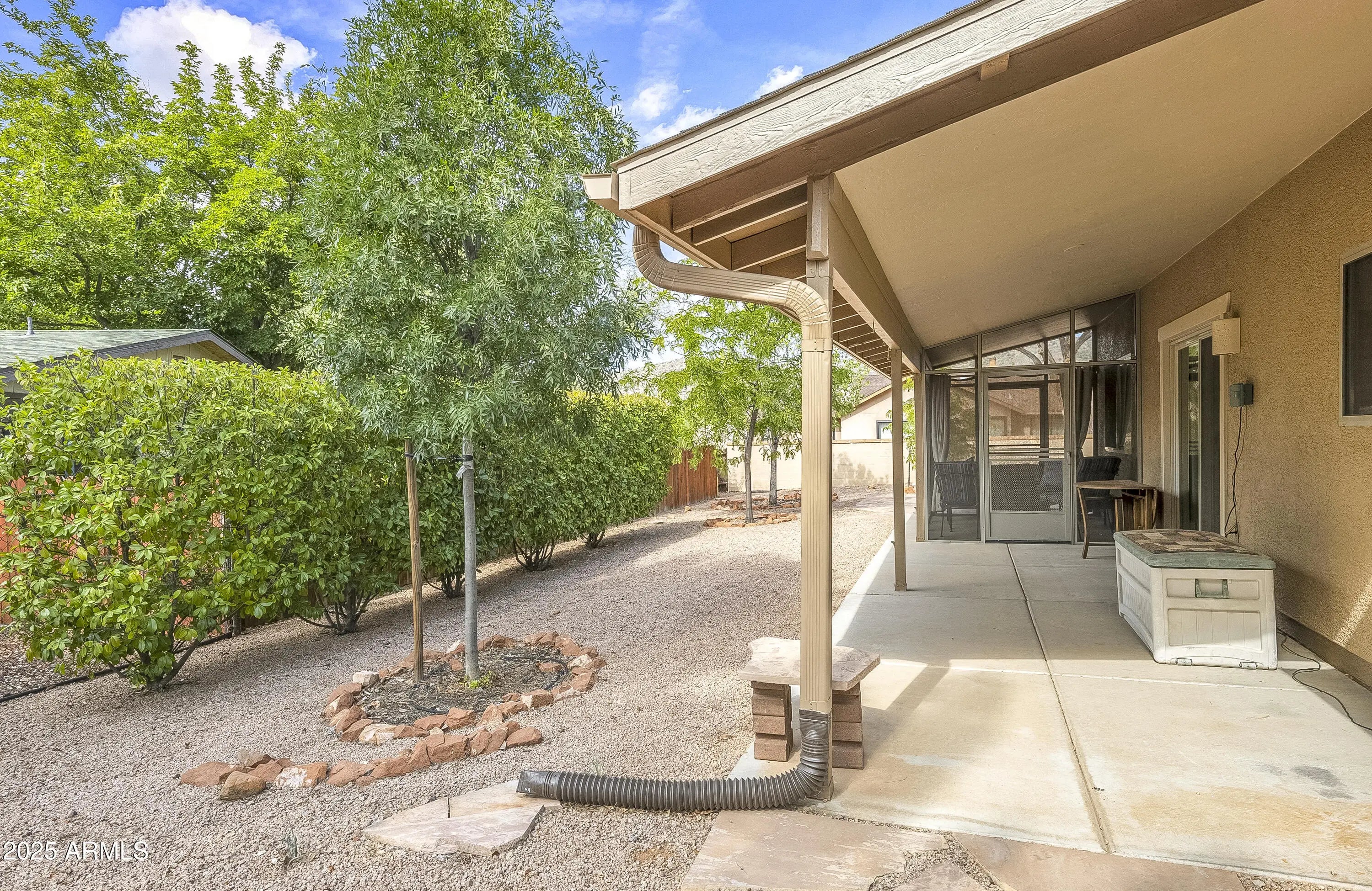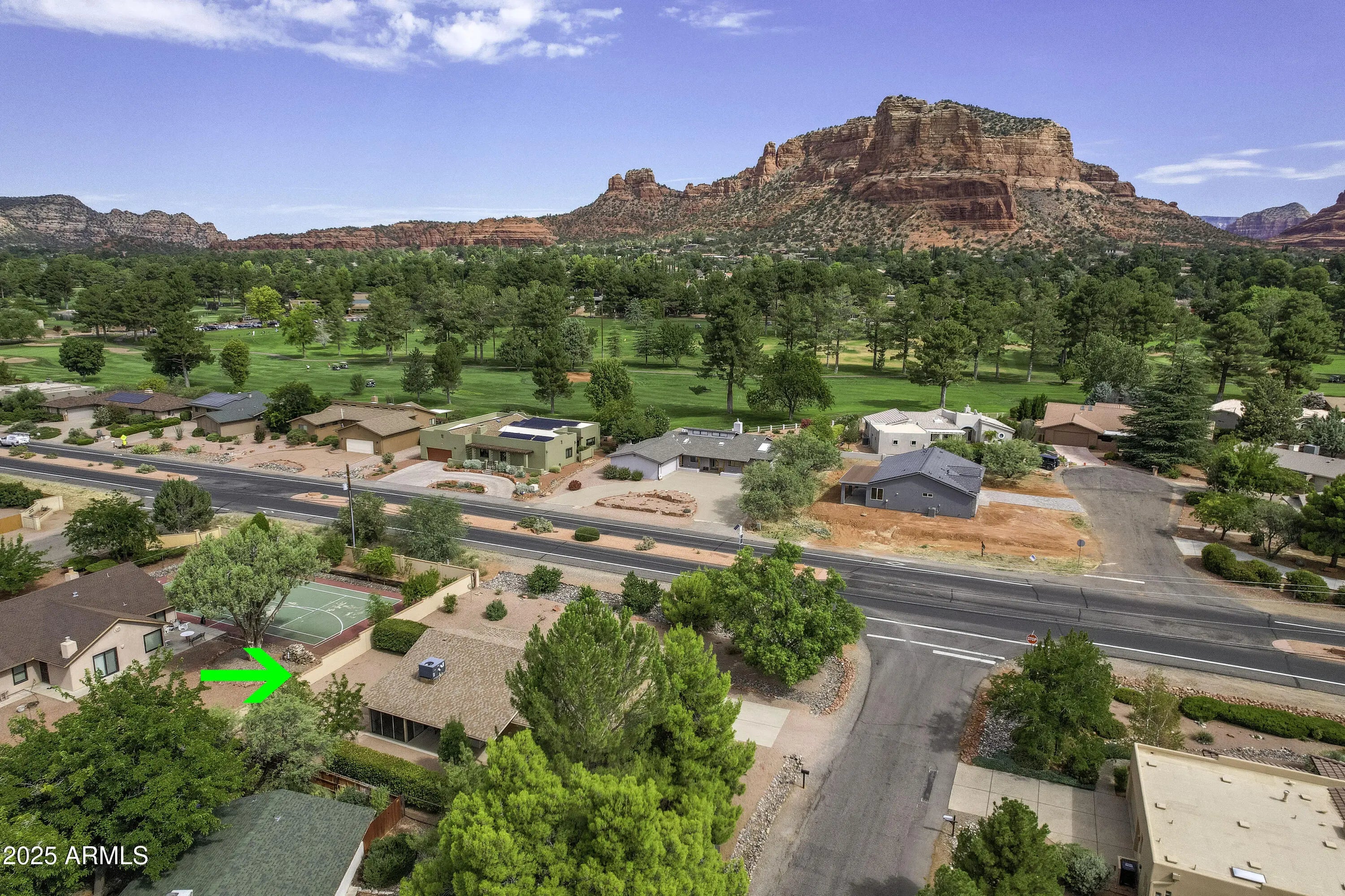 Located in the heart of Sedona's Village of Oak Creek, this charming single-level home offers stunning views of Castle Rock. Just a short 10 minute stroll to the post office and grocery store, convenience meets comfort in this well-maintained property. There are two golf courses in the neighborhood to choose from. Recent upgrades include a beautifully remodeled primary bathroom (2022), a new roof (2023), and a modern heating and electric cooling system (2022). The partially screened-in back porch is perfect for relaxing—and could easily be converted into a cozy ''Catio.'' Additional improvements include a freshly painted exterior, a new grinder pump for the sewer system (2025), and updated irrigation solenoid valves. This home is move-in ready and full of thoughtful touches throughout.
