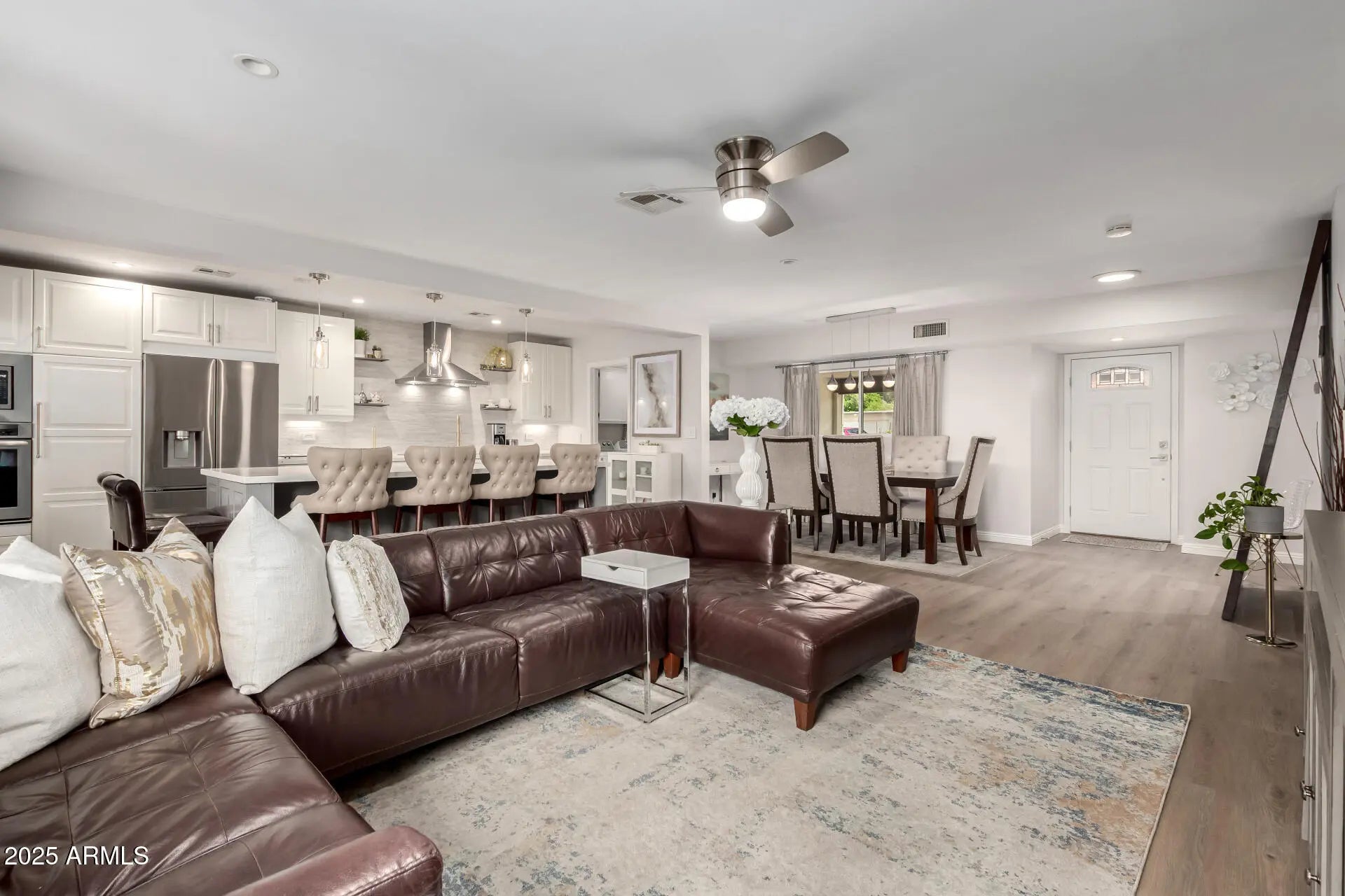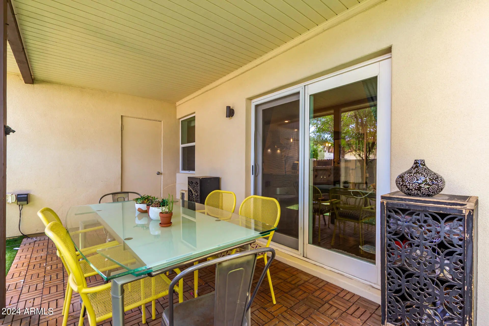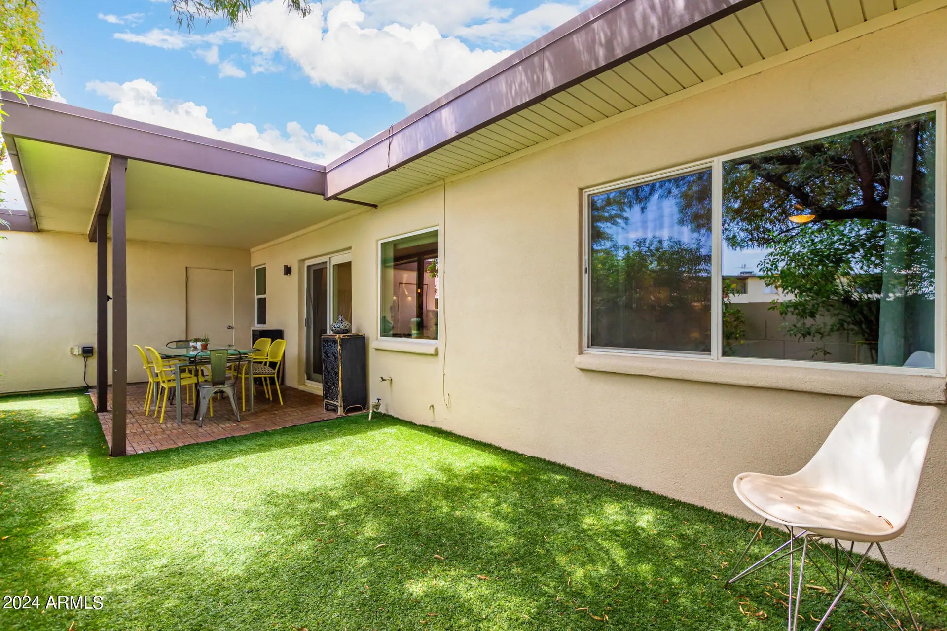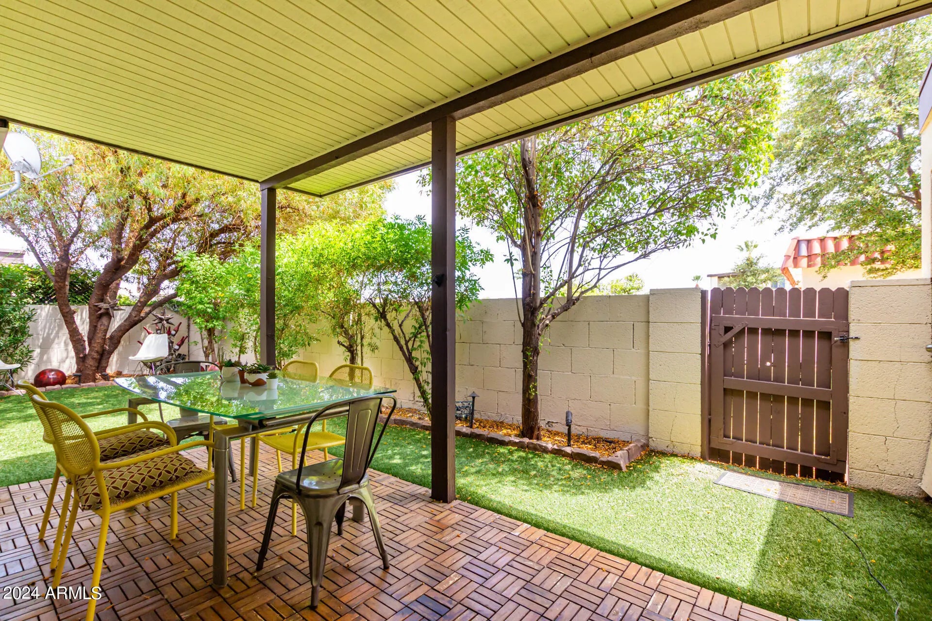 Welcome to this fully furnished rental home in Old Town Scottsdale! Walk or bike the canal to the heart of Old Town. With 2 beds, 2 baths, and 2 carport parking, Discover an inviting open floor plan that seamlessly connects the living area to the dining & gourmet kitchen, encouraging an effortless flow for everyday living and entertaining. The kitchen boasts quartz counters, designer backsplash, recessed & pendant lighting, island w/breakfast bar, and SS appliances w/cooktop elec & wall oven.Large master suite with king size bed & a full bathroom, the second bedroom feature queen size bed and gorgeous walk in shower. Enjoy the perfectly sized backyard offering a covered patio & artificial turf! Behind this gem is the Community pool & spa for year-round. Full Sized washer and dryer.