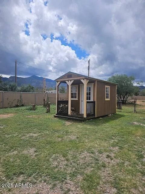 Large price reduction. Motivated Seller! 3 bedroom, 2 bath block home with living room and family room, or fourth bedroom or bonus room with fireplace and closet, you decide! Nice large utility room with plenty of space for storage or a freezer. Most of the windows have been replaced. Home is on a completely chain link fenced acre of Horse Property. A large portion (3 sides) of the chain link has privacy slats to enhance the seclusion. Also cross fenced with back yard and a potential horse area with a small horse shelter. Ceramic tile and laminate floors through out. AC and newer mini split. Multiple sheds for all your treasures! One would make a great tiny house. Just 5 minutes in to town.