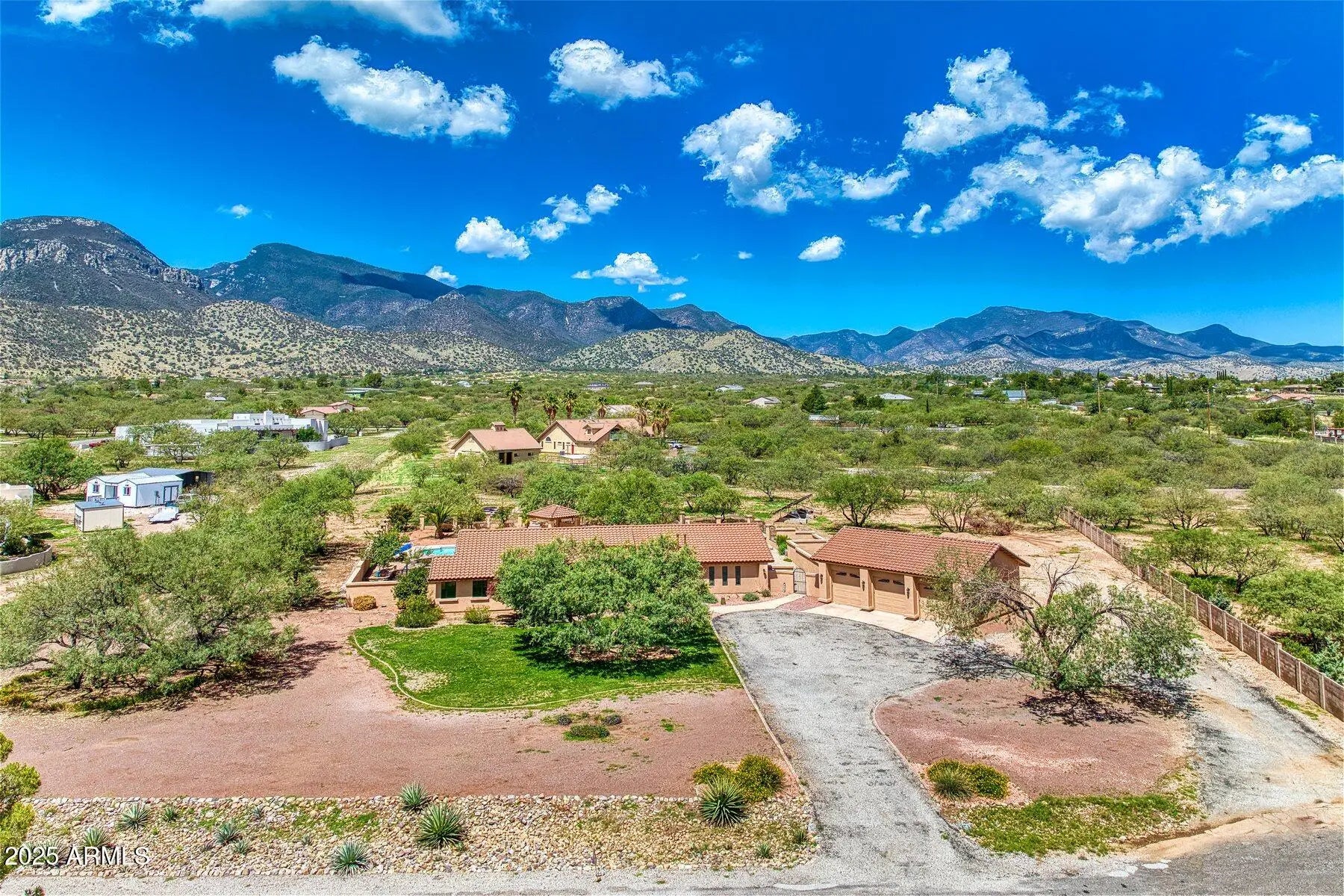 Experience luxury desert living in this beautifully crafted custom executive home on over two acres in the highly desirable Executive Estates, just minutes from the Ramsey Canyon Preserve. With incredible mountain views, breathtaking sunsets, and thoughtfully designed indoor-outdoor spaces, this home is a rare gem in Southern Arizona. The heart of the home features a dramatic 360-degree dining room, offering panoramic views and natural light from every angle—an architectural centerpiece perfect for intimate dinners or entertaining guests. The spacious family room boasts a stunning flagstone fireplace with variable-speed heatilator and opens to a massive, covered patio through a full wall of glass, creating a seamless transition to outdoor living. Step outside and enjoy your personal retreat: a 42x18 sport swimming pool with integrated spa, ozonator system, automatic solar heating, and a recently upgraded glass media filterperfect for relaxing, exercising, or entertaining year-round. The chef's kitchen is equipped with high-end features including a gas downdraft cooktop, KitchenAid appliances, an Electrolux refrigerator, new microwave, and soft-close cabinetry throughout. Whether you're preparing meals or hosting gatherings, this kitchen delivers performance and style. A 400 sq ft finished bonus room offers versatile living options perfect for a game room, studio, or home gym and includes a spacious indoor laundry area and large storage room. The primary suite offers a quiet sanctuary with a luxurious soaker tub, walk-in closet, and ample space for rest and relaxation. Every inch of the interior has been freshly painted, including ceilings, giving the home a crisp, modern feel. The exterior has also been professionally repainted with elastomeric paint, and all fencing metalwork has been refinished for long-lasting durability. Numerous upgrades and premium finishes enhance comfort and efficiency, including: " Marvin LOE-3 pultruded fiberglass windows for energy efficiency and UV protection " New Minka-Aire ceiling fans throughout " Master Lift garage door openers " New Franklin well pump " Owned solar system for reduced energy costs " Carrier heat pump, Bosch tankless water heater, and whole-home water softener This home is 100% move-in ready and ideal for those who value quality, privacy, and low-maintenance luxury in a scenic, tranquil setting. Plus, it offers a rare 3% assumable VA loan, making this an incredible opportunity for qualified buyers. Don't miss your chance to own this extraordinary home with unparalleled views, modern upgrades, and a location that offers the best of Southern Arizona living.