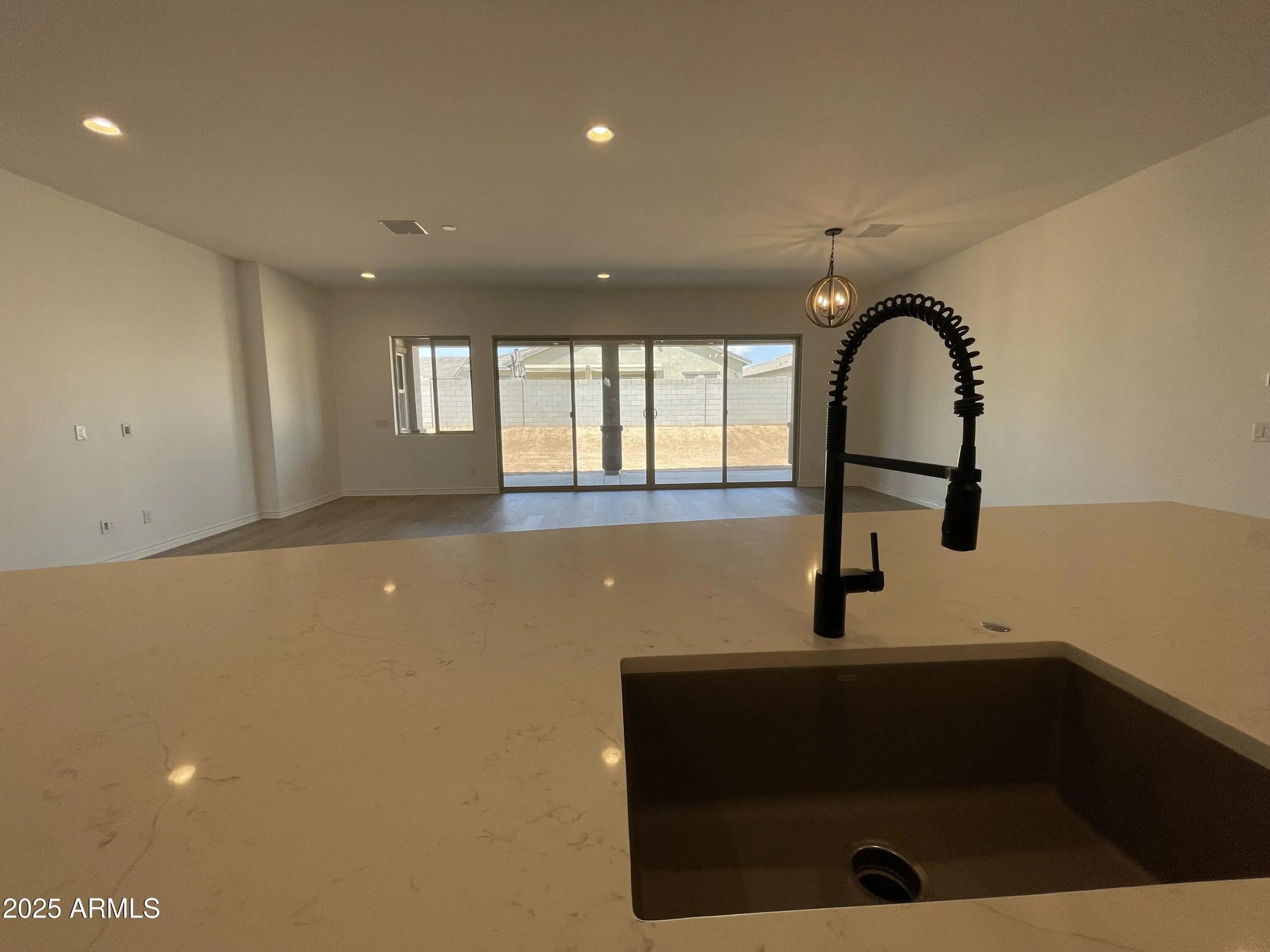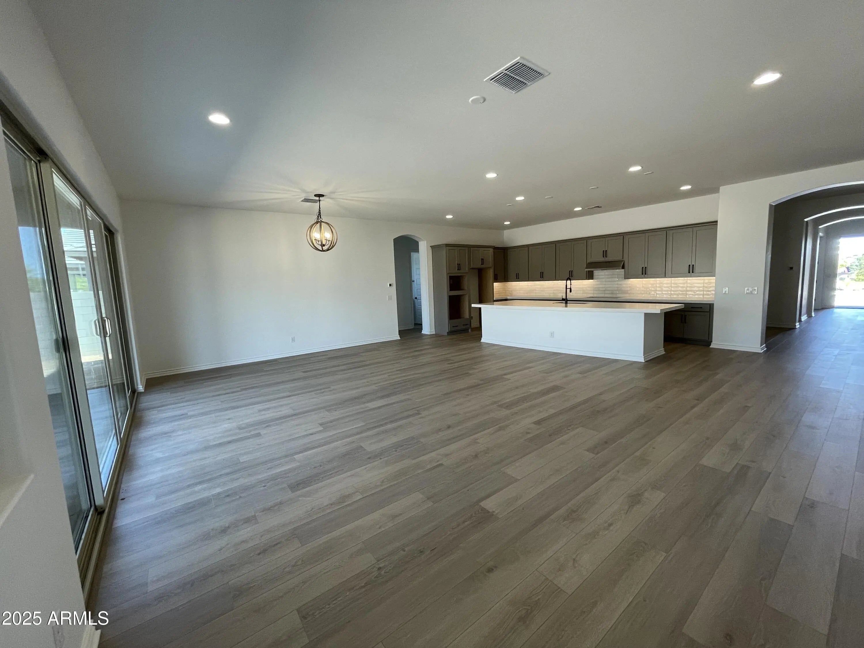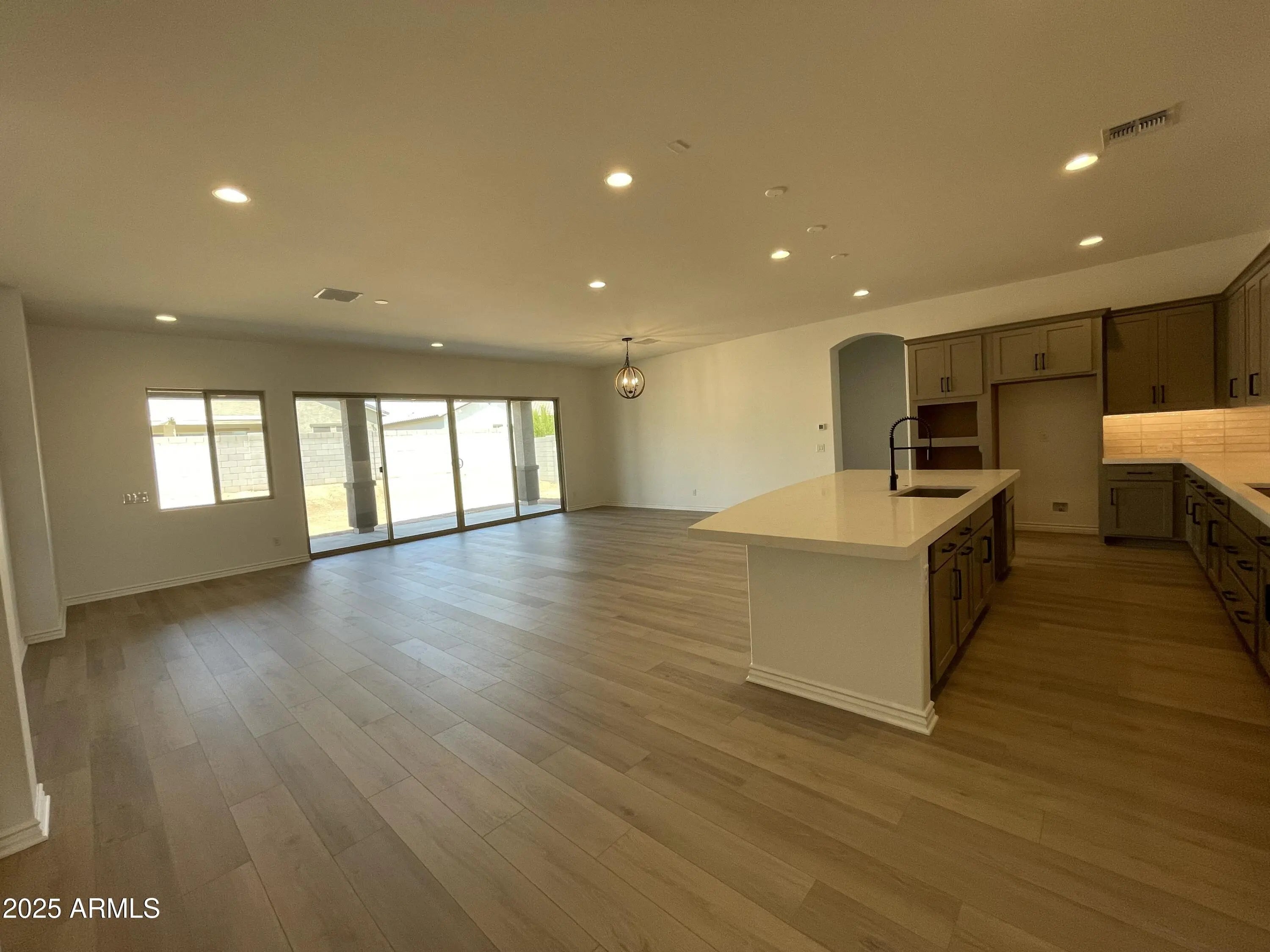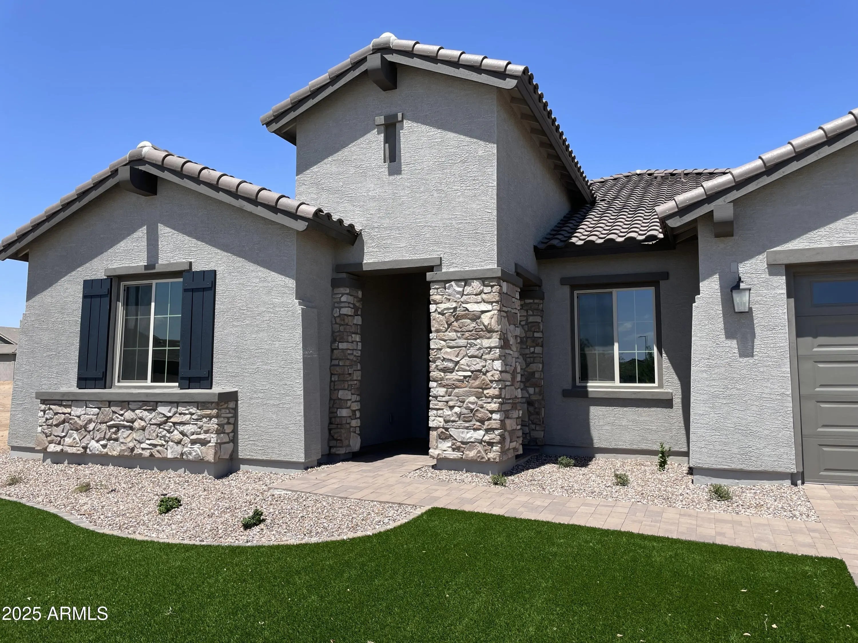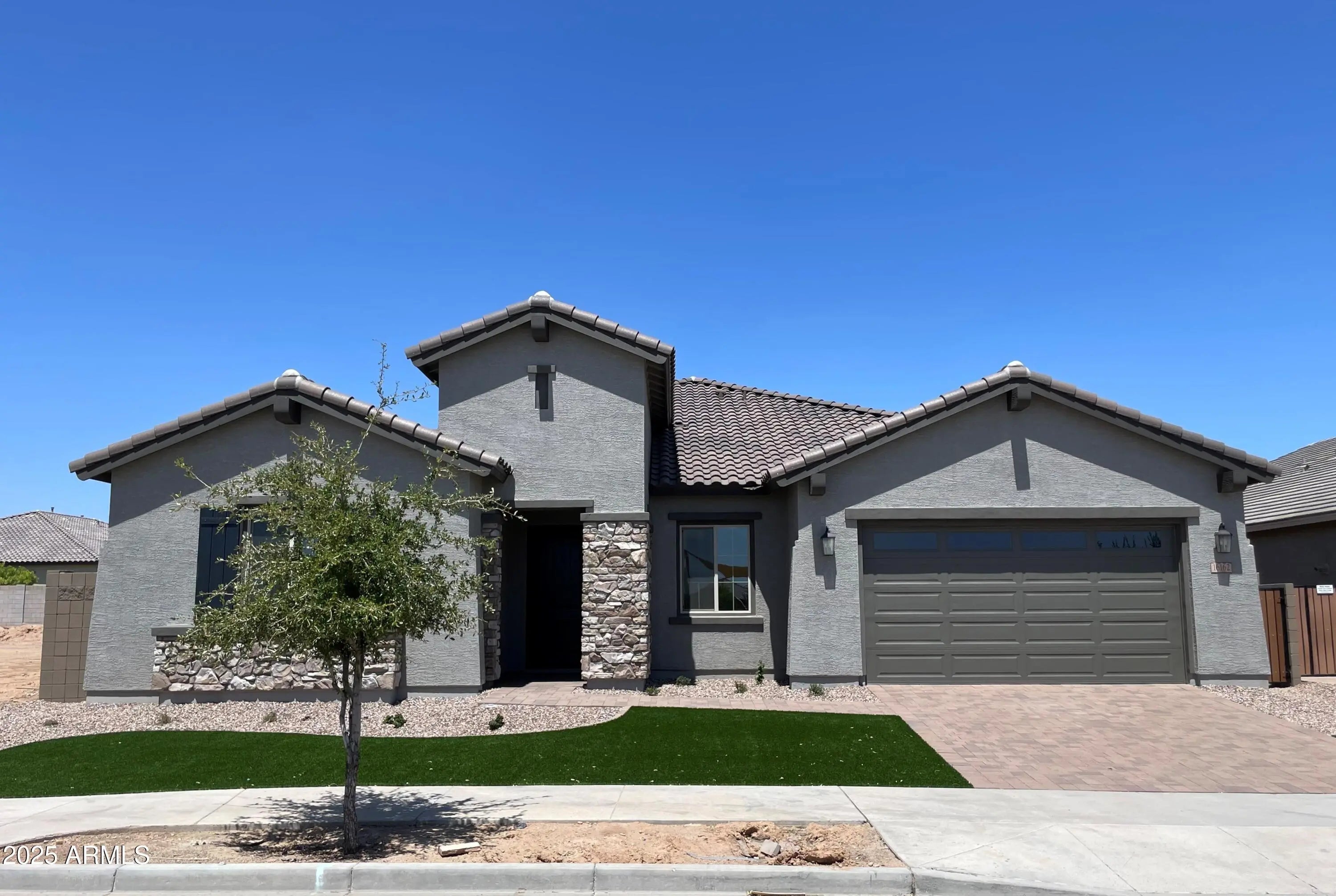 Completed Brand-New Home - Spacious Single Level, 3,130 SF! This stunning 5-bedroom plus den, 3.5-bath home with a 4-car garage is designed for both comfort and style. From the moment you enter, a wide, welcoming hallway leads you into the expansive, light-filled great room—ideal for gatherings or quiet evenings at home. The gourmet kitchen impresses with quartz countertops, a designer tile backsplash, under-cabinet lighting, and pendant light pre-wires, seamlessly flowing into the great room. A 16' atrium sliding glass door opens to the covered patio and backyard, extending your living space outdoors. The luxurious owner's suite features dual vanities with quartz countertops and an oversized spa shower. Throughout the home, you'll find 10-foot ceilings, 8-foot interior doors-- two-tone paint, ceiling fans, and window blinds already included. The 4-car tandem garage is EV-ready with a charging outlet and Wi-Fi-enabled opener. Additional highlights include paver driveway, coach lights, tankless gas water heater, soft water loop, and the front yard landscape is already in. Built with high energy standards in mind, this home is Energy Star Certified and Indoor AirPLUS rated, ensuring efficiency and air quality. Located in a vibrant master-planned community, you'll enjoy access to a resort-style aquatic center, pool and picnic areas, basketball and pickleball courts, bocce ball, tot lots, and more. Don't miss the chance to own a brand-new home that offers both luxury and lifestyle!