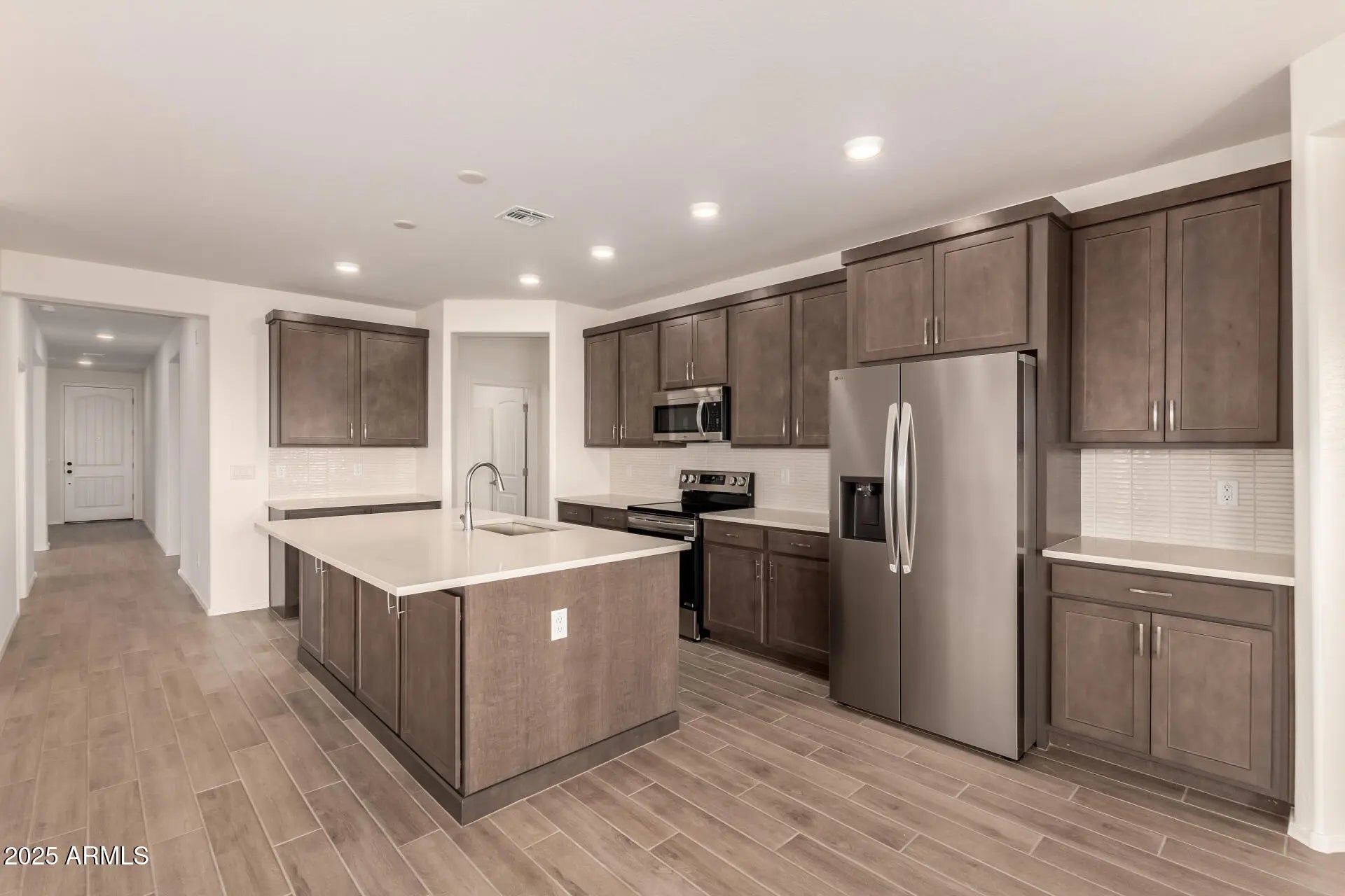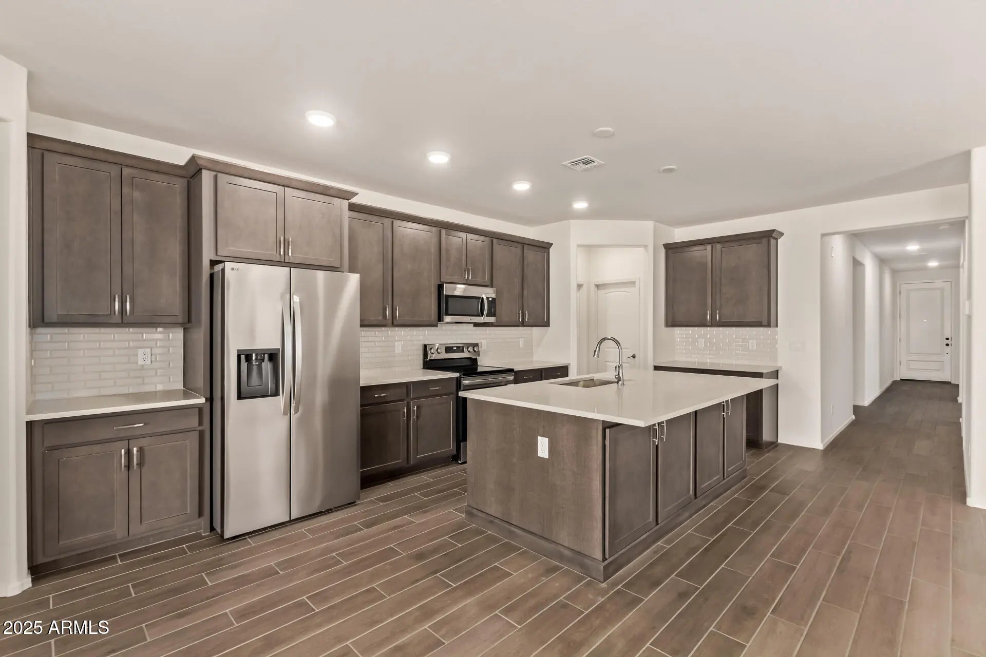 Move in Ready! Complete package! 1886sqft 3 Bedroom, 2.5 Baths & Flex Space. Discover open and spacious floor plans designed for modern living! Covered Patios - perfect for outdoor entertaining! Premium LG Appliances! 42'' Burlap Cabinets, Extended Island, Quartz Countertops & Tile Backsplash. Wood Plank Tile Flooring. Plus included White Washer & Dryer, Stainless Steel Refrigerator, Window Coverings and Front and Backyard landscaping!! All Single - Story Community! Oversized homesite lots of privacy!