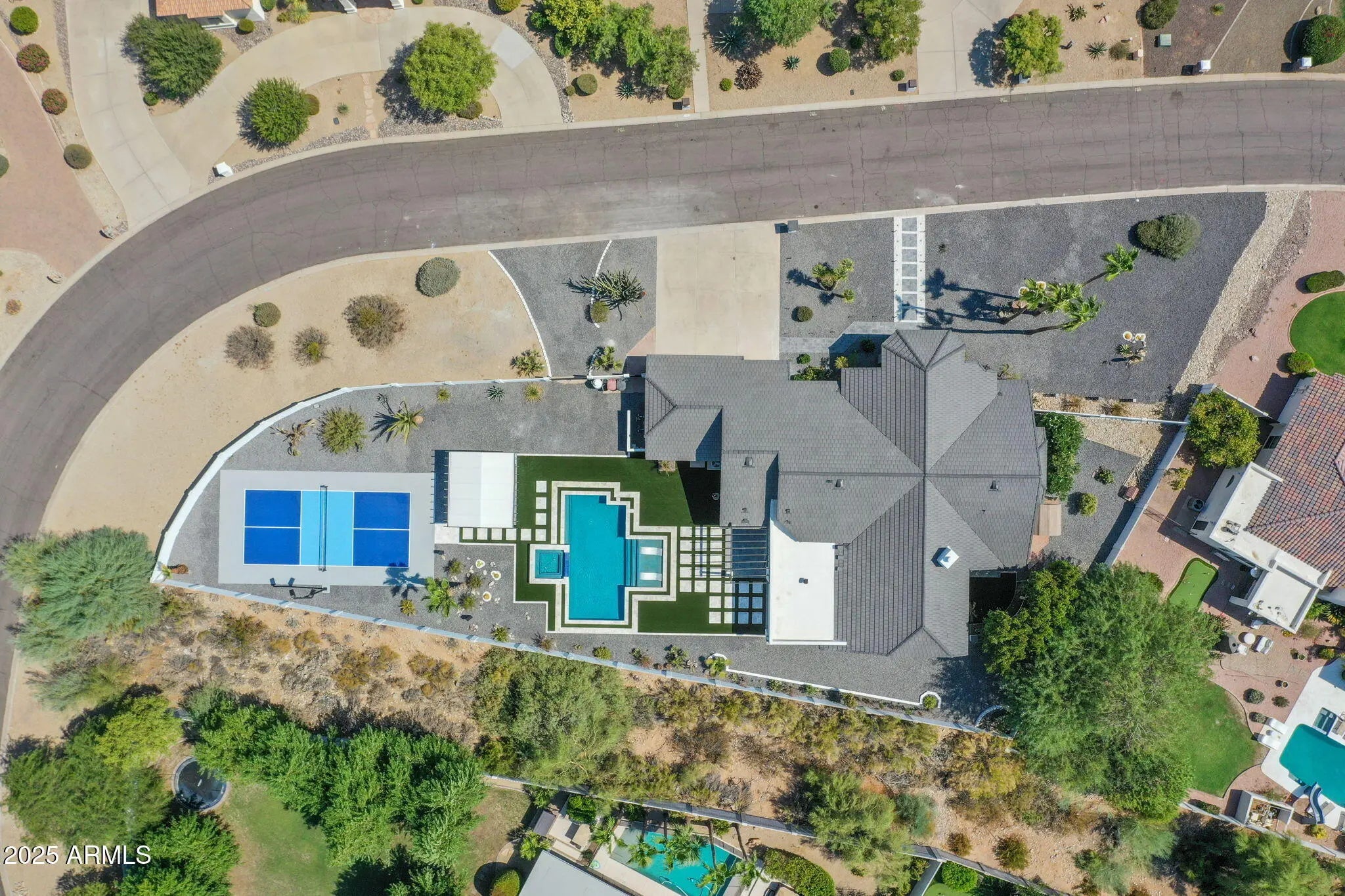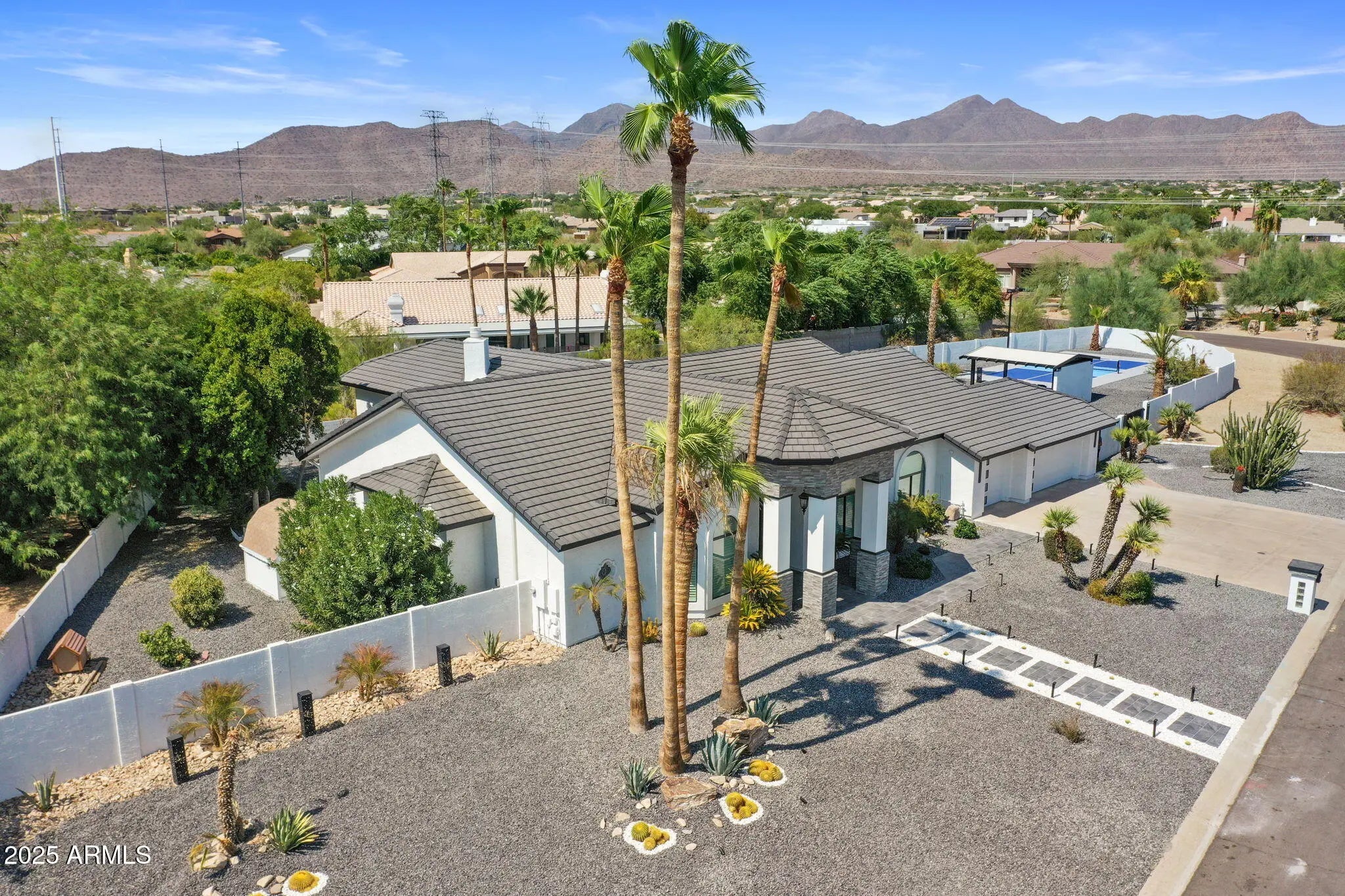 Welcome to your private Scottsdale retreat! This stunning Contemporary home, remodeled in 2025, sits on a spacious 3/4 acre lot, blending desert elegance with modern luxury. Inside, enjoy an open-concept layout with luxury cabinetry, premium countertops, and modern appliances—ideal for daily living and entertaining. The kitchen seamlessly connects to the family room, filled with natural light. The home features four spacious bedrooms and a large master suite. Outside, experience resort-style living with a heated Pebble-Tec pool and spa, Ramada, private pickleball court, and a vast backyard for relaxation and fun. Conveniently located minutes from the AZ-101, you're near Scottsdale's best shopping, dining, and entertainment.