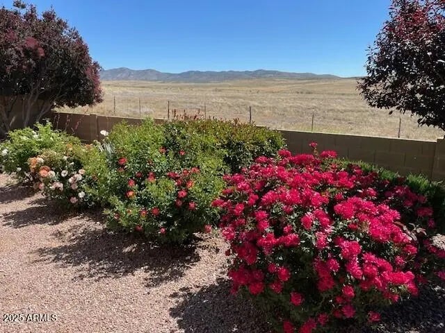 Endless panoramic views across the countryside and hills complement this highly upgraded immaculately maintained home. A formal entry way opens to an open design great room concept with a dedicated formal dining room. Beautiful easy care and durable porcelain tile floors throughout. The solid surface countertop kitchen with lower pull-out cabinets includes built-in GE stainless-steel wall oven and microwave along with a gas cooktop. The island breakfast bar provides a nice buffer to the great room. The split bedroom design provides excellent privacy for all; use your imagination on using the middle den, which could be converted to a third bedroom. The primary bathroom includes a soaking tub, walk-in shower, dual vanities, water closet, and custom shelving in the walk-in closet. One of the favorite features of this design is the Smart Space room that provides a large walk-in pantry, lots of cabinet/granite countertop space, and a laundry sink next to the washer/dryer. The formal dining room has a glass door for grill-to-table meals on the large covered patio or enjoy your meal on the patio watching the cattle graze and an occasional herd of pronghorn. A fully landscaped front and rear yards are designed for beauty as well as minimal maintenance. The Quailwood Community Center provides a great place to meet your neighbors or take advantage of the, fitness center, banquet room, sauna, pool & spa, men's and women's locker rooms, bocce ball & horseshoe courts, tennis & pickleball court's, basketball court, outdoor patio with BBQ, great room, and computer for resident use.