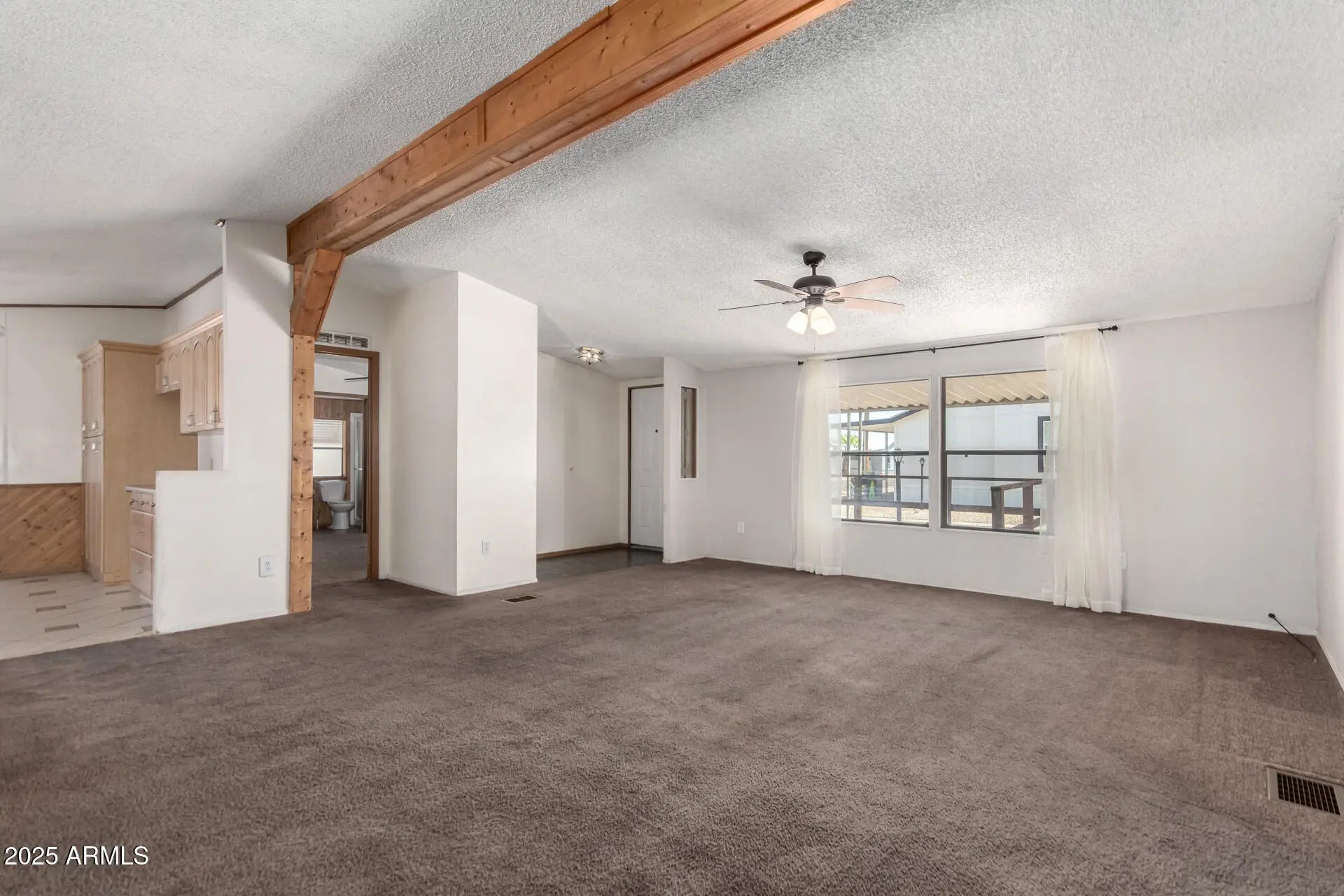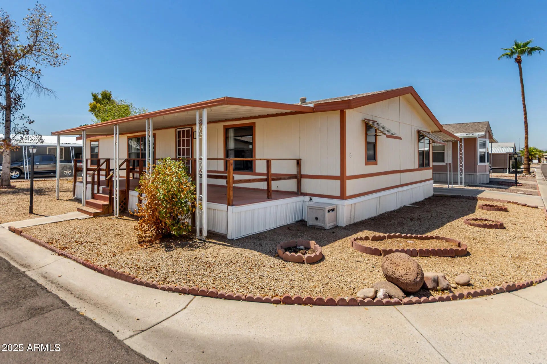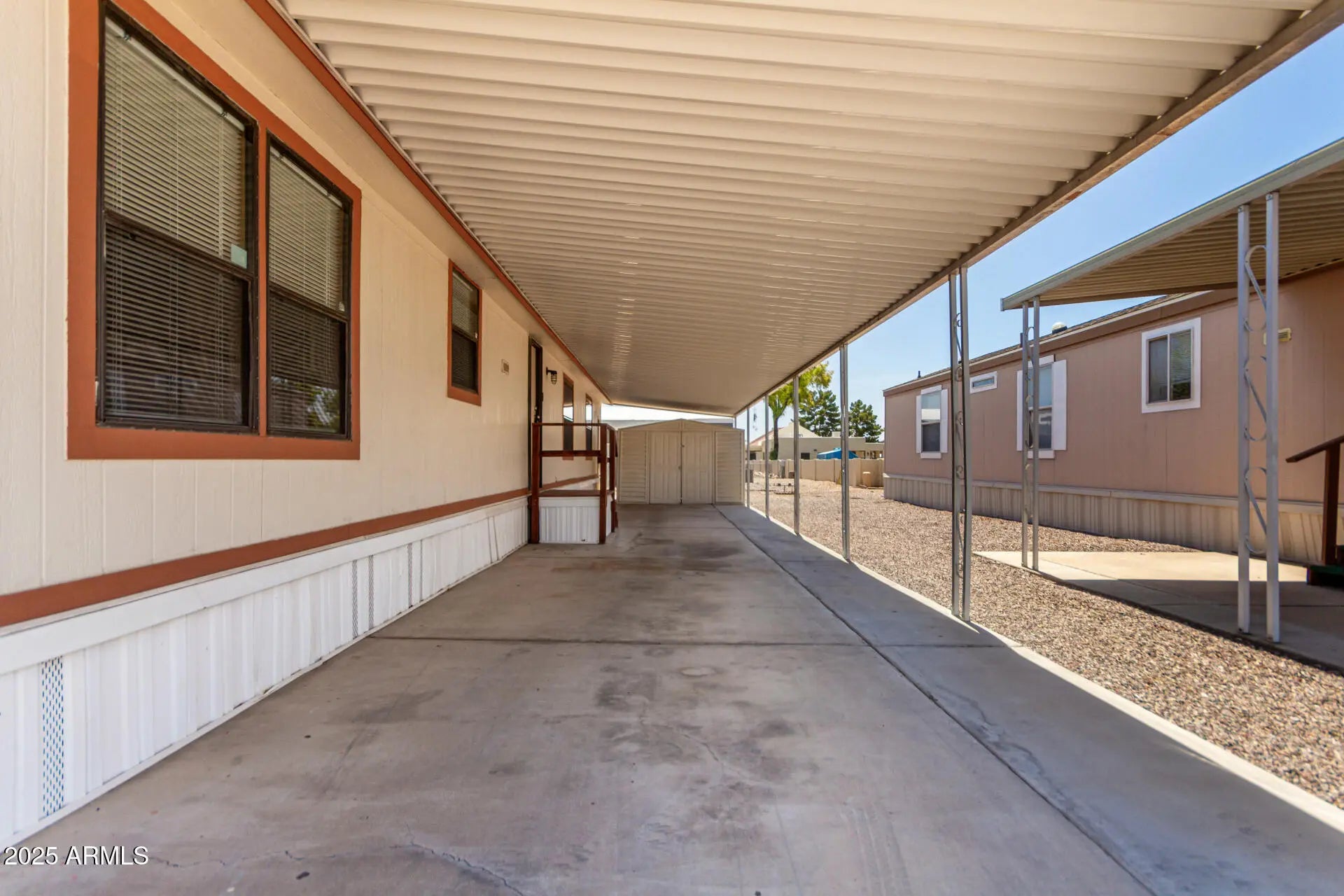 MOTIVATED SELLER! Welcoming 3 bed, 2 bath MF home situated on a spacious corner lot in a desirable all-ages community. The interior features a great room layout with vaulted ceilings, a striking center wood beam and a dedicated dining area. The kitchen offers abundant cabinetry, skylights and a cozy eat-in space, while the adjacent laundry room includes exterior access to an extended 2-car carport and a separate storage shed. The spacious primary suite includes an ensuite bathroom and a generous walk-in closet, offering comfort and privacy. Community amenities include a year-round heated pool, clubhouse with billiard room, fully equipped exercise facility and 4 doggie stations with benches for pet-friendly convenience. This property offers comfort, lifestyle and accessibility all in one.
