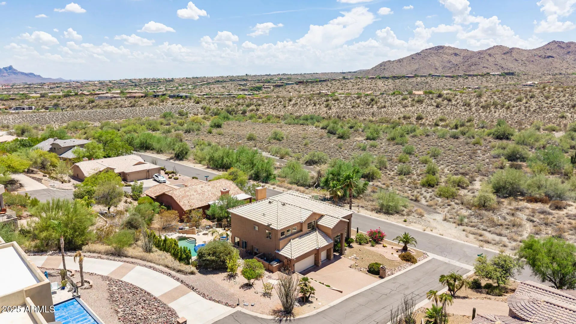 This is the one! Be surrounded by breathtaking Views from every room!! Enjoy this re-modeled home, offering 4 bedrooms plus loft, 1 full bed and bath Downstairs, plus a 3-car garage. Discover the style and comfort of the interior, featuring wood-look tile, high vaulted ceilings, plenty of natural light & cozy fireplace. The re-modeled kitchen showcases shaker cabinets, tile backsplash, granite countertops, an island, and stainless steel appliances. The spacious main retreat has a walk-in closet, double sinks, shower/tub combo and balcony access. Soak in the views on the balcony or enjoy your morning coffee under the covered patio. Relax in your amazing pool or spa all year long! Close to 5-star restaurants, shopping, hiking trails, Scottsdale and airport. Amazing home and value!! an area with travertine pavers, plenty of sitting space for enjoying the breathtaking mountain views, a spa, and a sparkling pool ideal for unwinding. This gem is an entertainer's dream! You don't want to miss it!