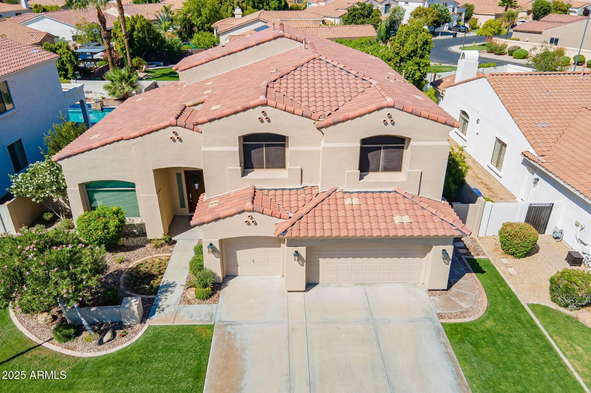 Your next beautiful home is right here in LAGUNA COVE, a gated Ocotillo community in Chandler. This TW Lewis property with its new interior and exterior paint and an inviting entrance with high ceiling welcomes you. Here is a move-in ready house in remarkable condition with 5 bedrooms, 3 bathrooms designed in a well thought-out 3,690 sq ft floor plan. Walk through the living and dining room to an open, bright, and airy kitchen nicely furnished with new built-in Kitchen Aid double oven, new dishwasher, and lots of cabinet space. Its large granite kitchen island works perfectly for generous entertaining and as a breakfast bar. While working in the kitchen, you can look out to the serene backyard yet be in the company of friends and family in the cozy breakfast nook and roomy family area. The charming backyard enjoys added privacy from all single-level homes surrounding its back. Mature tree, sparkling Pebble-Tec pool and citrus trees along the side yard simply bring on a cool and relaxing atmosphere while you rest in the spacious covered-patio and enjoy home-grown citrus fruits/drinks. This spacious first level also has a conveniently positioned bedroom which can be an office or guest room, and a bathroom. The laundry room leads you to the three-car garage. All in a well-flow layout. The second level finds the large master bedroom with its spacious master bathroom. All other three sizable bedrooms and newly renovated bathroom are designed for the comfort of the entire family. The loft overlooking the main entrance could be your gaming area, reading corner or elliptical/yoga area. This beautiful move-in-ready home is within the vicinity of award-winning schools, fulfilling shopping, delectable dining, lively entertainment, and rewarding and healthy lifestyle at Village Health Club, golf club and the likes. Be sure not to miss out on this elegantly designed house. Make it your next cheerful and loving home. 2025 - NEW CEILING FANS FOR PATIO & MASTER BEDROOM; 2024 - NEW EXTERIOR & INTERIOR PAINT; NEW TRANE DOWNSTAIRS AC ; NEW DOUBLE OVEN AND DISHWASHER; 2022 - NEW UNDERLAYMENT FOR ROOF ; 2020 - NEW UPSTAIR HALL BATH.