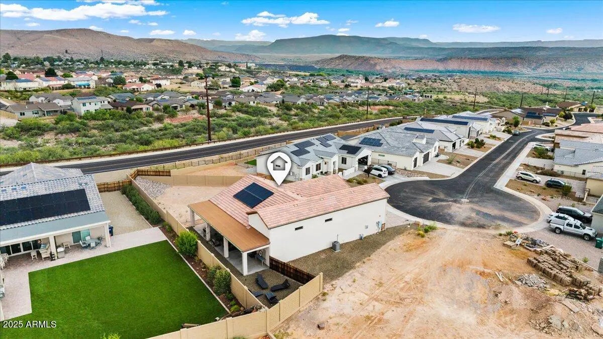 Price Reduced for Quick Sale! Explore this stunning home with panoramic views and modern upgrades. Massive 57-foot RV garage—ideal for an RV, workshop, studio, or entertainment space. Energy Star Certified + Move In Ready! In desirable Mountain Gate, with over $200,000 in timeless upgrades and OWNED SOLAR. A remarkable HERS rating of 24, providing sustainability and utility savings! Interior features include wood grained tile throughout, under-cabinet lighting, and high-quality fixtures, with floating shelves, premium appliances, and a walk-in pantry. The primary bedroom boasts a custom shower, dual vanities, and walk-in closet. Room for all the vehicles with a 2 car PLUS 57' RV garage, and of course, hookups and dump for the RV. Explore the addition of a casita in the RV Garage