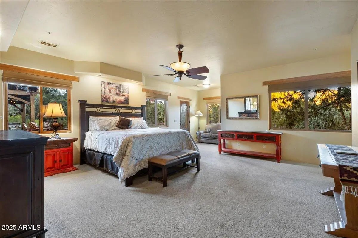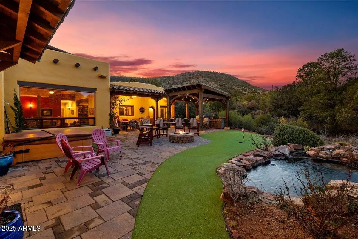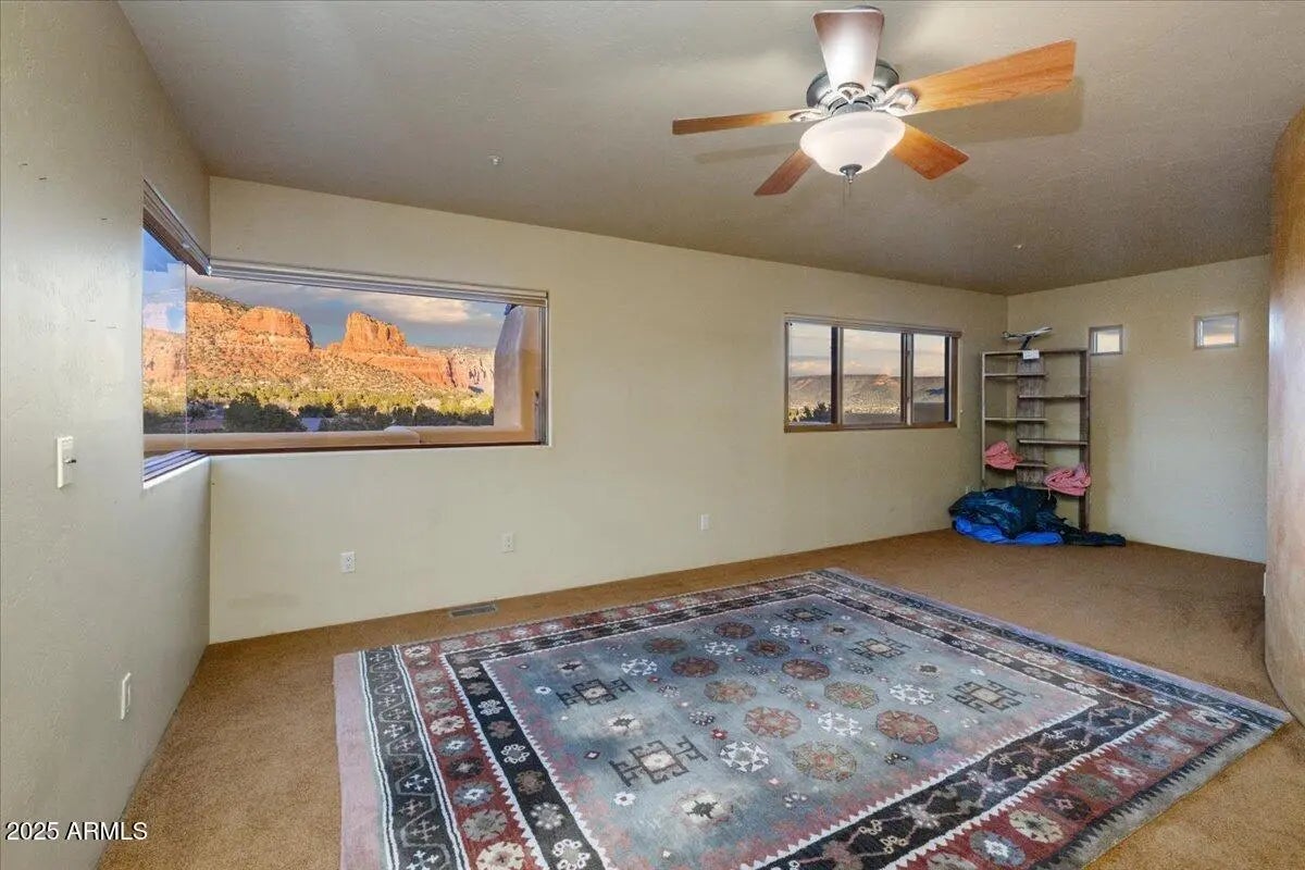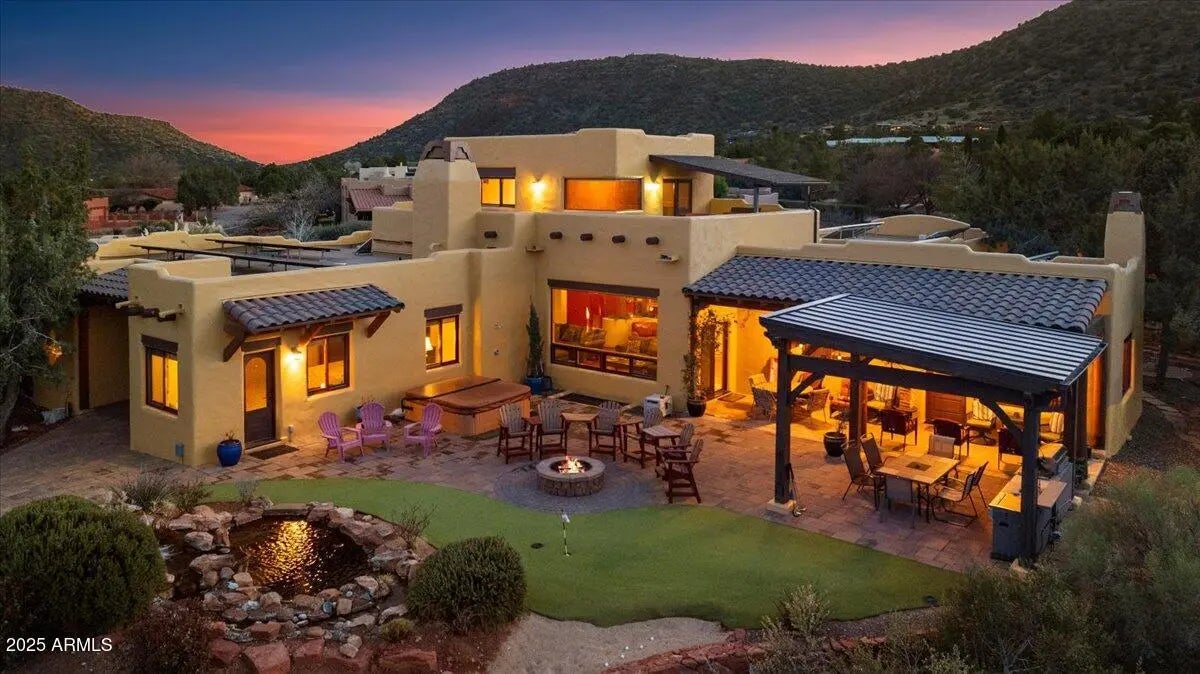 Step into the magic that Sedona offers with this one-of-a-kind Southwest retreat in the sought-after Sun Up Ranch community (No HOA). Whether you're looking for a high-performing short-term rental or a luxurious private residence, this home offers it all. This home features 4 bedrooms + office (currently used as 5th bedroom), a game room/theater, a versatile loft with HUGE red rock views, and a back yard loaded with amenities (see below for details). There is also a detached casita (bedroom 6) with private entrance, bathroom, kitchenette & two separate garages accommodating 4 cars total. WOW! Projected revenue on this property is +$300,000/year (ask for proforma). Owner may carry a loan for qualified buyers with substantial down payment—ask for details. Welcome to 70 Via Del Viento, a spectacular estate with phenomenal vacation rental potential. This 0.84 acre property is perfectly situated to capture HUGE red rock views. The home has the ability to sleep 16+ people and provide additional entertaining areas packed full of amenities (see below!). The house was meticulously designed and built as a custom home for a large family, pride of ownership is abundant. Inside, you'll find Florentine tile, Australian cypress wood floors, solid wood arched doors, and four fireplaces that add warmth and character. The chef's kitchen is built to impress, with a kiva fireplace, granite countertops, double ovens, walk-in pantry, and seating for up to 14 people. Step outside and experience true Sedona living. The upper deck offers a cozy outdoor fireplace with breathtaking sunrise and sunset views, while the lower-level patio is an entertainer's paradise, complete with a firepit, outdoor kitchen, hot tub, waterfall and pond, putting green, and game areas. The panoramic red rock views here don't get better than this! And yes! There is also room to add a pool (ask for pool sketch and estimate). Built for efficiency and durability, the home features 10-inch Perform Block walls that provide an astounding R60+ insulation value, as well as offering being fireproof, earthquake-proof, termite-proof, owned solar panels, and a brand-new composite foam roof (installed Aug 2024 with a 10-year warranty, $28K value). The exterior of the home has been recently painted. With a 4-car garage (2 attached, 2 detached with a workshop) and plenty of storage, there's space for all your needs or room for added amenities (indoor golf simulator, additional game room... let your imagination run wild!). This turnkey property comes fully furnished (minus a few personal exclusions), making it an effortless investment or move-in-ready dream home. This is more than just a homeit's a lifestyle, an investment, and a rare opportunity to own a piece of Sedona's magic.