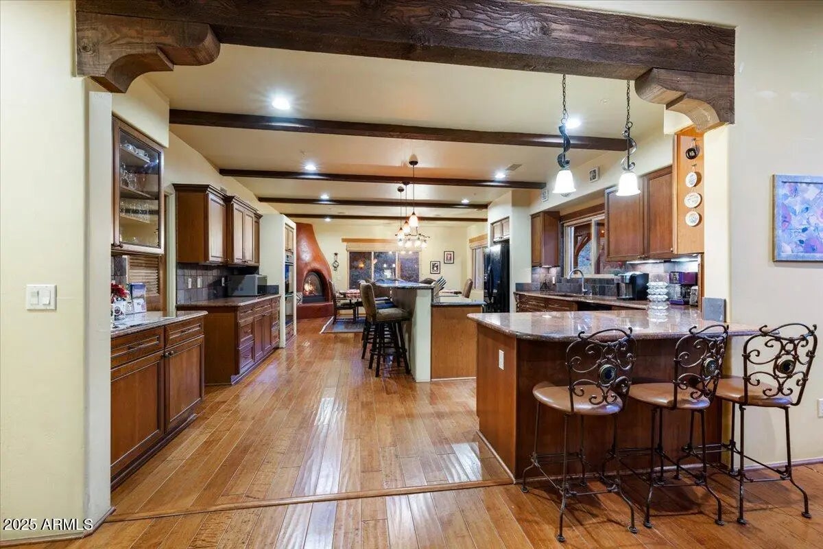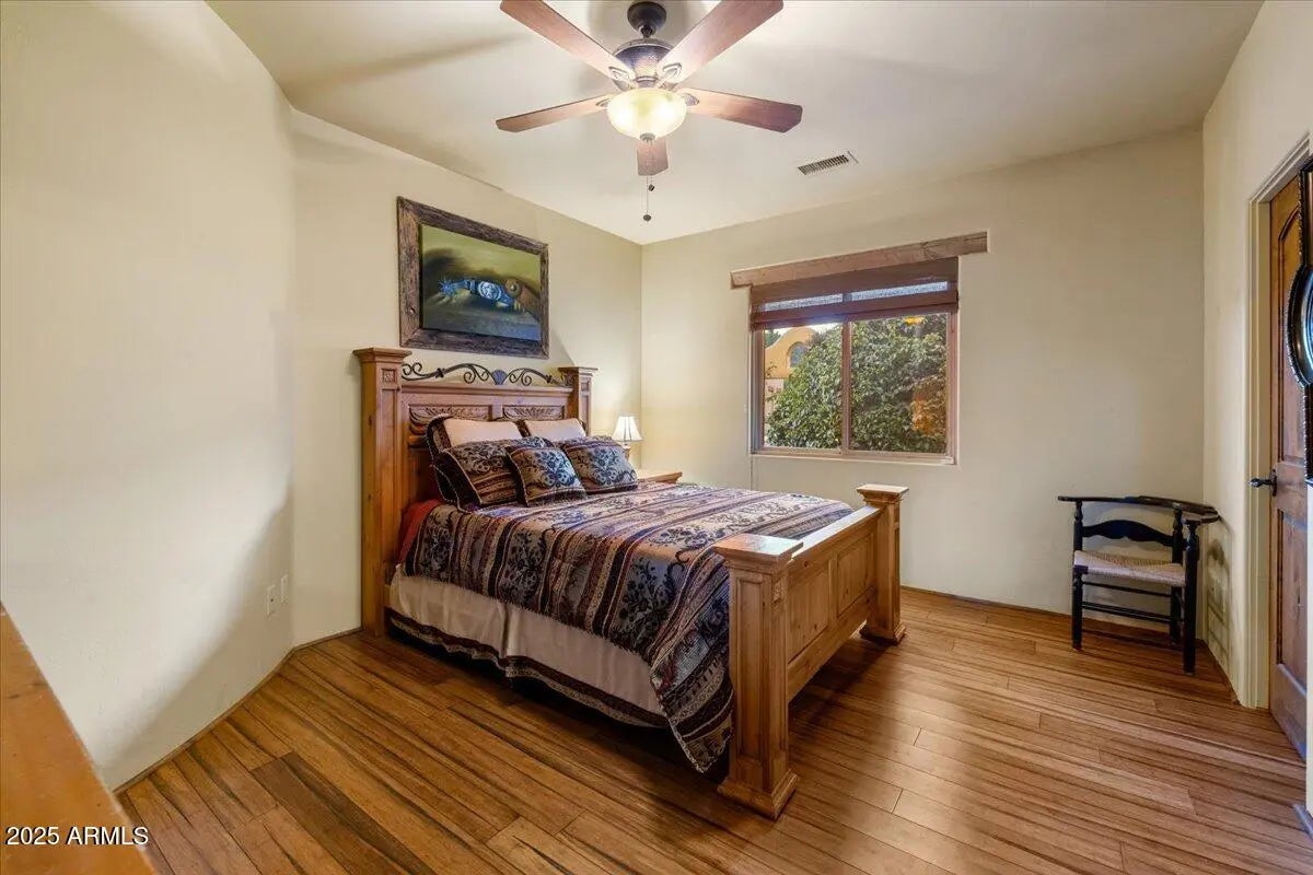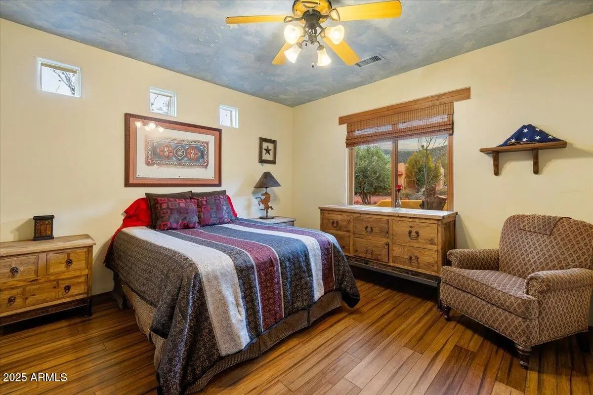 Step into the magic that Sedona offers with this one-of-a-kind Southwest retreat in the sought-after Sun Up Ranch community (No HOA). Whether you're looking for a high-performing short-term rental or a luxurious private residence, this home offers it all. This home features 4 bedrooms + office (currently used as 5th bedroom), a game room/theater, a versatile loft with HUGE red rock views, and a back yard loaded with amenities (see below for details). There is also a detached casita (bedroom 6) with private entrance, bathroom, kitchenette & two separate garages accommodating 4 cars total. WOW! Projected revenue on this property is +$300,000/year (ask for proforma). Owner may carry a loan for qualified buyers with substantial down payment—ask for details. Welcome to 70 Via Del Viento, a spectacular estate with phenomenal vacation rental potential. This 0.84 acre property is perfectly situated to capture HUGE red rock views. The home has the ability to sleep 16+ people and provide additional entertaining areas packed full of amenities (see below!). The house was meticulously designed and built as a custom home for a large family, pride of ownership is abundant. Inside, you'll find Florentine tile, Australian cypress wood floors, solid wood arched doors, and four fireplaces that add warmth and character. The chef's kitchen is built to impress, with a kiva fireplace, granite countertops, double ovens, walk-in pantry, and seating for up to 14 people. Step outside and experience true Sedona living. The upper deck offers a cozy outdoor fireplace with breathtaking sunrise and sunset views, while the lower-level patio is an entertainer's paradise, complete with a firepit, outdoor kitchen, hot tub, waterfall and pond, putting green, and game areas. The panoramic red rock views here don't get better than this! And yes! There is also room to add a pool (ask for pool sketch and estimate). Built for efficiency and durability, the home features 10-inch Perform Block walls that provide an astounding R60+ insulation value, as well as offering being fireproof, earthquake-proof, termite-proof, owned solar panels, and a brand-new composite foam roof (installed Aug 2024 with a 10-year warranty, $28K value). The exterior of the home has been recently painted. With a 4-car garage (2 attached, 2 detached with a workshop) and plenty of storage, there's space for all your needs or room for added amenities (indoor golf simulator, additional game room... let your imagination run wild!). This turnkey property comes fully furnished (minus a few personal exclusions), making it an effortless investment or move-in-ready dream home. This is more than just a homeit's a lifestyle, an investment, and a rare opportunity to own a piece of Sedona's magic.