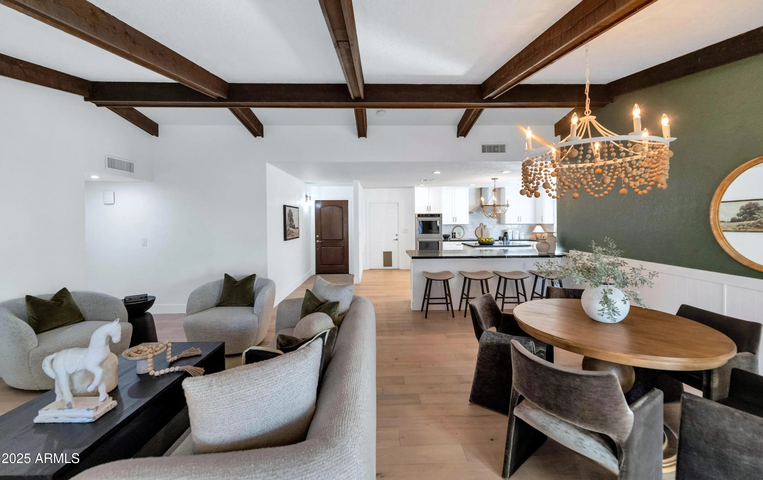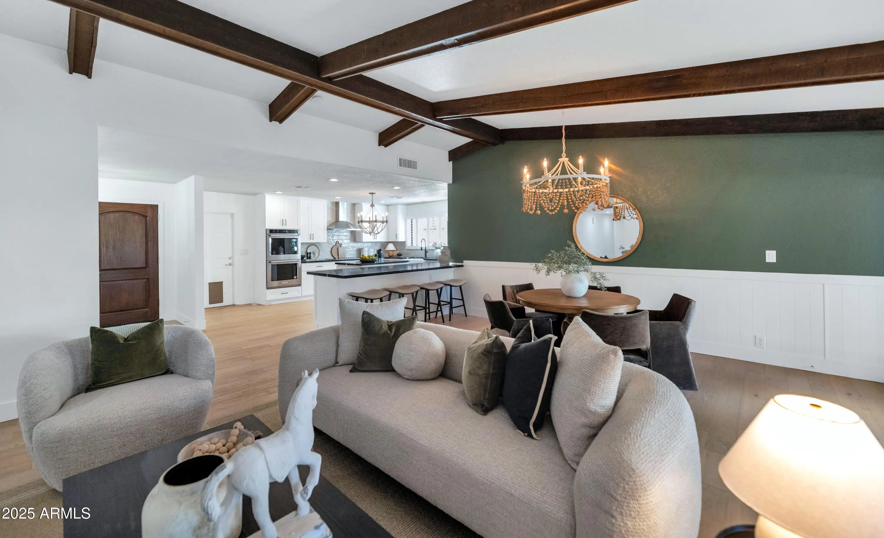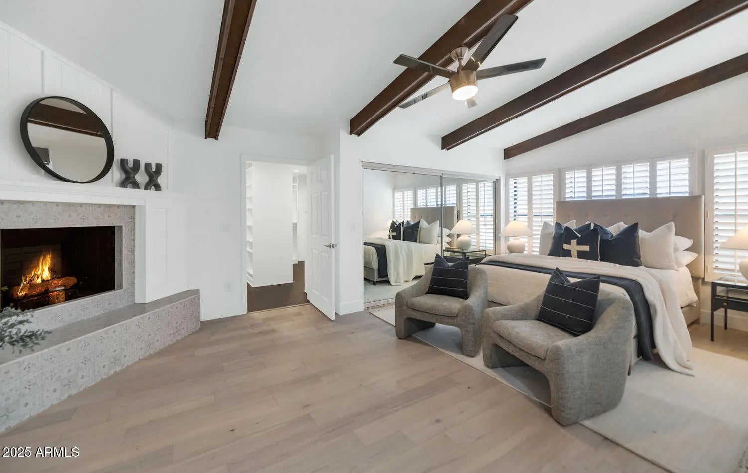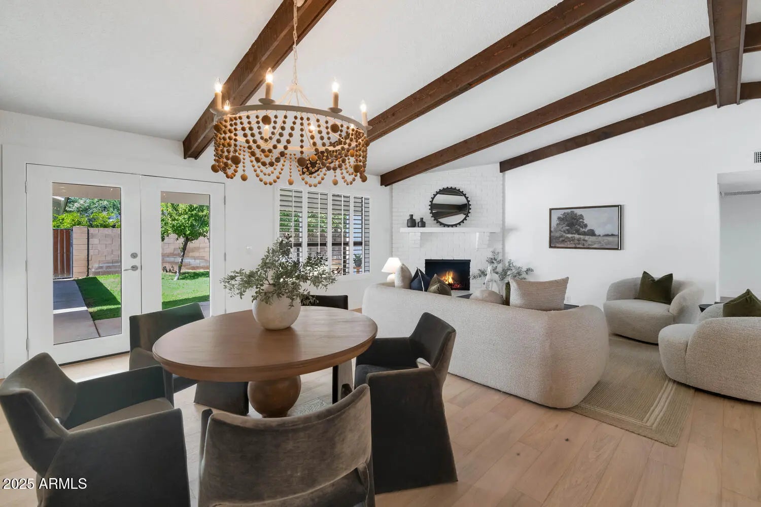 If you think you've seen this house, it's time for another look! With three FULL bedrooms it's perfect for first-time buyers or those looking to downsize. This beautifully remodeled home blends style, comfort, convenience, and garage space with room for ALL your toys! See how this space best works for you! The light-filled island kitchen boasts pristine white cabinetry, elegant marble countertops, and stainless-steel appliances—ideal for both everyday living and entertaining. The spacious living room features striking exposed wood beams and a stunning floor-to-ceiling brick fireplace, creating a warm and inviting space to gather with loved ones or spend a cozy evening in front of the fire. The serene primary suite offers its own cozy fireplace and an enormous walk-in closet with its own temperature control. Outside, you'll find a beautifully landscaped yard with lush grass, incredible curb appeal, and rare garage parking for 4 cars, OR turn the detached garage into an office, gym, or full casita and rent it for passive income - floor plan options in documents tab. The possibilities are endless! Located within walking distance to some of Phoenix's best shopping, dining, hiking trails, and entertainment, this home truly has it all.