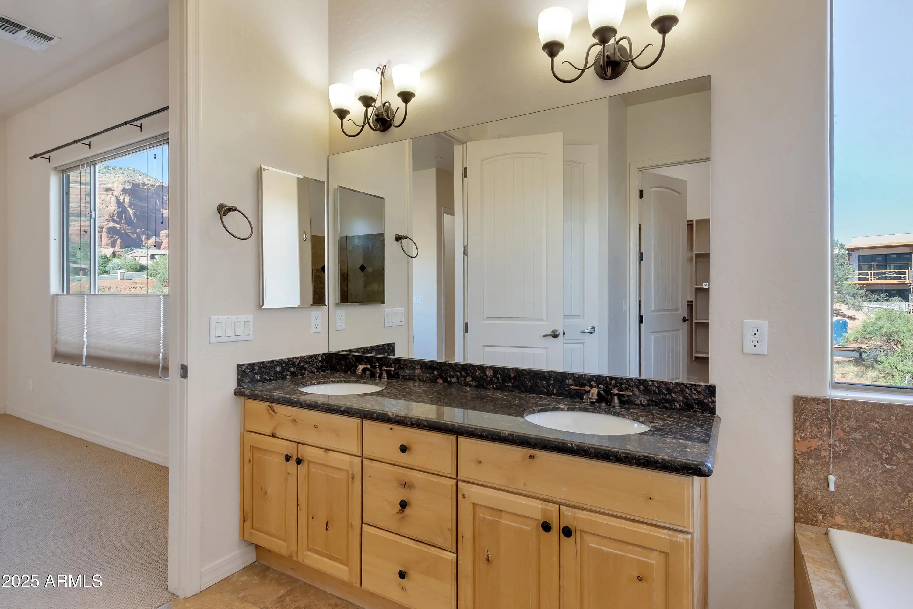Experience Sedona living at its finest in this spacious 4-bedroom, 4-bath residence that blends timeless elegance with thoughtful upgrades. An inviting foyer with custom travertine design sets the tone, leading into a home appointed with upscale granite counters in the kitchen and baths, travertine flooring, and plush upgraded carpeting in the bedrooms and lower suite. The heart of the home is a generously sized kitchen, complete with a cozy breakfast nook, large breakfast bar, stainless steel appliances, and knotty alder cabinetry. The adjacent Great Room offers warmth and comfort with its built-in entertainment center and gas fireplace. Outdoor living is just as captivating, with a covered patio and upper balcony overlooking a natural wash and capturing serene Red Rock views. A separate casita with double French doors, private entrance, and ¾ bath provides versatile space for guests, a studio, or a home office. Downstairs can be used as a 5th bedroom, in-law suite, family room, game or exercise room. This home is designed for both style and practicality, with a floor plan that balances gathering spaces and privacy. No short-term rentals; a 6-month minimum rental period applies.
